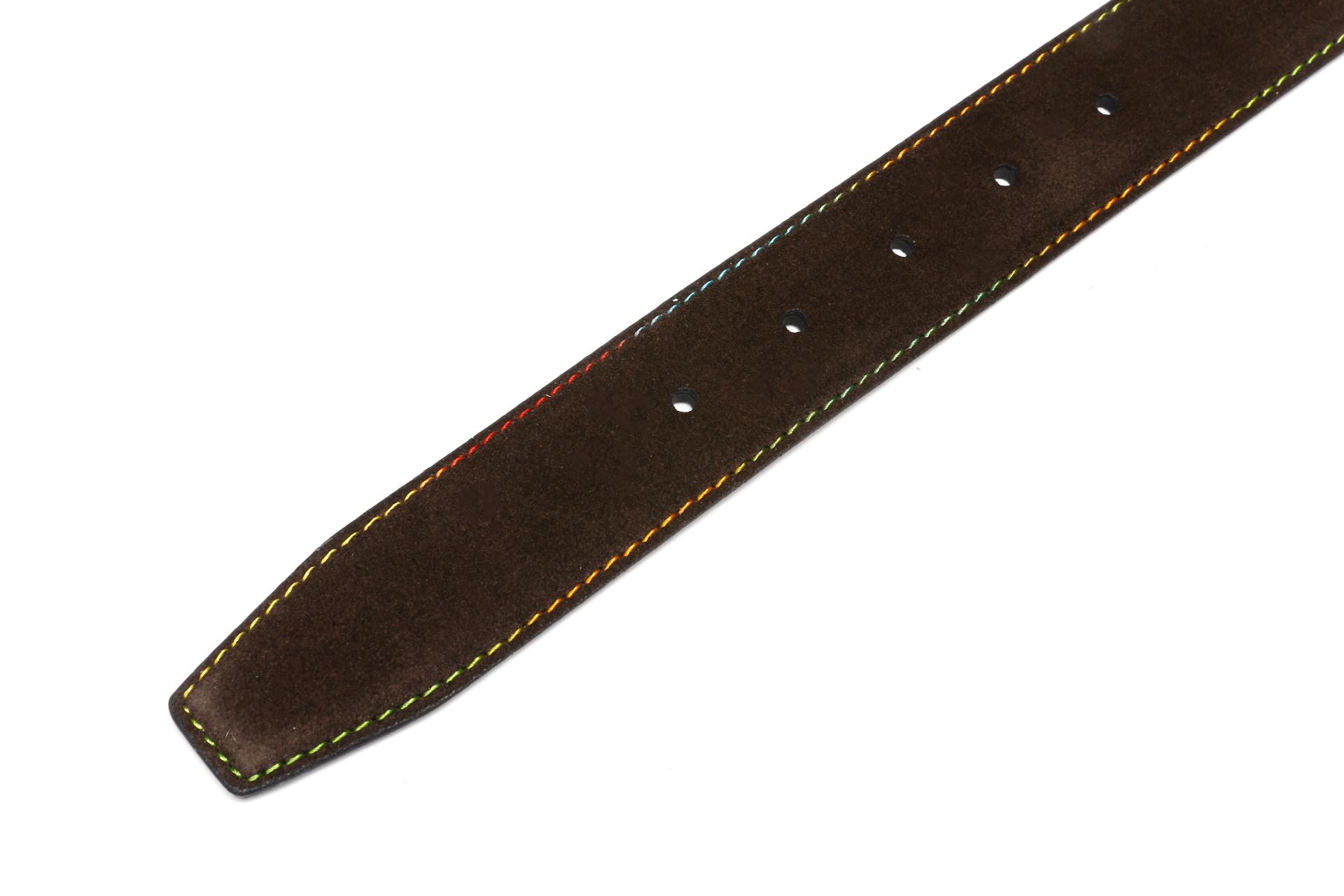 A defining feature of this piece lies in its multicolor hand-stitching. Each thread, meticulously applied by skilled artisans, infuses the belt with subtle vibrancy while reinforcing its structure. This fine craftsmanship transforms a utilitarian accessory into a statement of personality and precision.