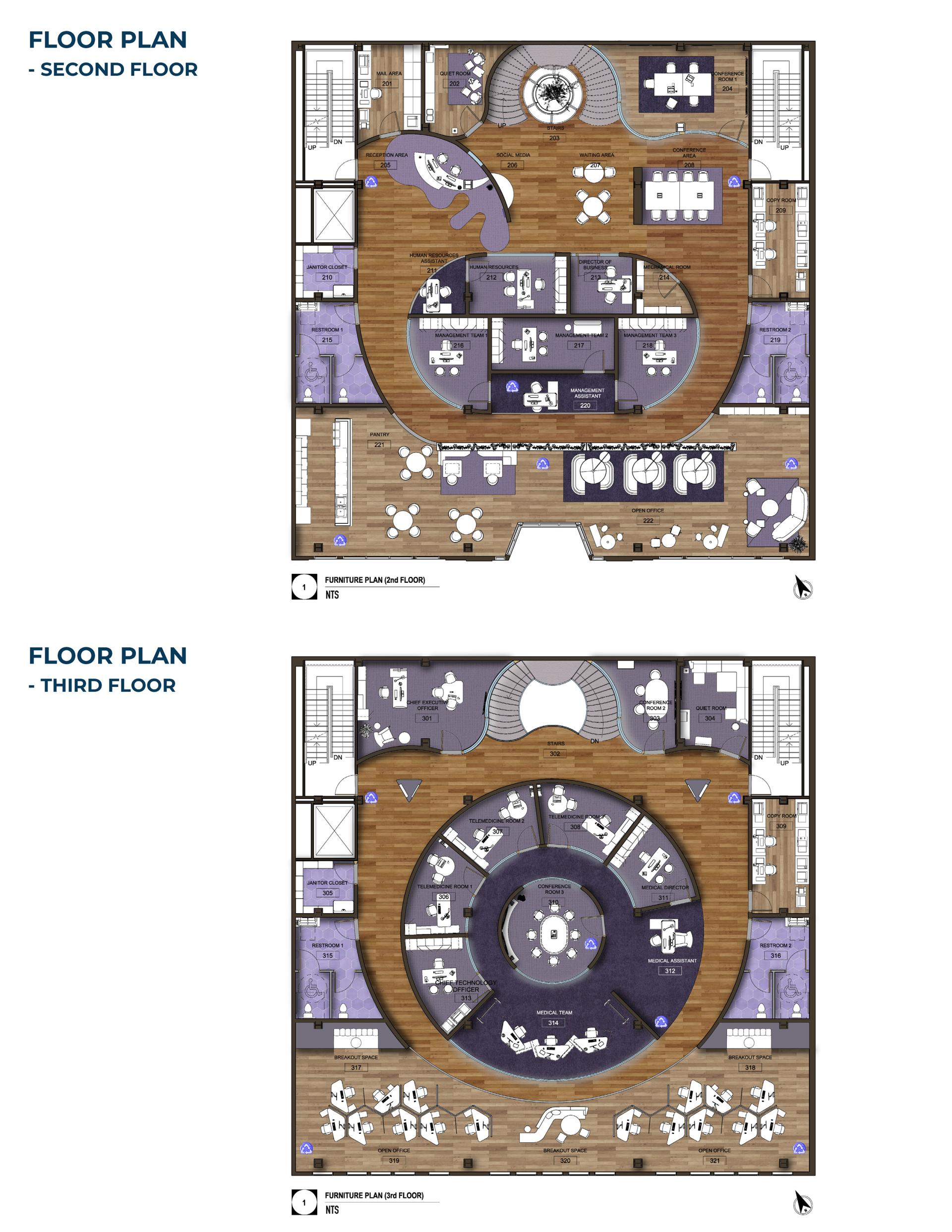 Ultimately, the project demonstrates how interior design can bridge virtual interactions and physical experience, creating workplaces that foster connection, wellbeing, and identity. It suggests a forward-looking approach for how the design discipline can adapt to emerging intersections of health, technology, and work in the era of digital-first care.