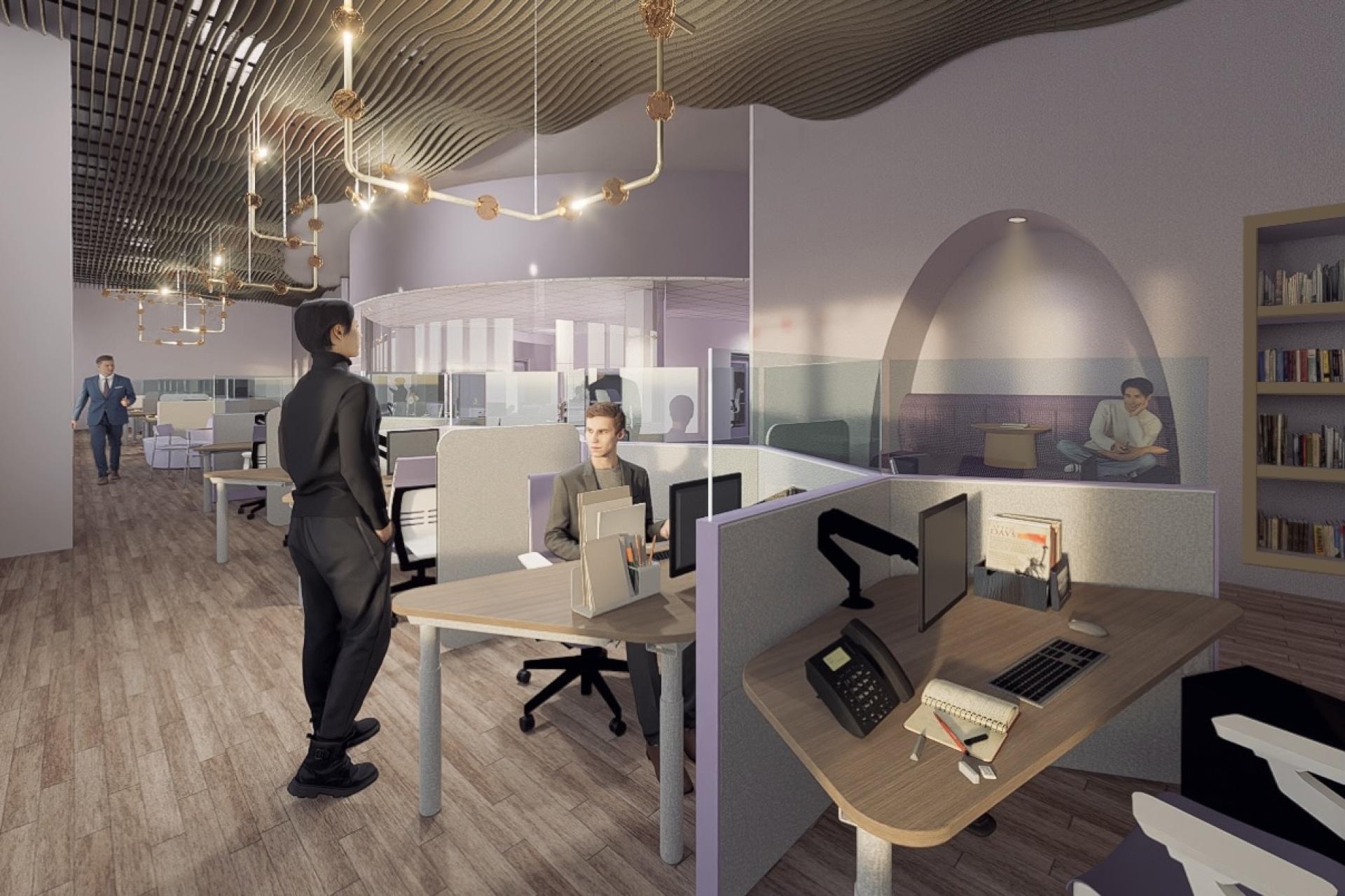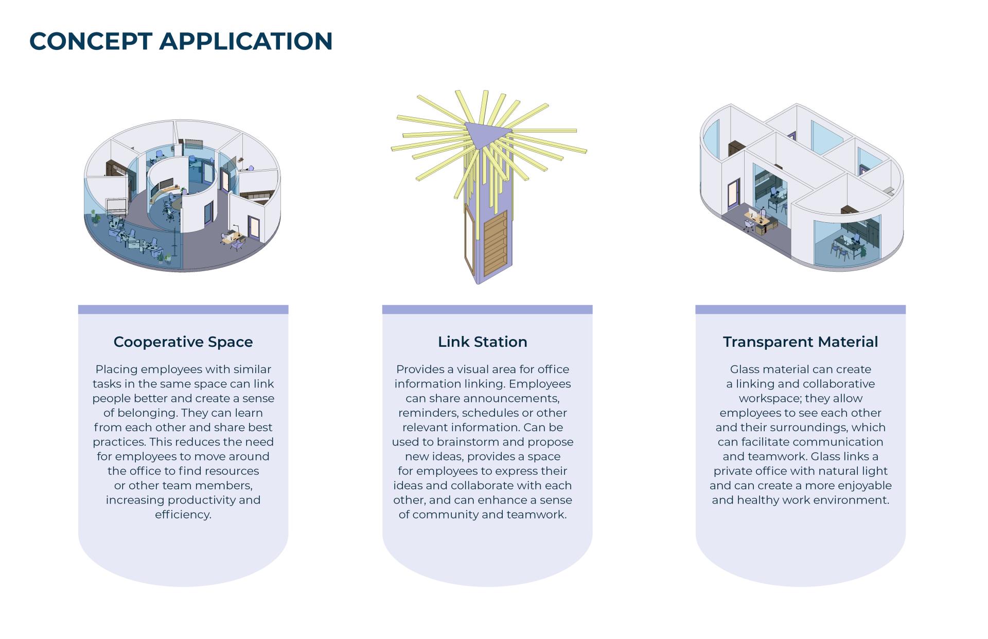 Spatial strategies such as transparent partitions, central gathering nodes, and flexible furniture layouts promote both concentration and collaboration. Natural light, material warmth, and intuitive circulation enhance users’ comfort and sense of belonging. Together, these design elements transform a primarily digital service model into an environment that feels human-centered and cohesive.