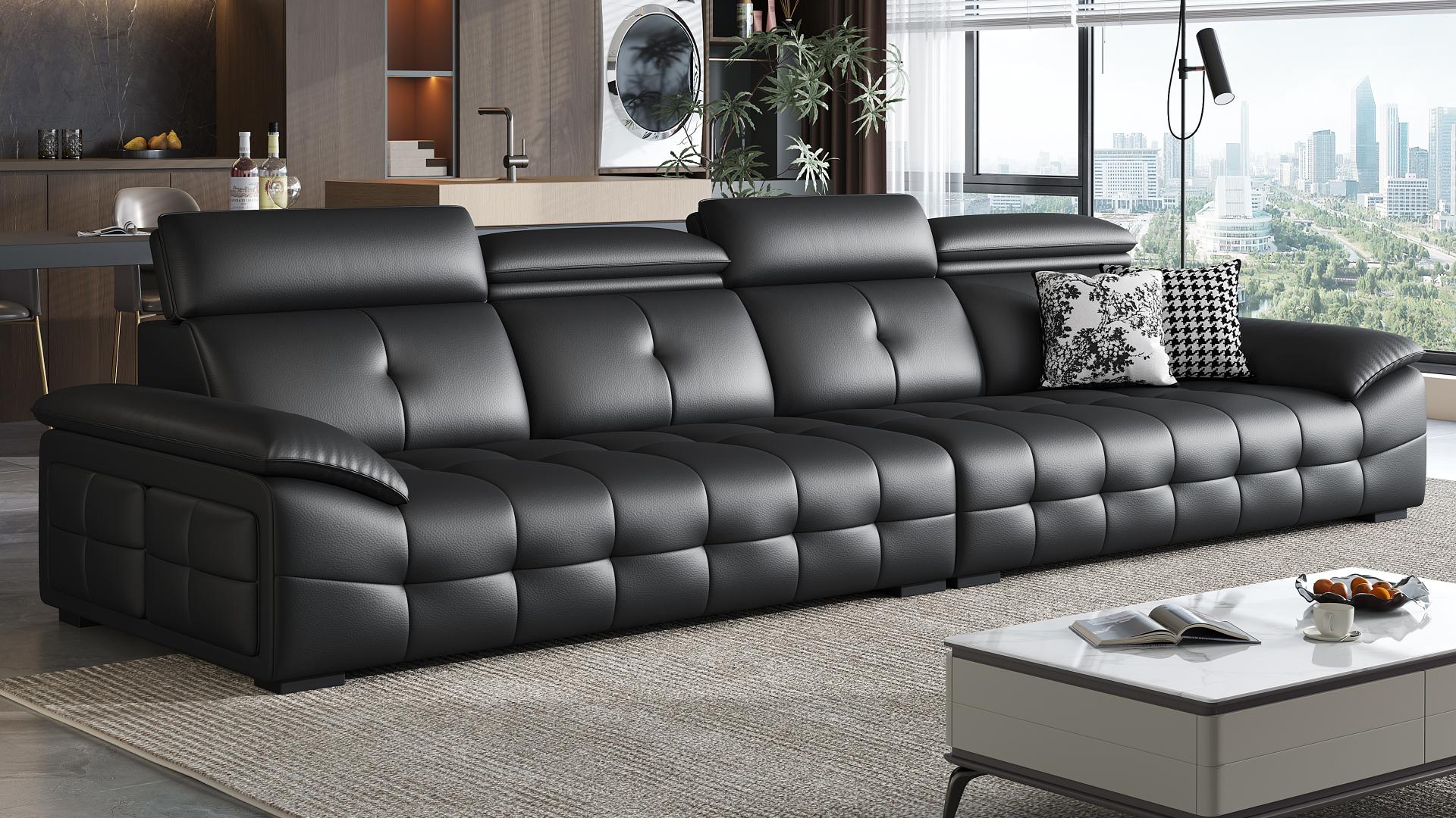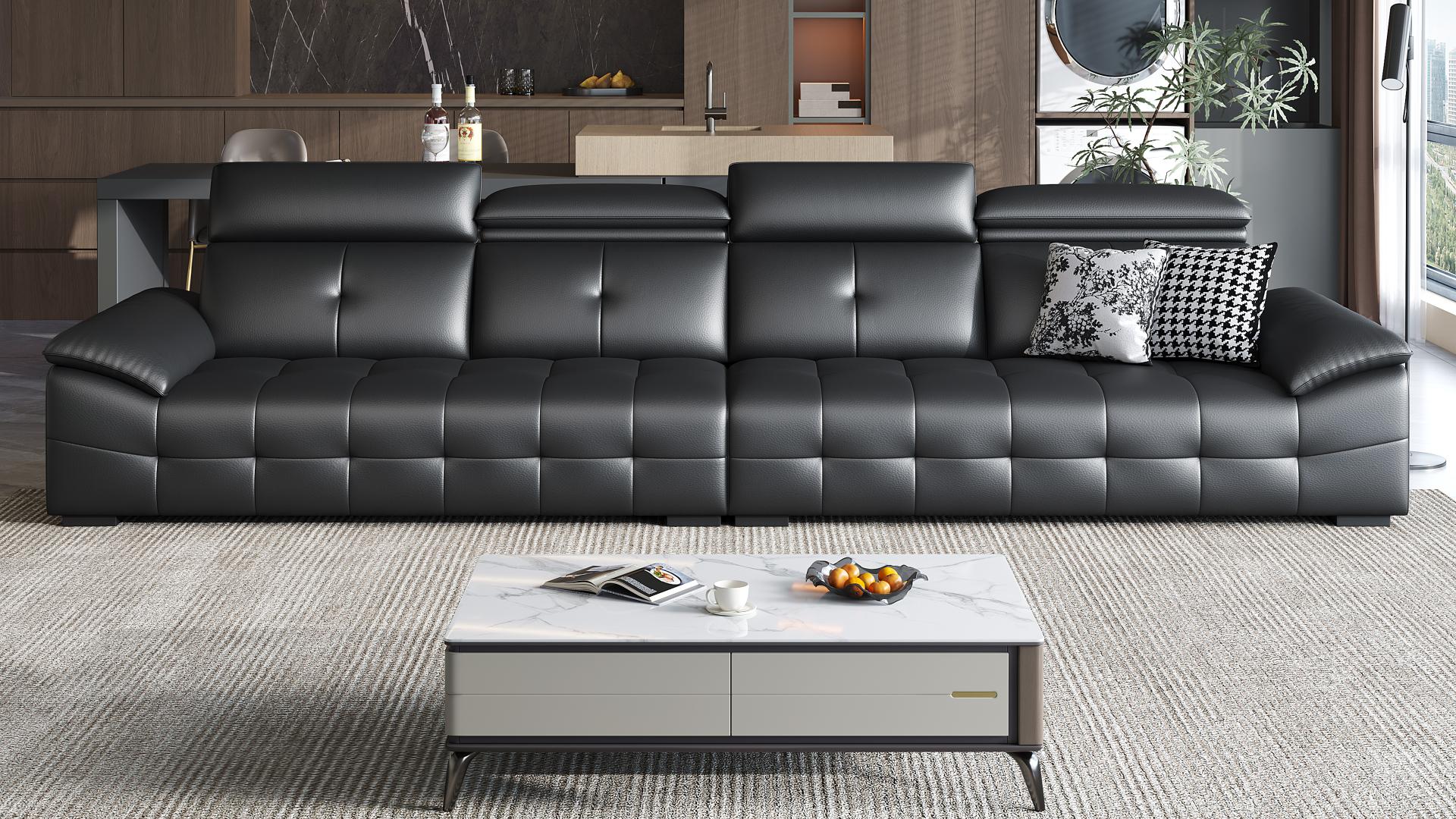 The rounded armrests mirror the soft, flowing motion of the body’s lines, offering a natural resting position for the arms while enhancing the sofa’s visual fluidity. The premium leather upholstery delivers a subtle sheen, enriching the sense of luxury while remaining versatile enough to complement various décor styles—from minimalist modern to understated classic.