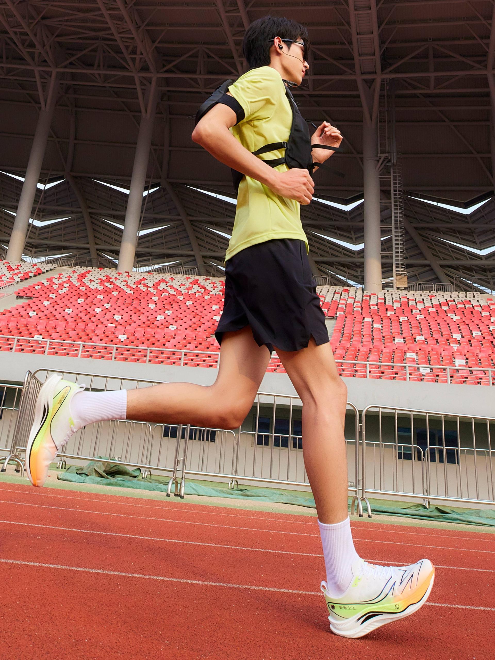 The upper is crafted from warp-knitted Jacquard mesh, engineered with strategically placed perforations for optimal breathability. It’s paired with a soft, skin-friendly leno-and-gauze weave fabric that enhances both comfort and airflow, keeping the foot dry and eliminating that stifling, sweaty discomfort. What’s more, the strategically positioned elastic zones and 3D-contoured tailoring allow the upper to wrap snugly around the foot from the sides and top, minimizing slippage and friction while enhancing stability for confident movement.