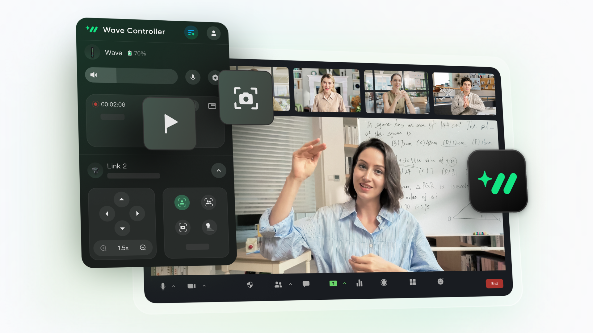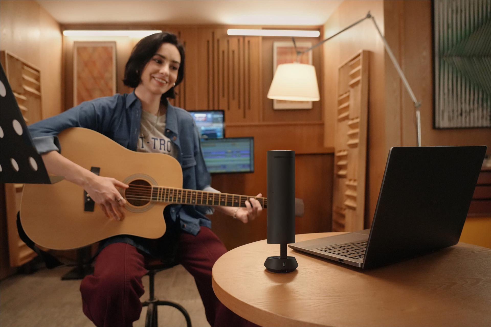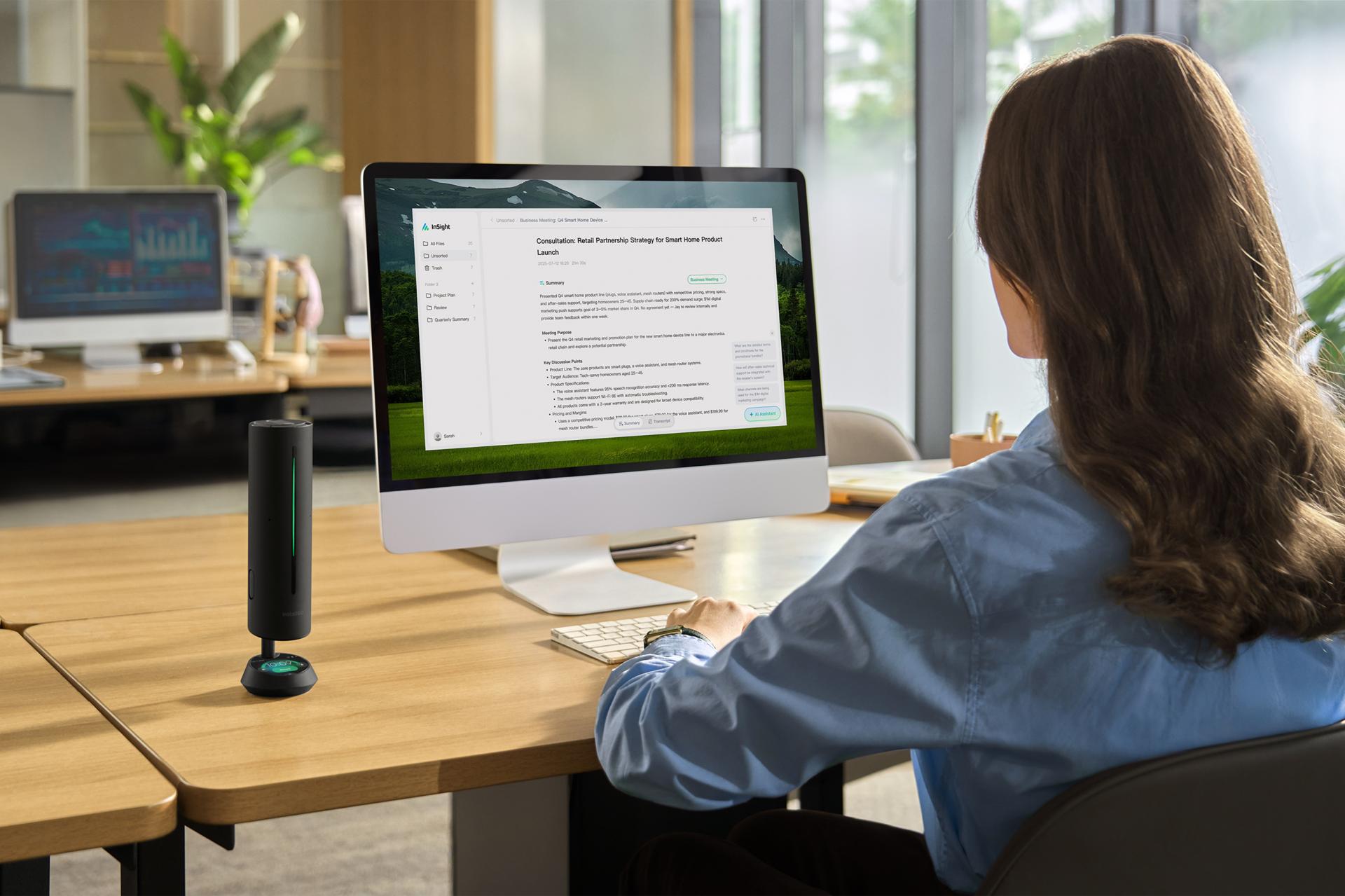 Insta360 Wave reimagines the conference microphone as an intelligent medium for human connection. Its floating cylindrical form departs from traditional disc designs, achieving visual lightness and superior acoustics. The suspended structure isolates vibration noise, while the elevated microphone captures voices clearly. A minimalist geometry with a breathing light and intuitive touch control enhances usability. AI-driven algorithms purify speech and enable features like pre-recording and auto transcription, embodying the harmony of technology, design, and empathy.