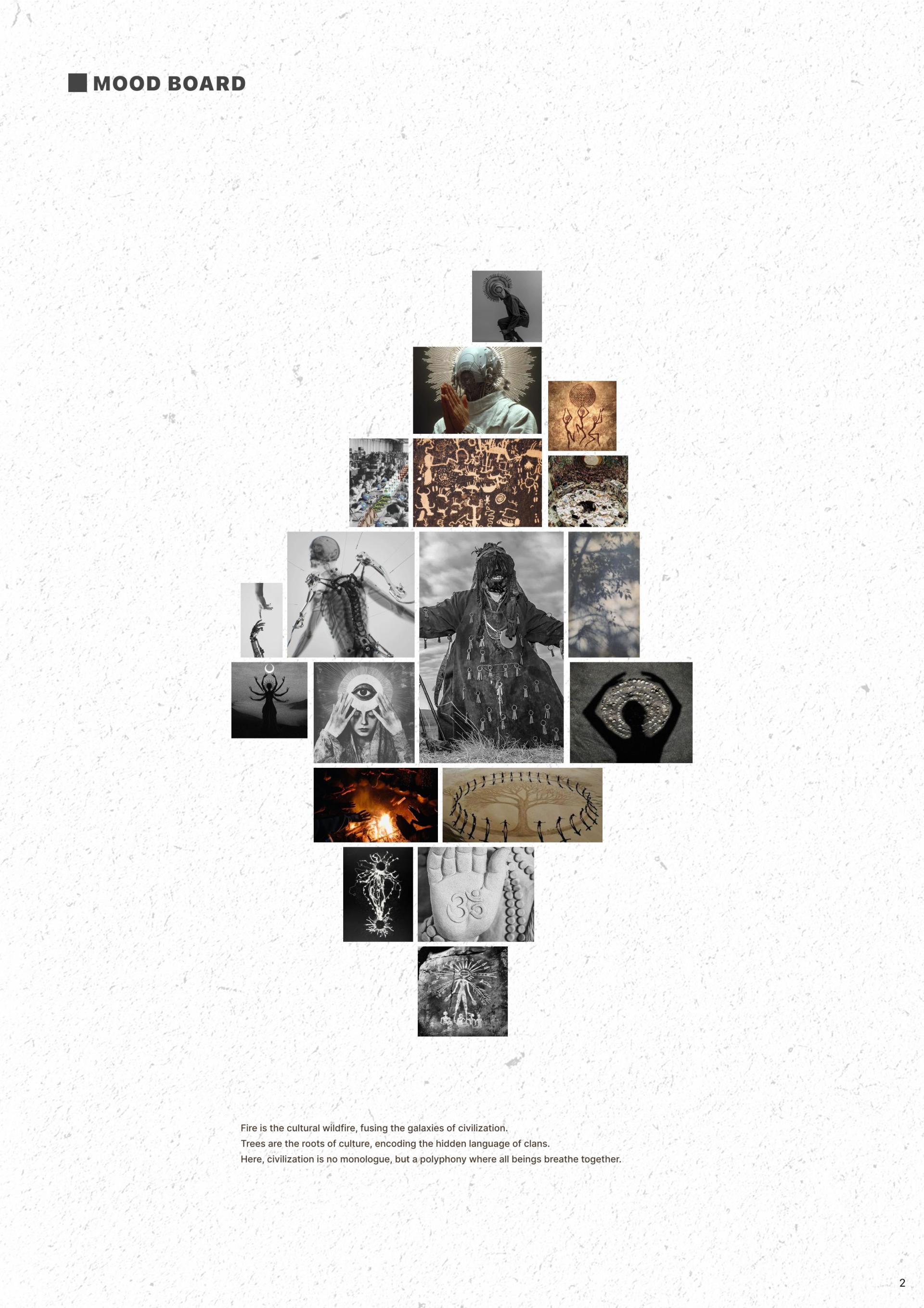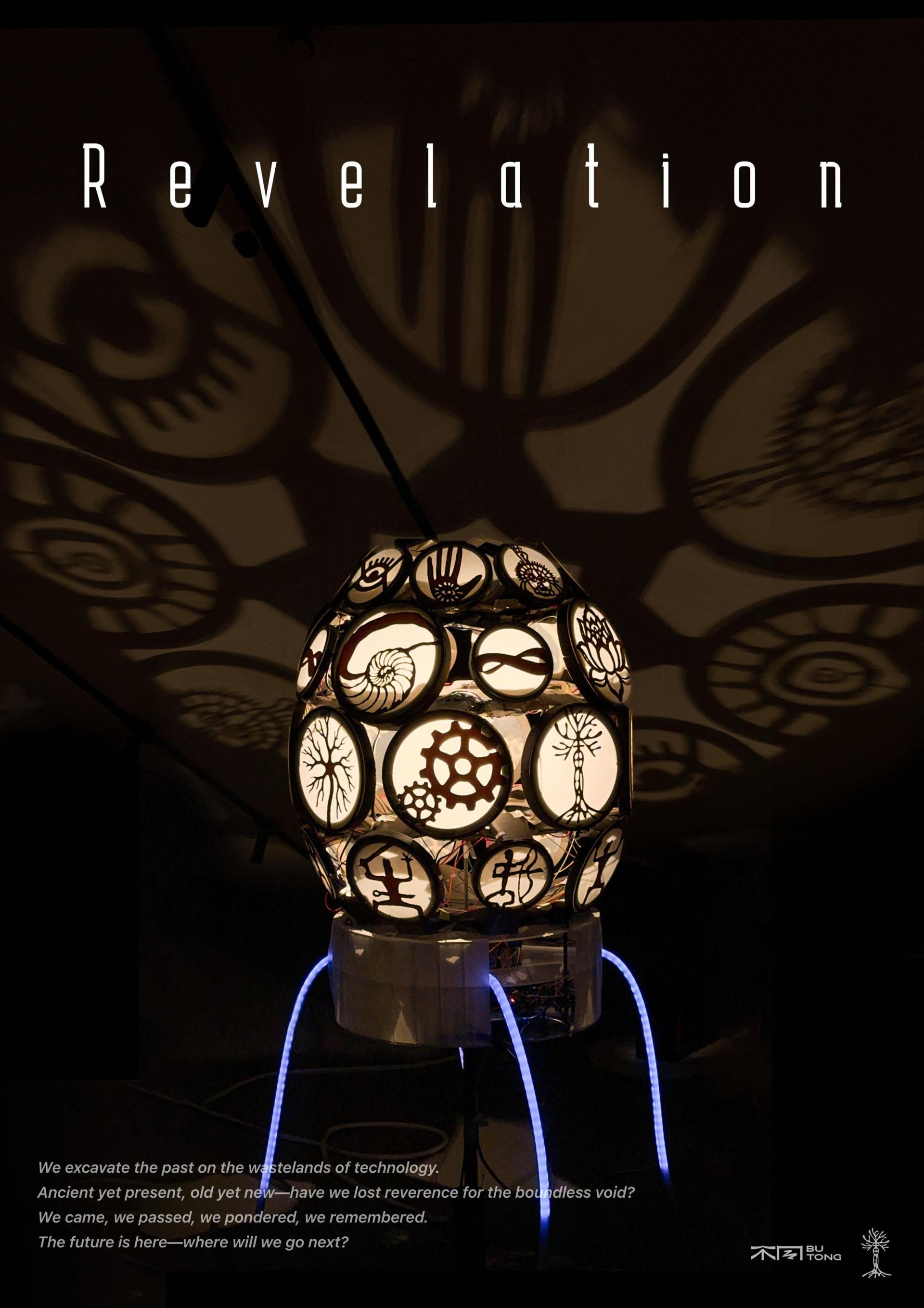 Revelation is an interactive installation that integrates light, sound, and spatial design to create a multisensory experience. Rooted in the cultural context and exhibition environment of Huangpi Park, the work aims to construct an open field where ethnicity and totem, wildness and restraint, past and future intertwine.