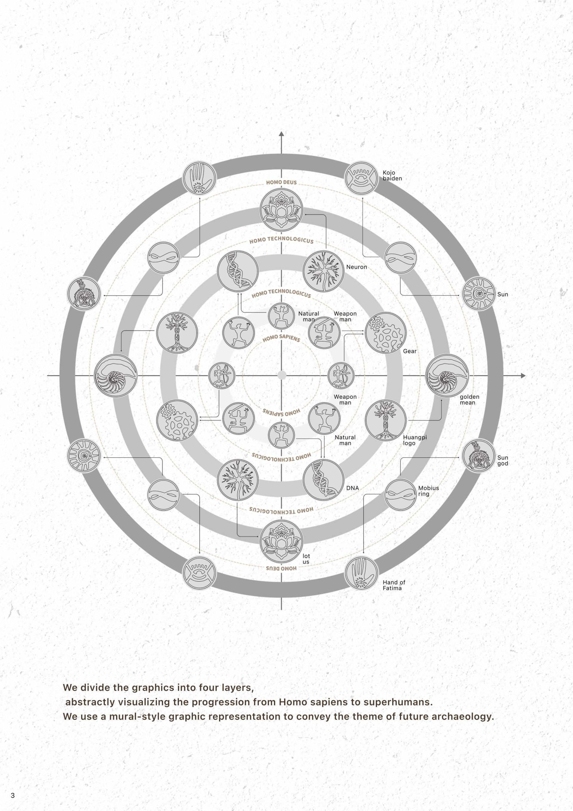 The inspiration comes from Yuval Noah Harari’s Homo Deus: A Brief History of Tomorrow, particularly his discussion of the evolution from Homo sapiens to Homo deus. Through this piece, we seek to trace and deconstruct how the advancement of productivity has shaped human civilization, to reflect critically on the transformations brought by technology, and to invite viewers to join a dialogue on where humanity is heading in the future.