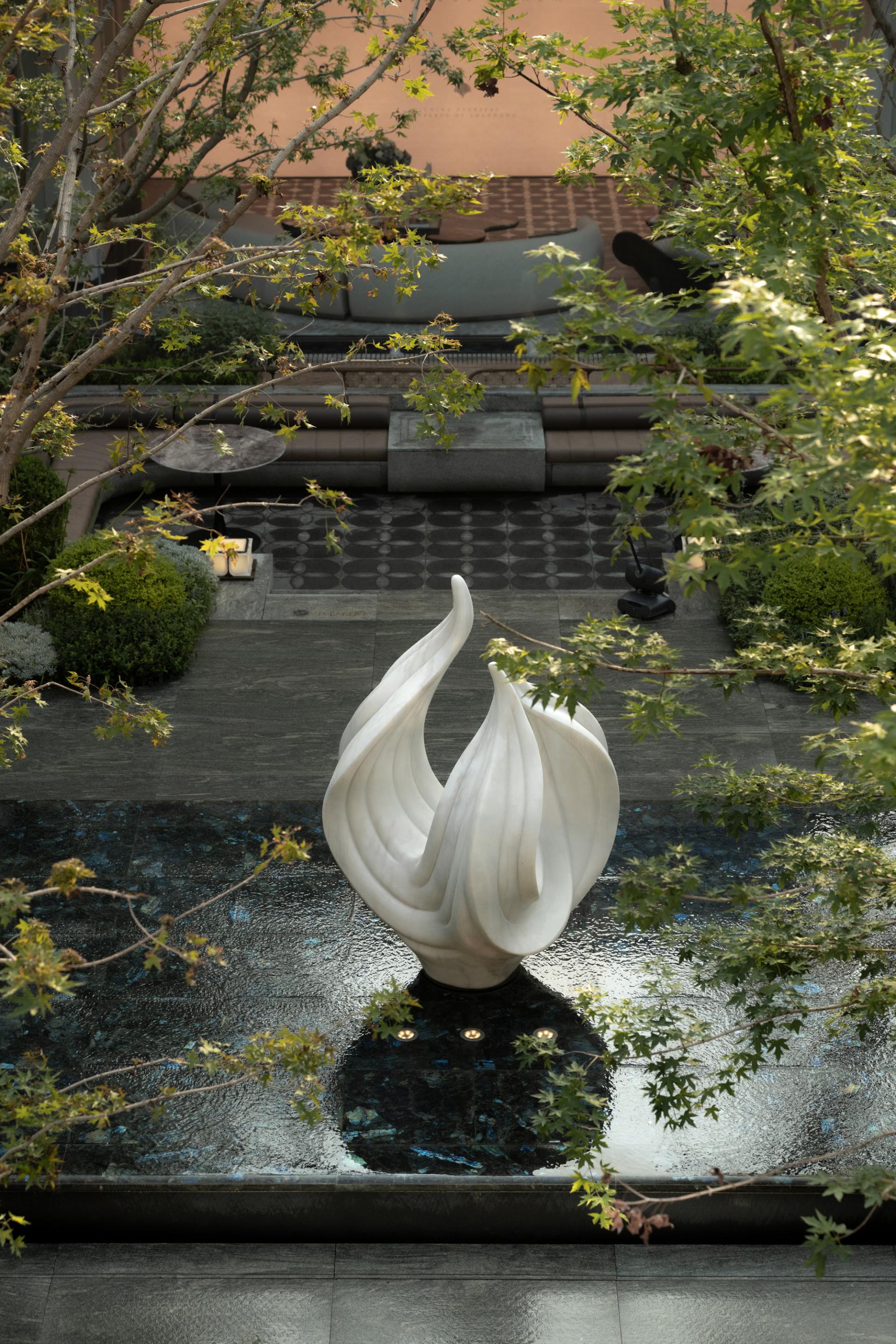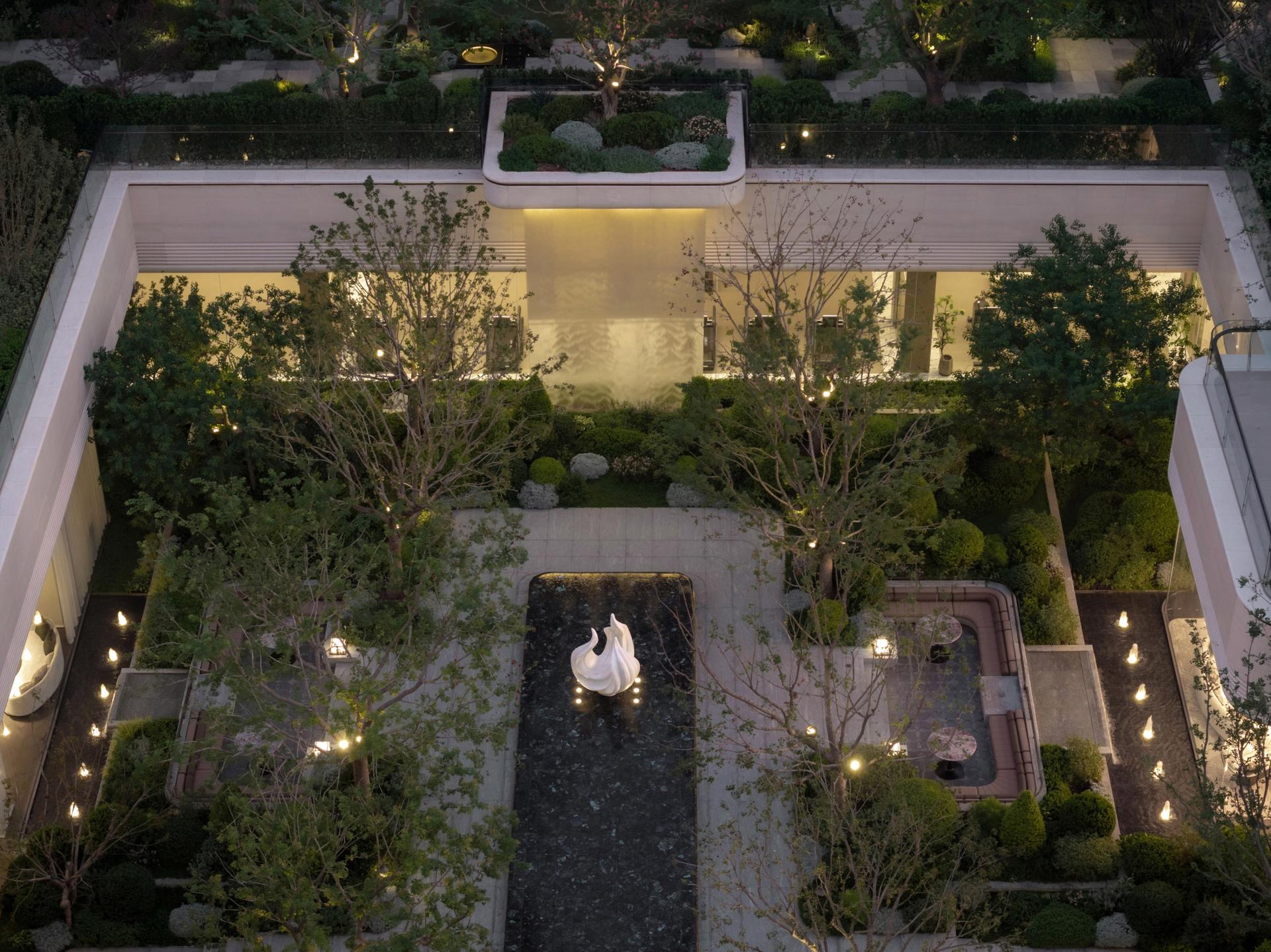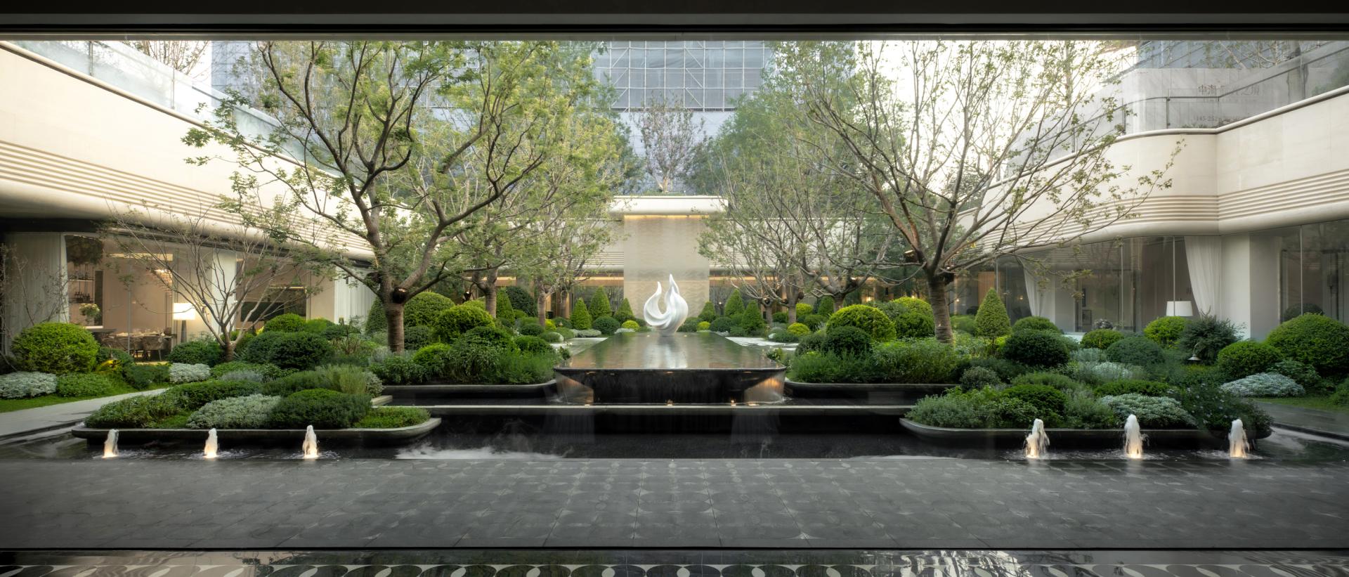 The space unfolds in three layers of poetic scenery: the main entrance is arranged in a sequence of "distant view", with a 92 meter Fei Li painting scroll, towering walls, and mirrored water features, together creating a luxurious and ceremonial homecoming ceremony. The sunken courtyard is characterized by a "brocade cluster", inspired by the Persian Feon Garden. The central jade mirror pool and tiered flower pool reflect the blooming flowers of the four seasons, creating a three-dimensional and magnificent natural painting. The Giverny Garden incorporates the meaning of 'clouds', similar to the Monet Garden, depicting Impressionist paintings of light and shadow flow and changes through lotus ponds, geometric paths, and art walls.