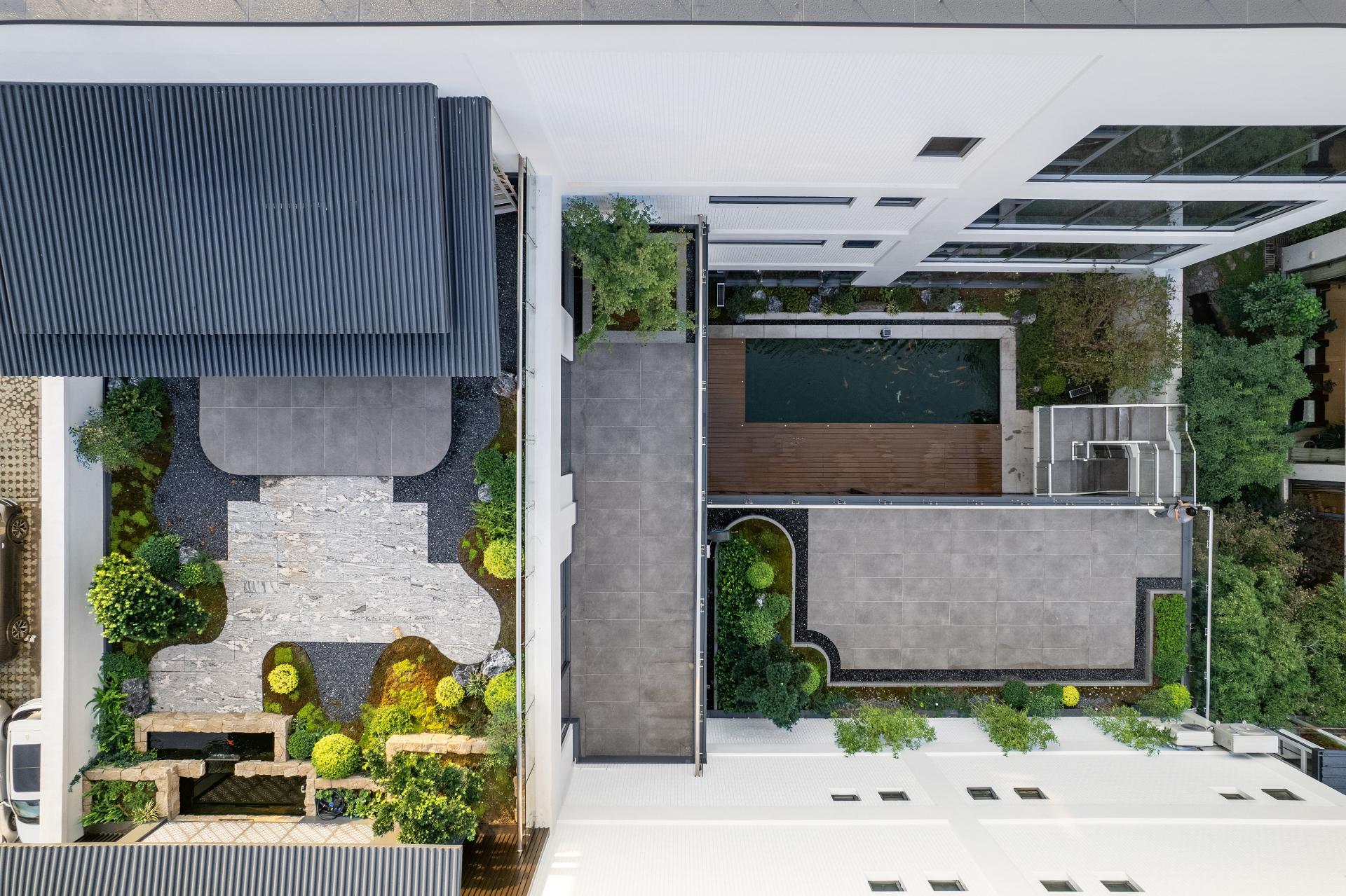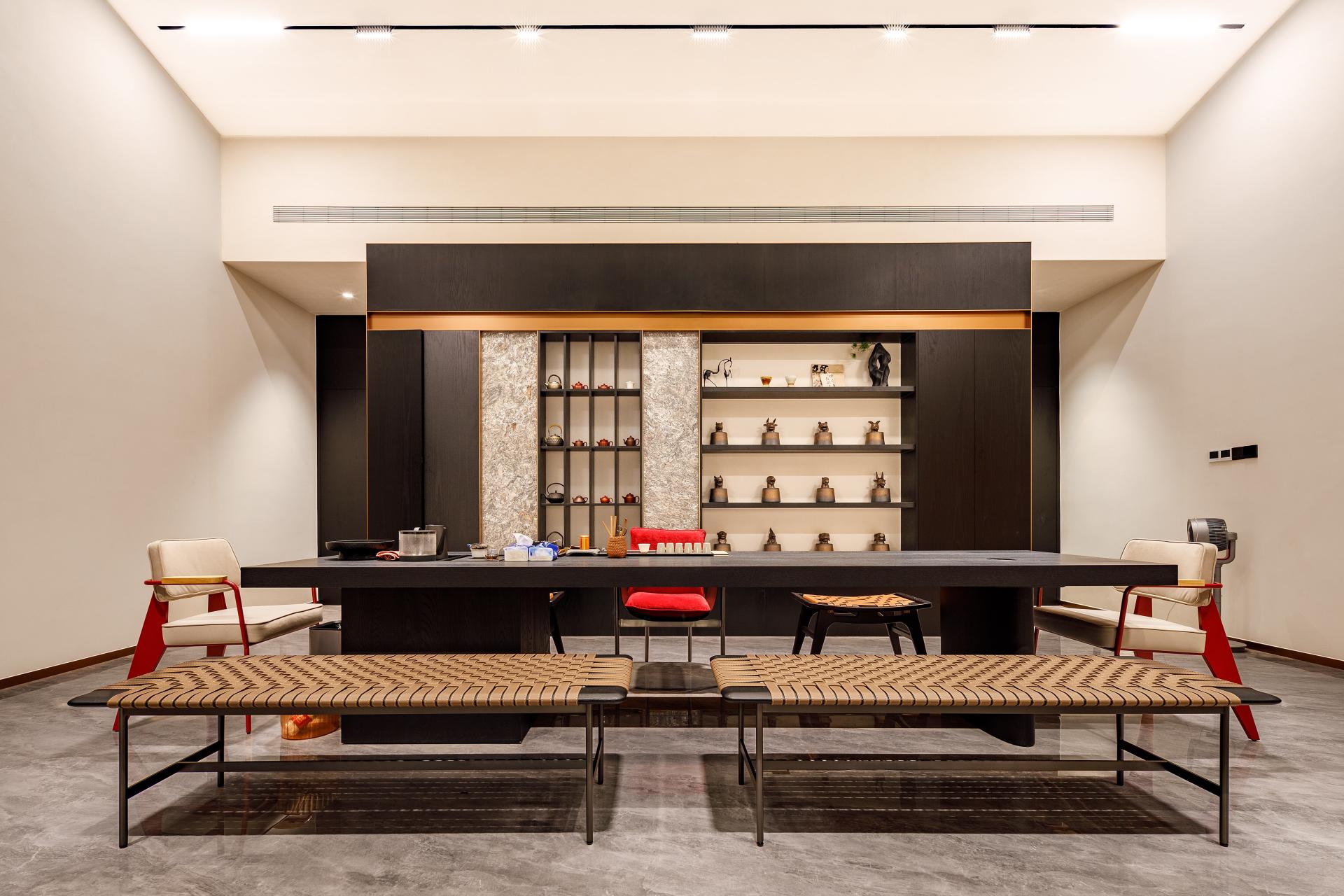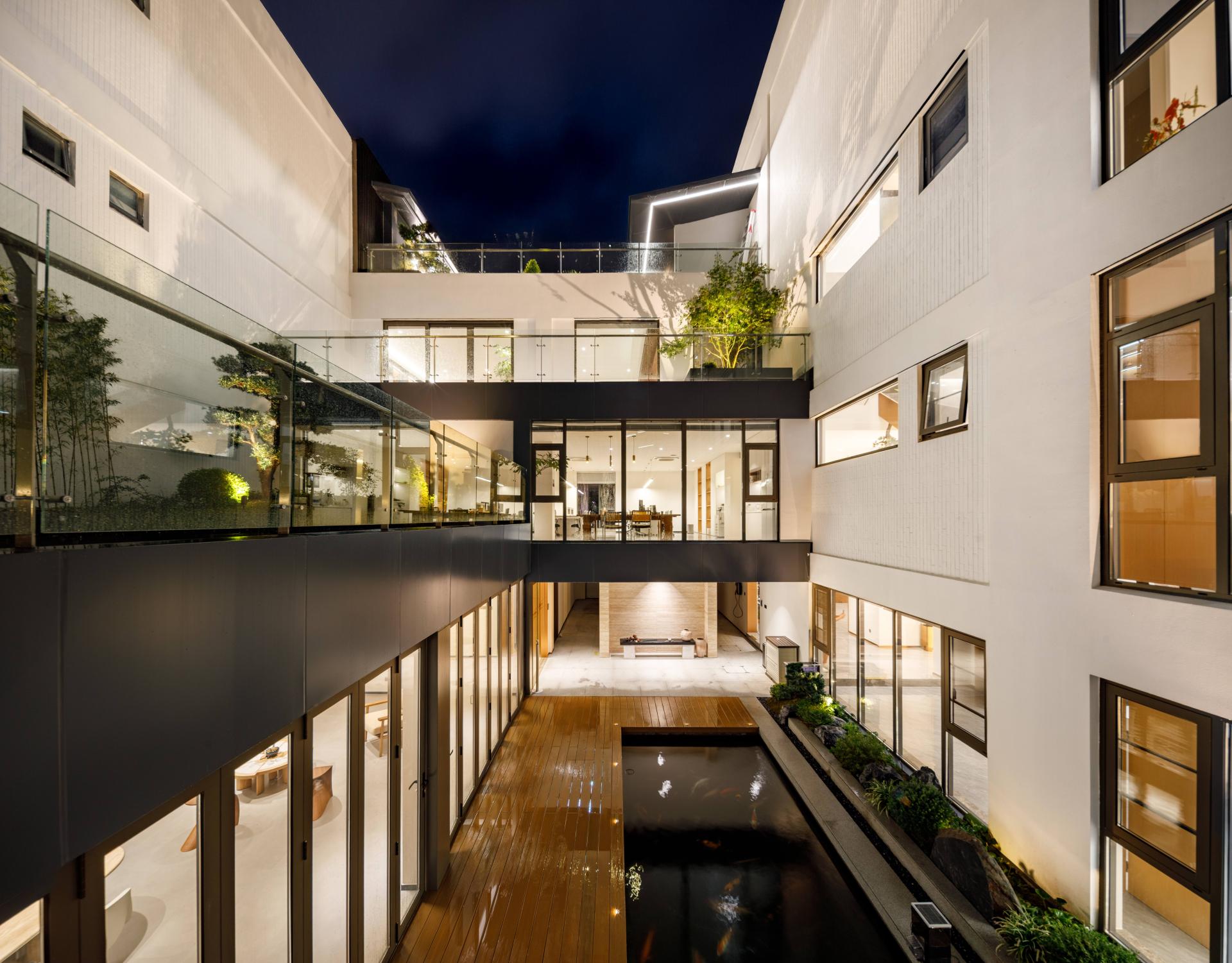 We are committed to creating an office environment that is not only efficient and practical but also rich in cultural heritage and artistic ambiance, making it a unique space that inspires creativity, fosters communication, and showcases corporate taste. The design cleverly utilizes the building's structure to create a multi-layered indoor and outdoor landscape system. From an aerial view, a meticulously planned courtyard landscape is visible, forming a Zen-inspired tableau with stones, greenery, and water features, providing employees with a tranquil resting place. Within the building, the courtyard and reflecting pool interact with the interior spaces, creating a constantly changing visual experience with the interplay of light and shadow. Especially at night, lighting outlines the building's contours and courtyard details, forming a modern and poetic picture. The 1400 square meter space is thoughtfully planned to meet the diverse needs of the group's offices: Flexible Public Areas: A spacious and bright reception area and a multi-functional lounge are designed, which can serve as both informal meeting spots and spaces for employees' daily breaks and small events. Private Executive Meeting Area: While ensuring privacy, the use of materials and lighting creates a dignified and comfortable meeting environment, showcasing the company's strength. Efficient Office Spaces: Combining natural light and intelligent systems to provide an efficient and healthy working environment. Rich Lifestyle Amenities: May include fitness and dining facilities to comprehensively enhance employee well-being and sense of belonging. The design team meticulously selects materials, aiming to enhance the overall quality of the space through the texture and luster of the materials themselves. Rose Gold Stainless Steel: With its unique color and modern feel, it outlines the exquisite lines of the space, adding a touch of understated luxury to the reception and public areas. Luxury Green Stone: As a visual focal point, it is cleverly used on background walls or tabletops. Its natural veins and deep colors are like works of art from nature, giving the space a calm and distinguished tone. Travertine: With its warm texture and unique pores, it brings a natural and elegant touch to the space, balancing the heaviness of luxury stones.