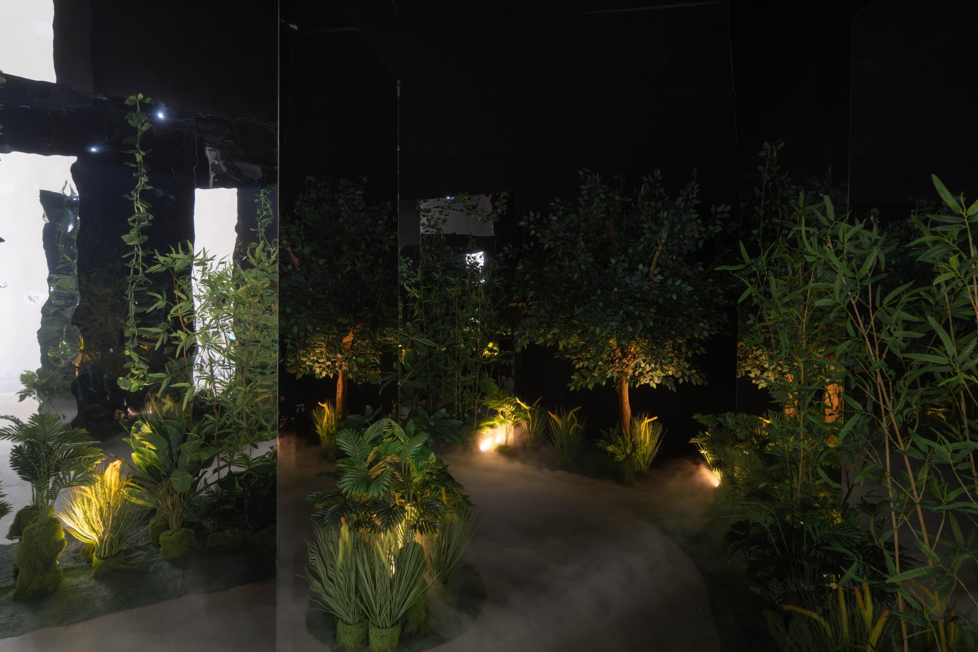 By elevating the fixtures installation position and projection angles, the lighting ensures clear illumination of the dual-perspective transparent eye without exposing the luminaire directly to view. The central eyeball installation integrates internal and base lighting to accentuate a layered, interwoven three-dimensional texture.