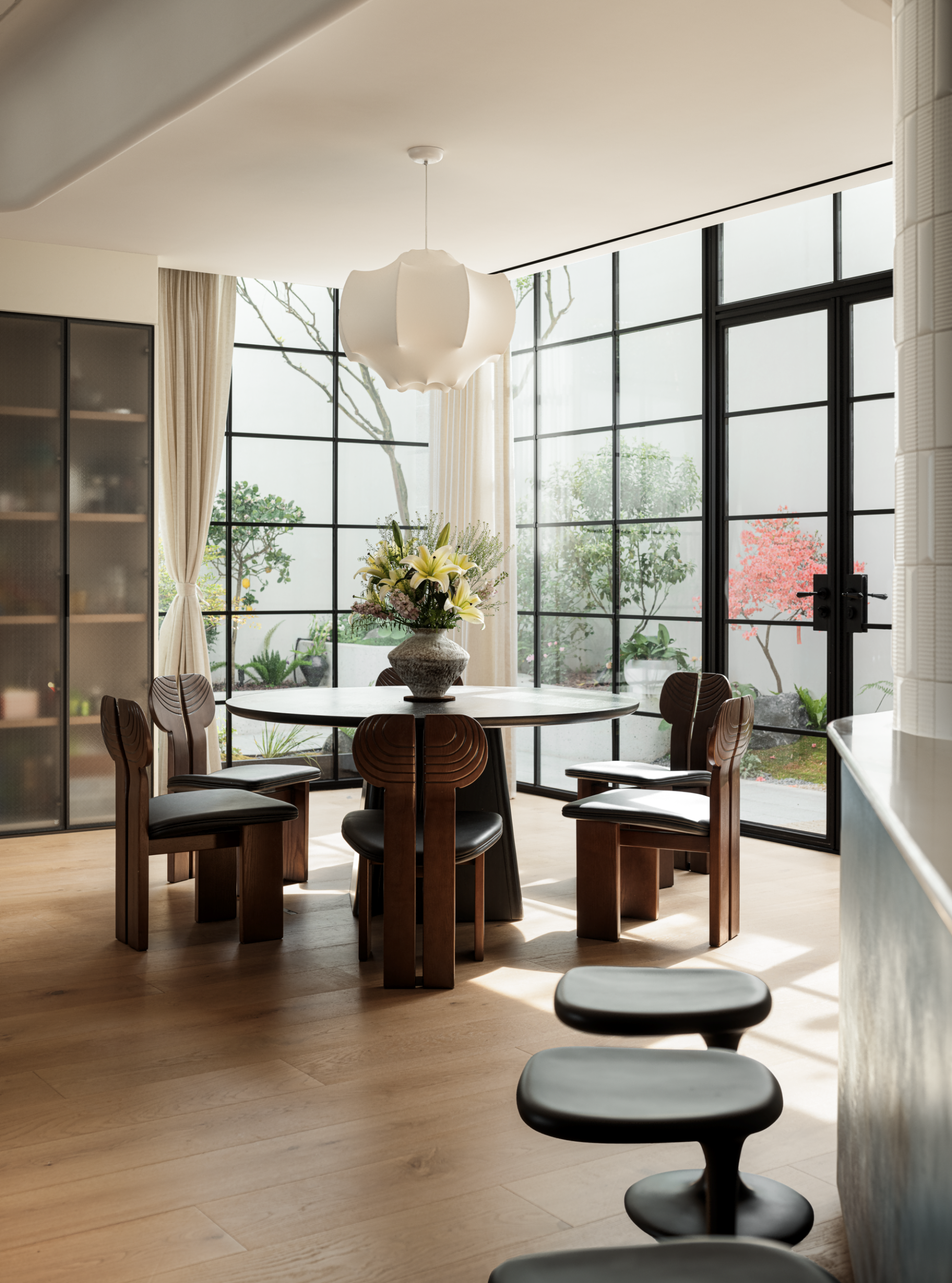 In this case, the designer focuses on "human centered design" and is committed to the poetic fusion of light, shadow, and nature. From the underground greenery to the top sky light, the space is like a breathing organism, with each floor blending scenery into the room and every corner providing a place for body and mind.