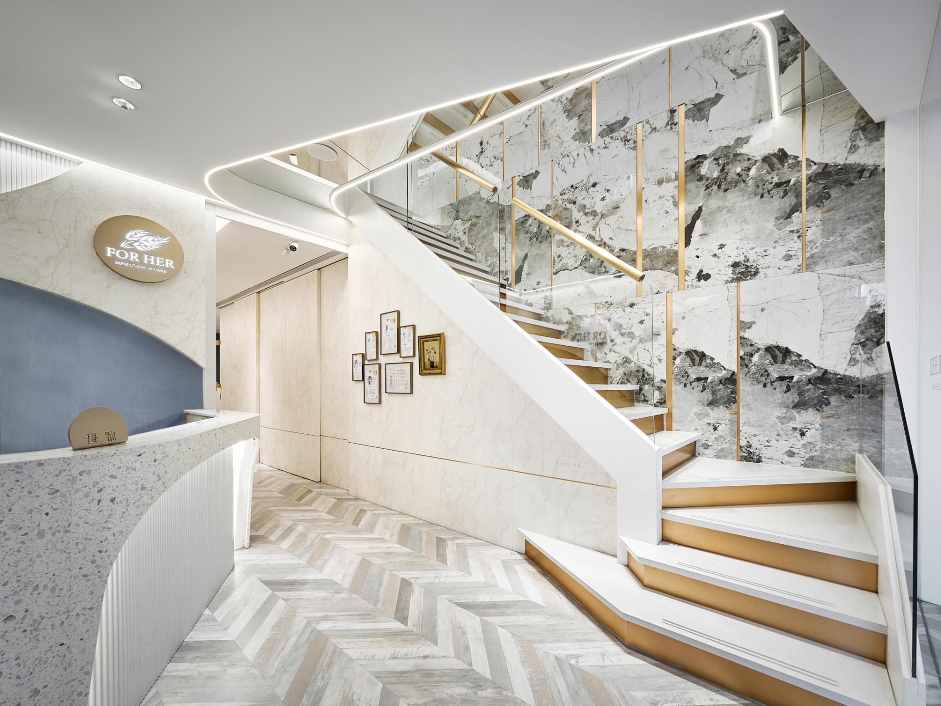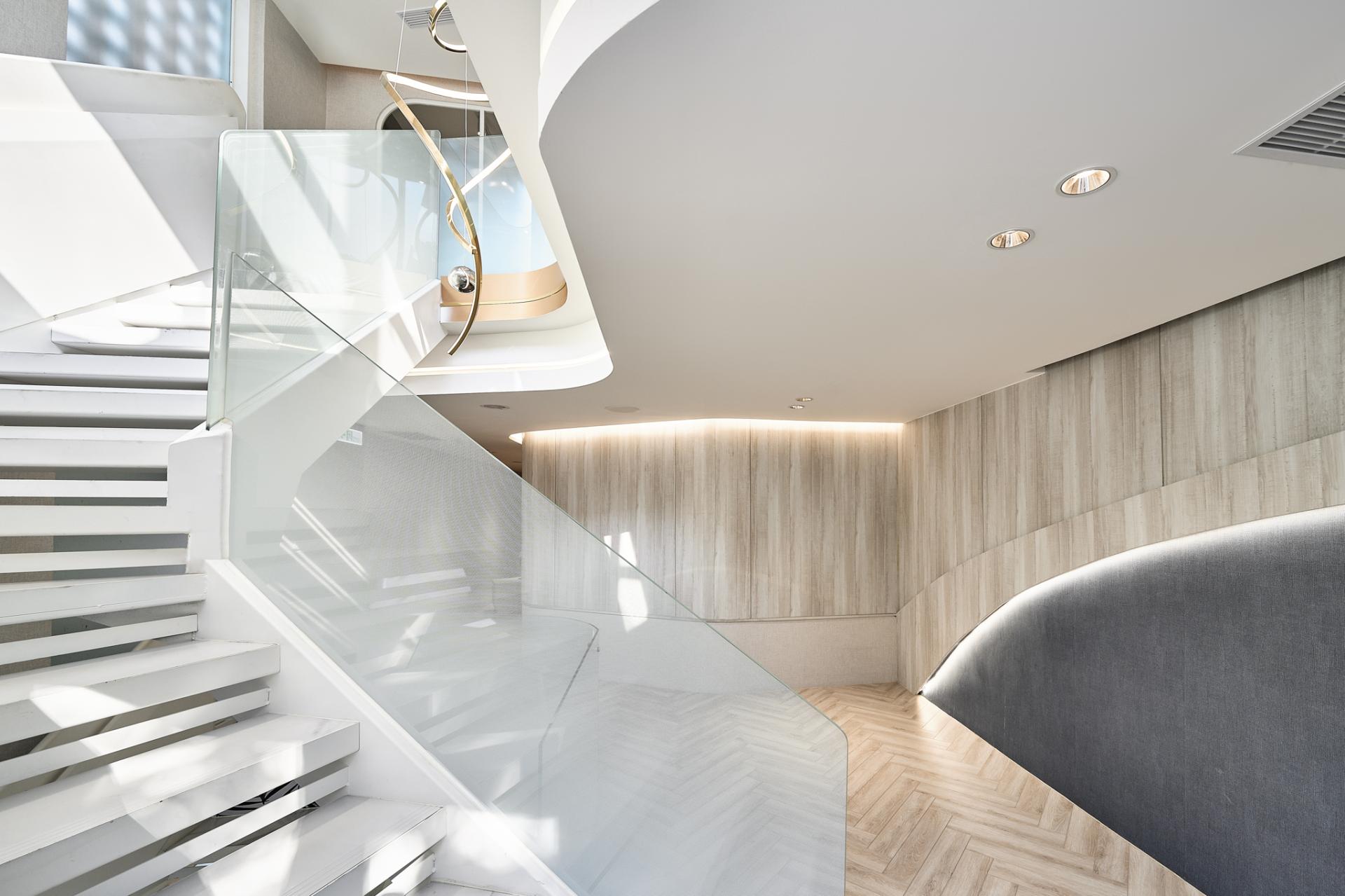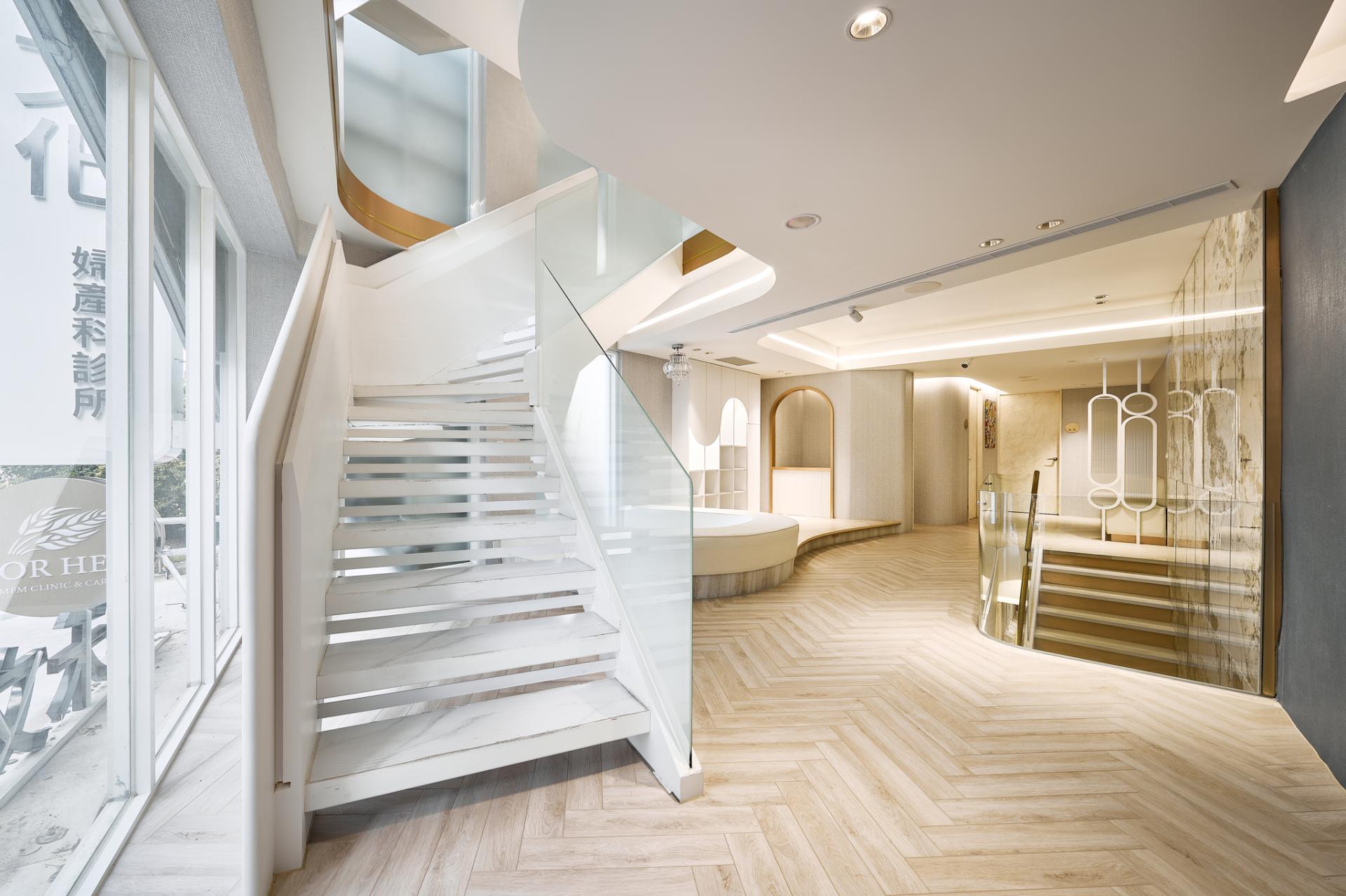 The main visual theme of the obstetrics and gynecology clinic is based on a white color scheme, symbolising the purity and flawlessness of new life arriving like a blank sheet of paper. The layout is guided by flowing natural curves, gently representing the trajectory of life’s growth, seamlessly connecting the vertical movement between floors in a soft and unobtrusive manner.
