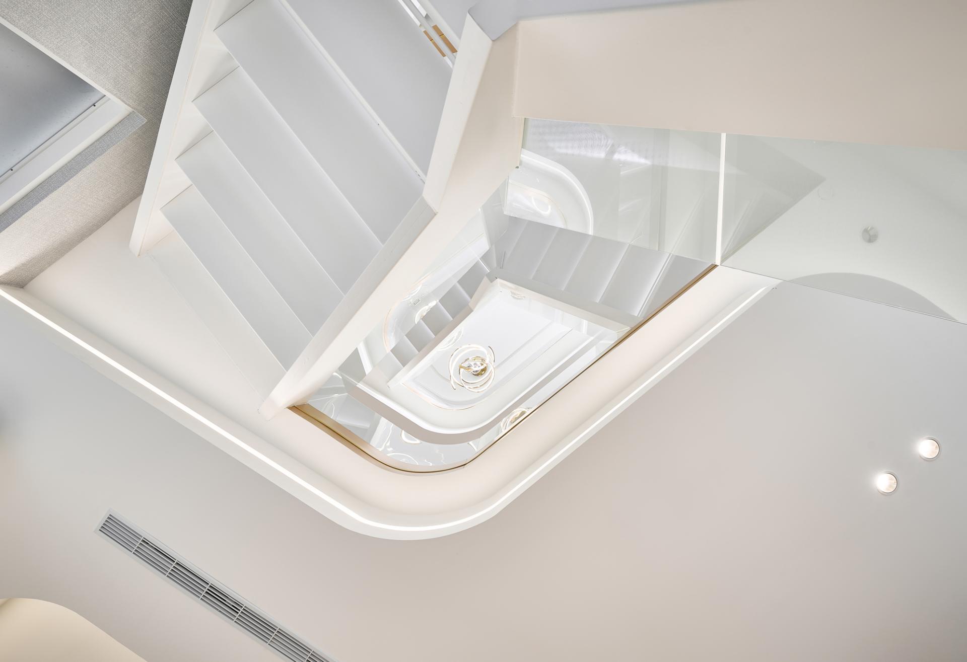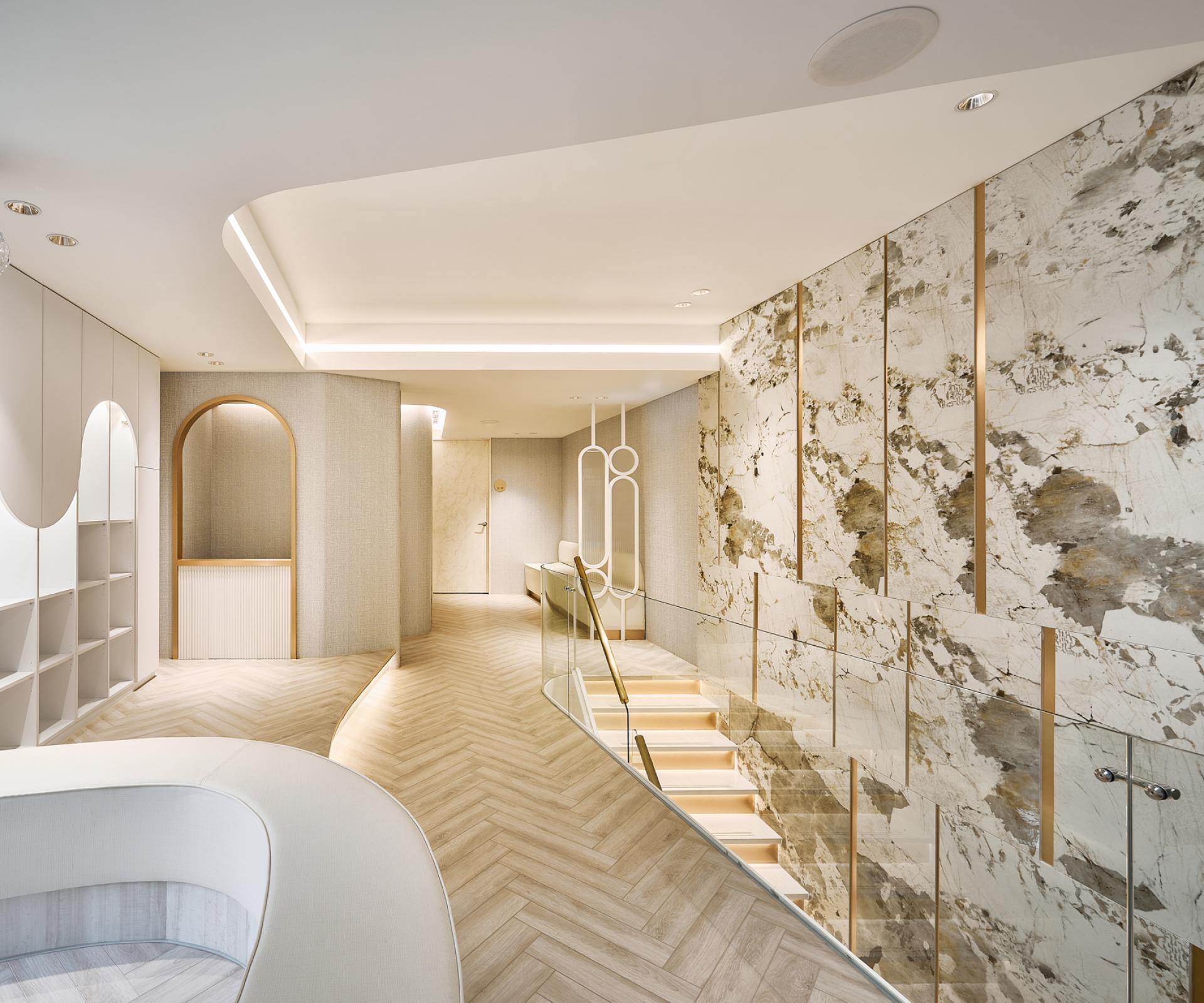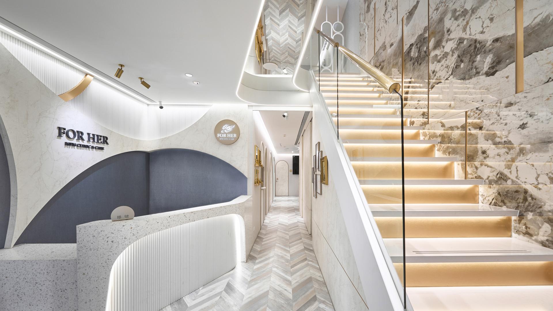 The main visual theme of the obstetrics and gynecology clinic is based on a white color scheme, symbolising the purity and flawlessness of new life arriving like a blank sheet of paper. The layout is guided by flowing natural curves, gently representing the trajectory of life’s growth, seamlessly connecting the vertical movement between floors in a soft and unobtrusive manner.