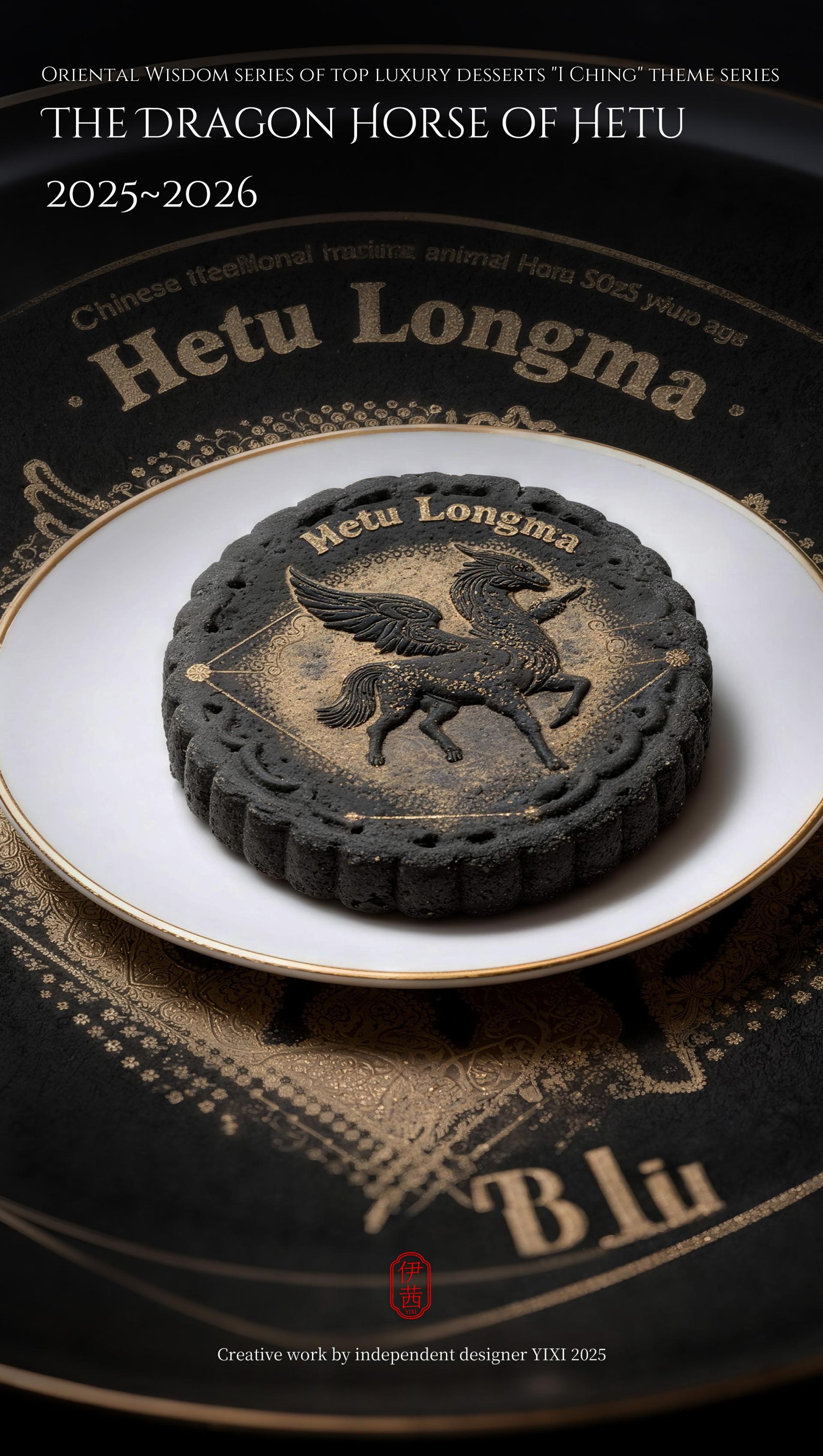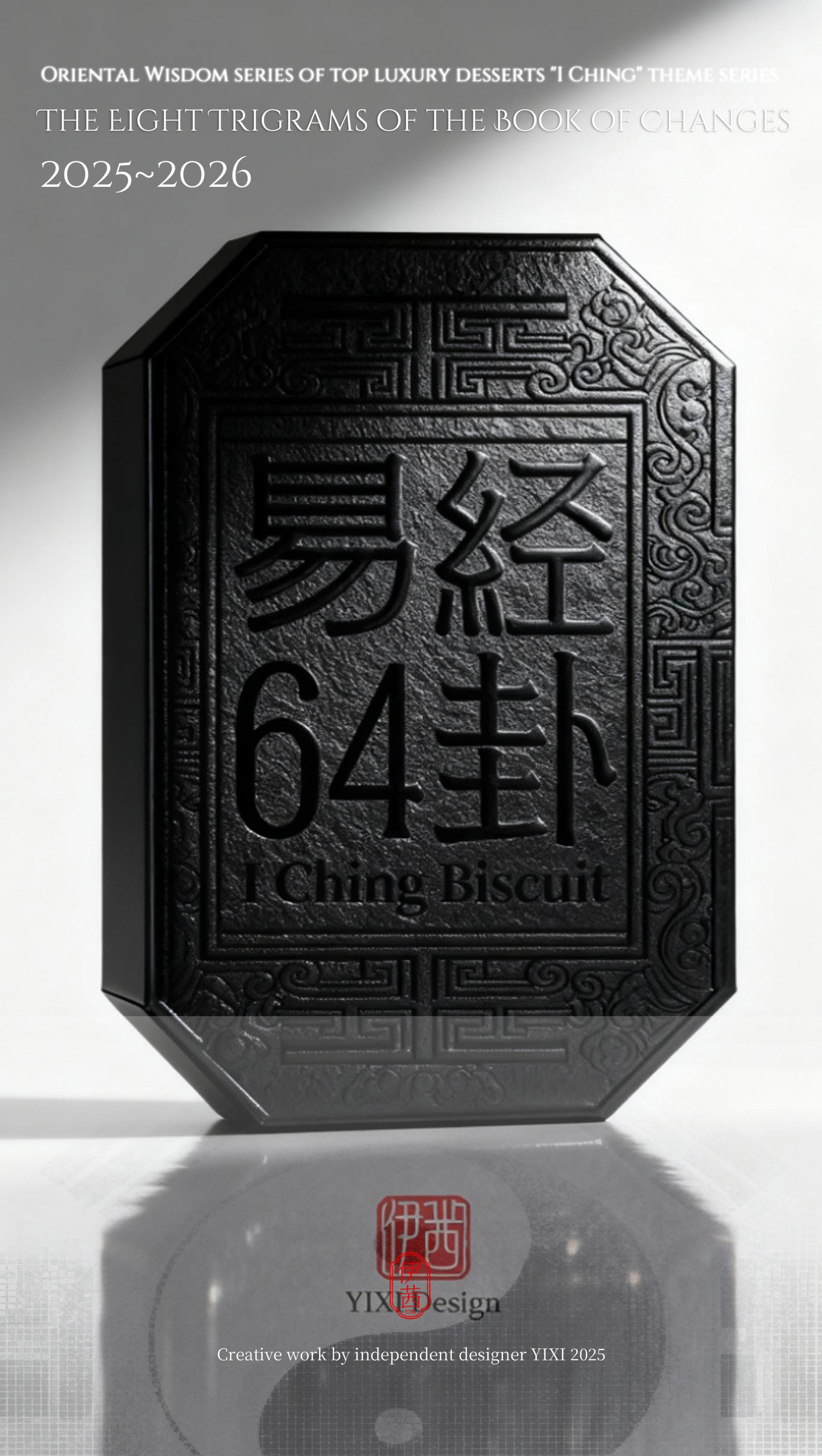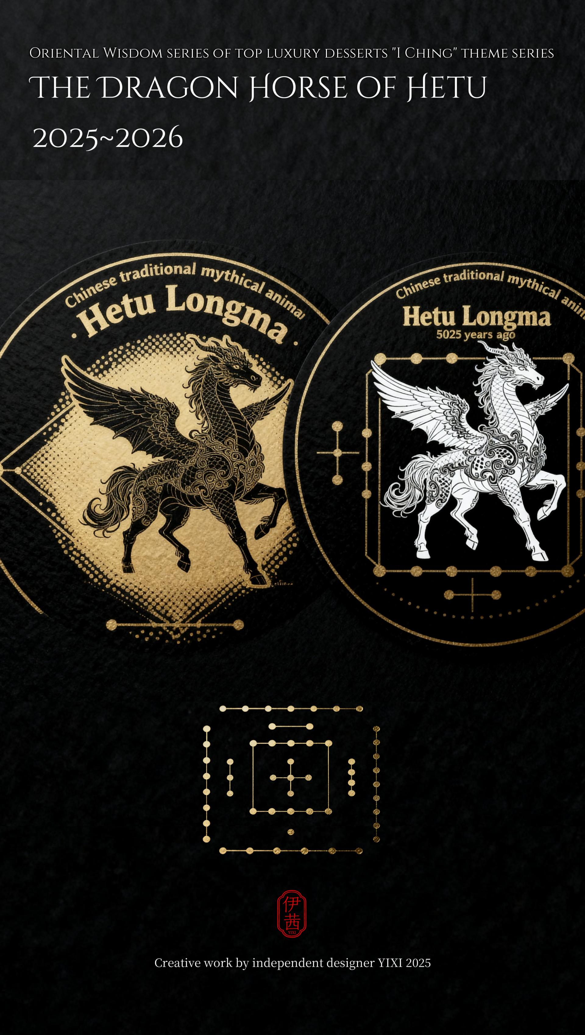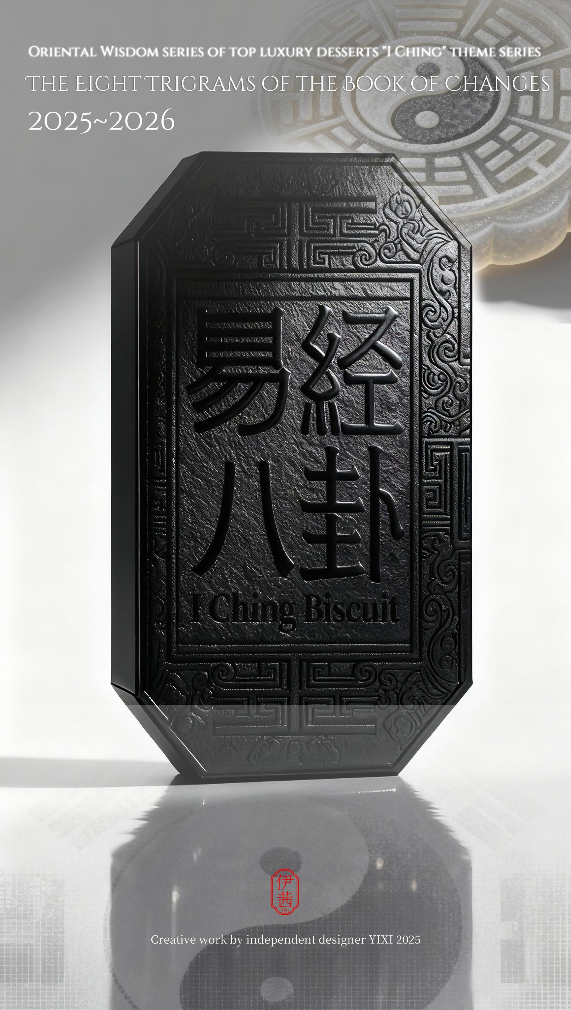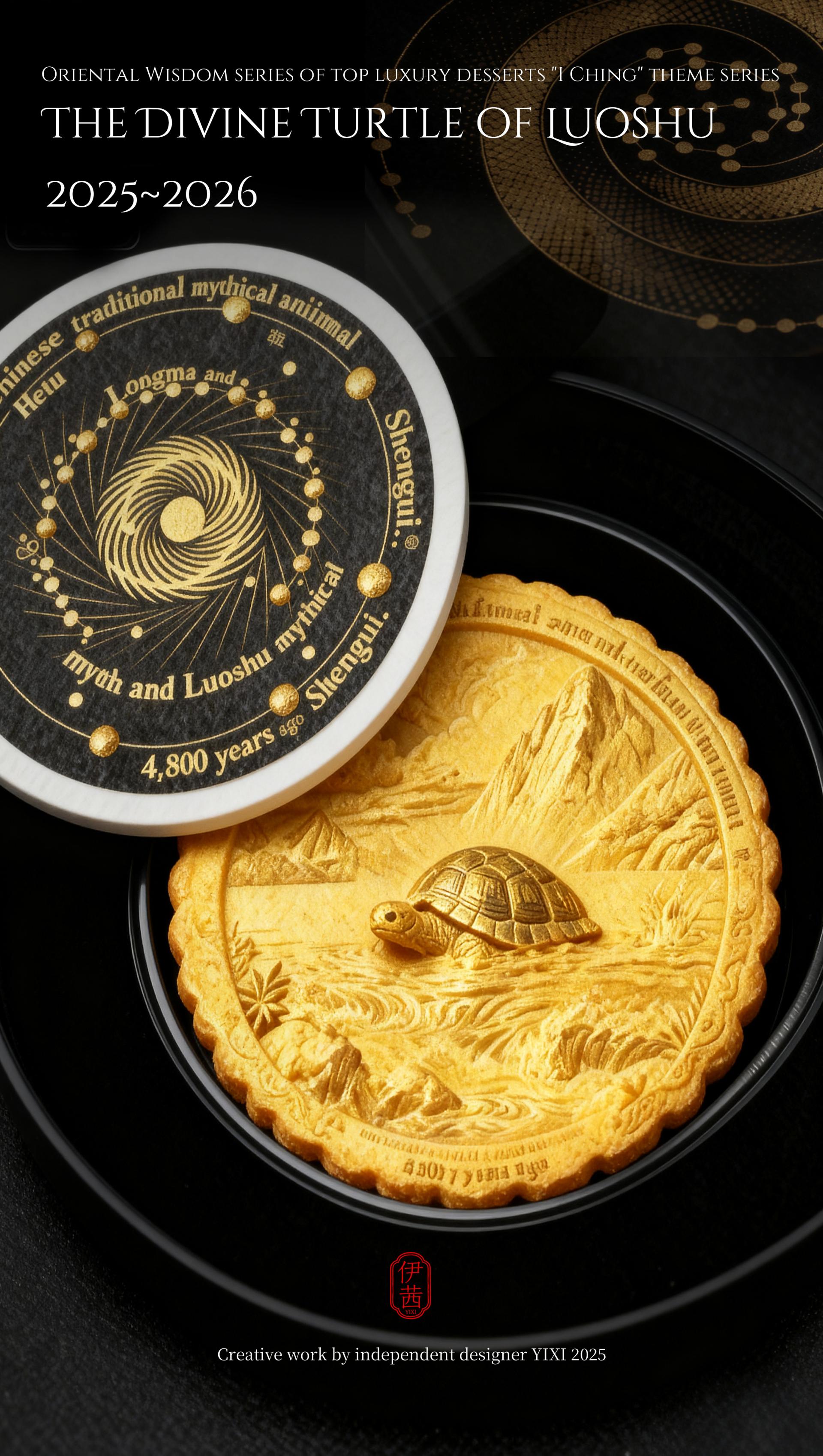 The design philosophy is rooted in the cosmological view of the I Ching, which involves contemplating the celestial patterns above and examining the terrestrial forms below. This vision integrates the transformations of Yin-Yang and the Five Elements, along with the philosophy of the unity between heaven and humanity, into the series' creative concepts, forms, and packaging. From the He Tu Dragon Horse symbolizing fortune and wisdom, to the Luo Shu Divine Tortoise embodying cosmic order; from the Ba Gua that represents the fundamental elements of nature, to the Sixty-Four Hexagrams that reveal the universal laws of change, each dessert is imbued with unique cultural symbols and auspicious meanings. It presents an extraordinary experience that connects the past with the future and melds the sensory with the spiritual.