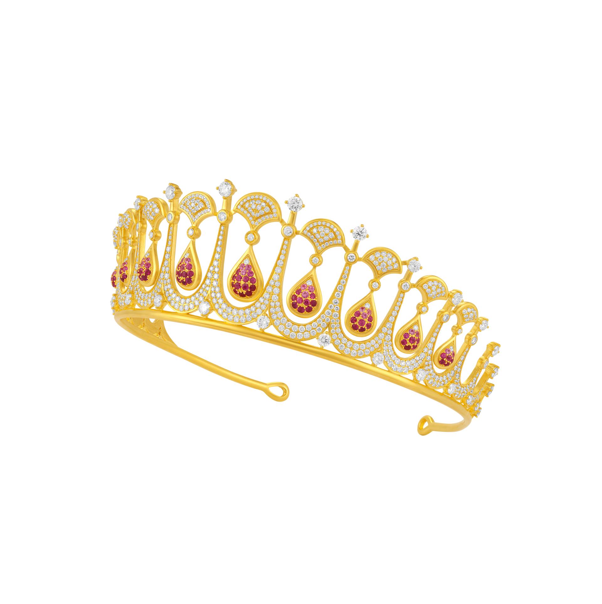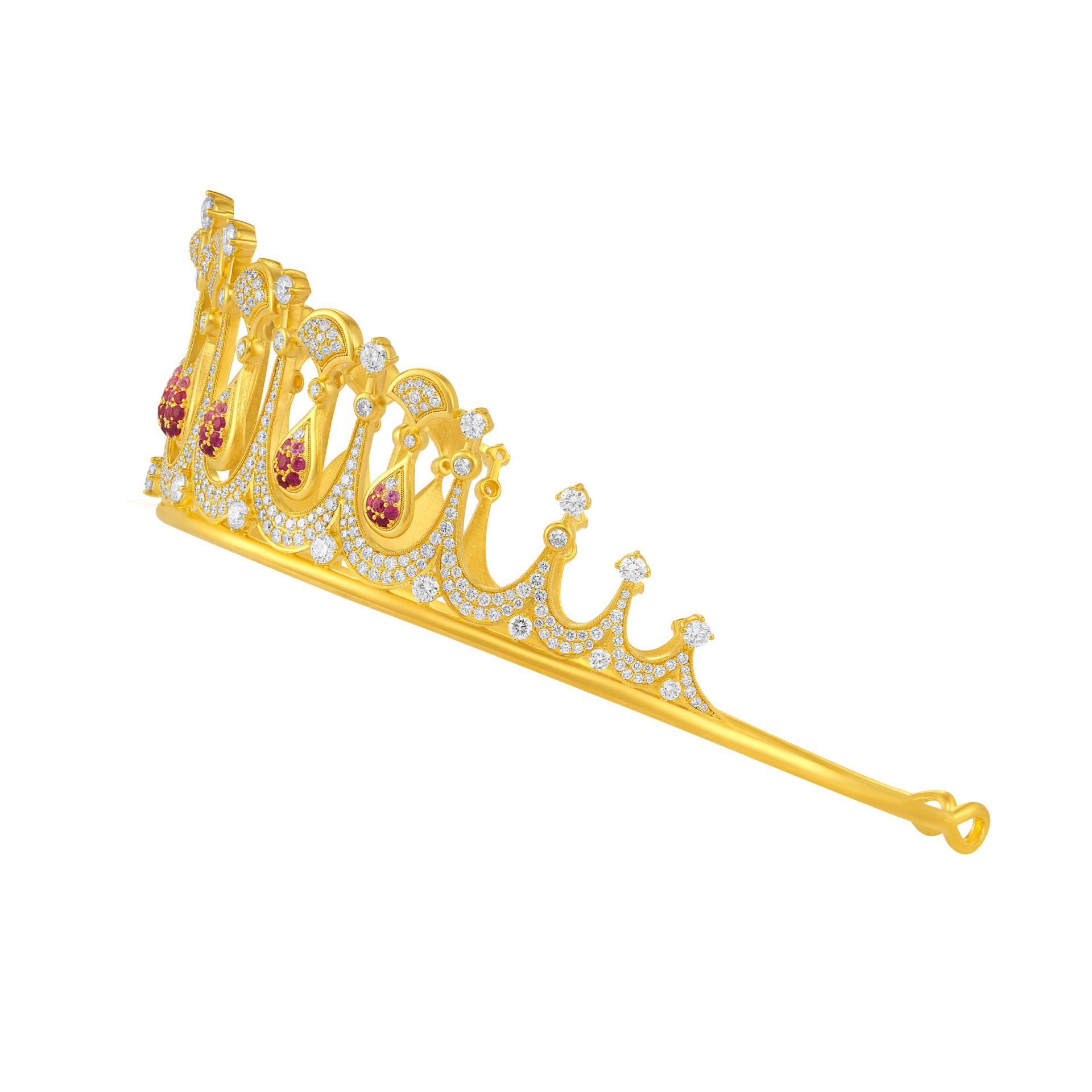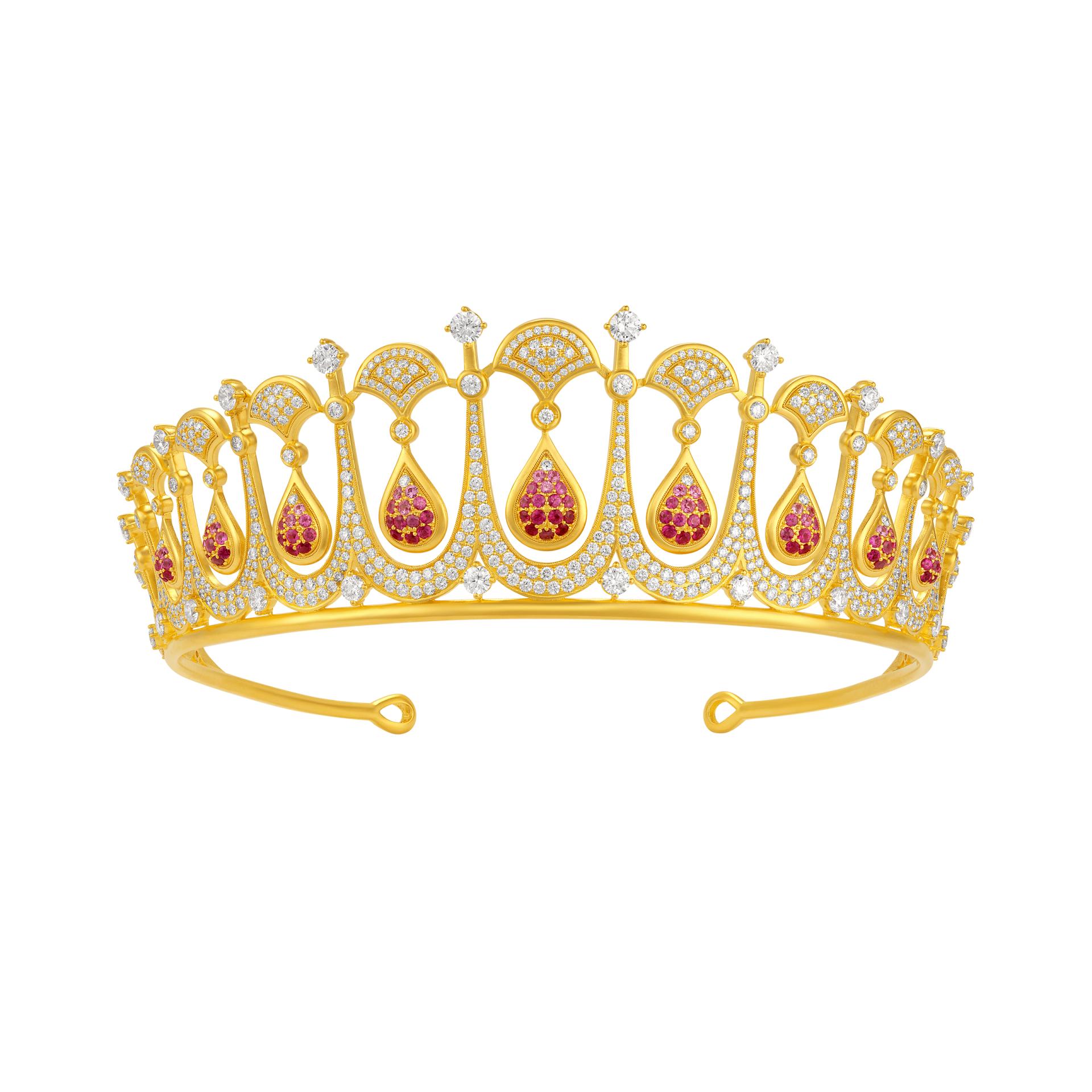 Crafted to the excellence of high jewelry, this tiara features a "graduated colored gemstone setting" technique that arranges colored gemstones from light to deep tones, maximizing light refraction and creating rich visual depth. Combined with dragon scale and phoenix feather patterns meticulously handmade through filigree under 40x magnification, this tiara delivers a dazzling visual impact and embodies the artistry that transcends mere brilliance.