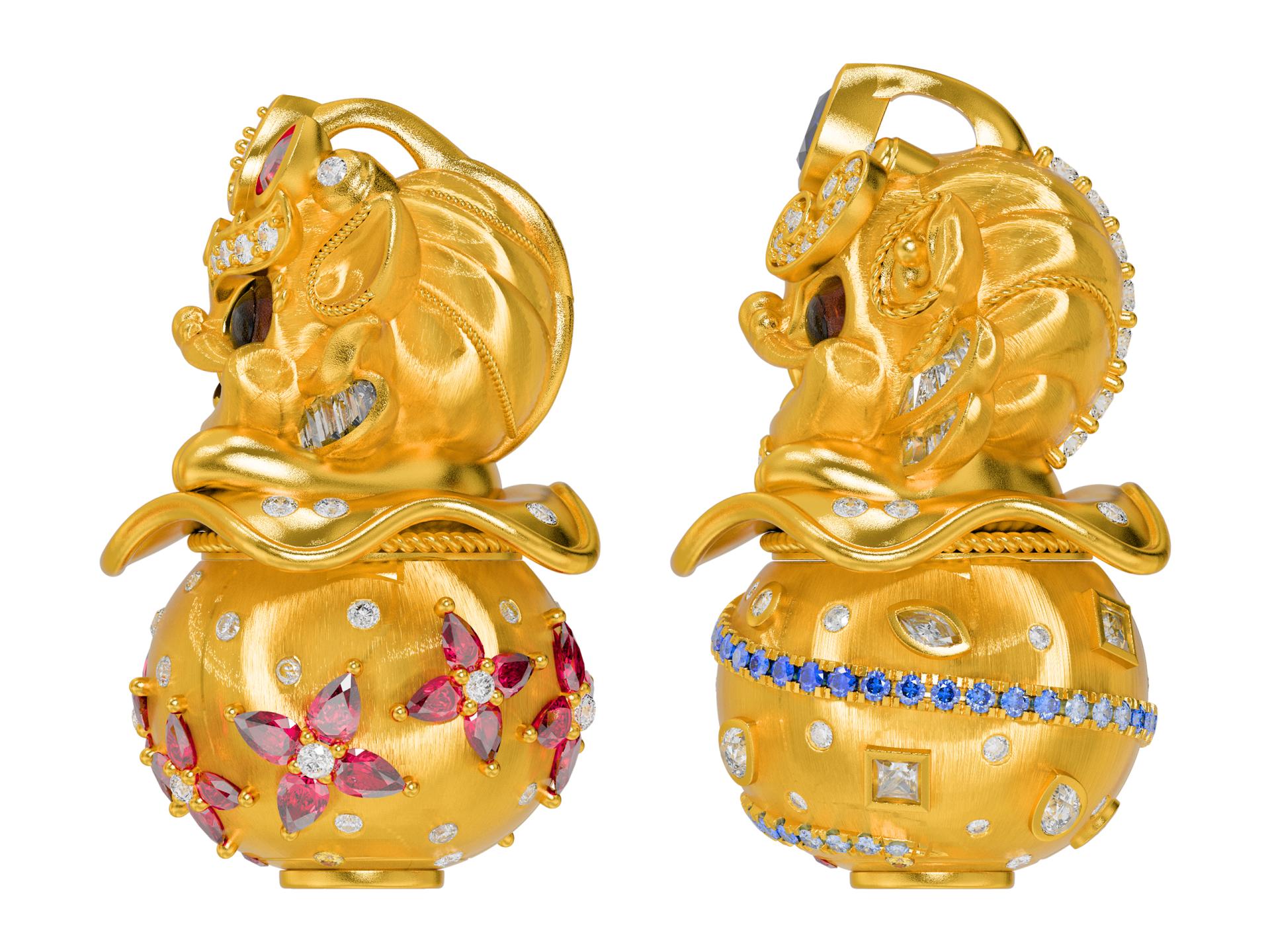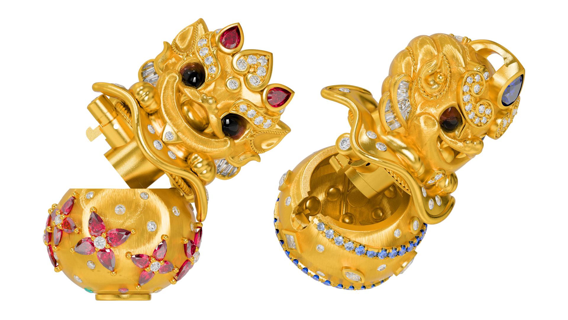 Centered on the philosophy of Eastern wealth, this collection of pendants ingeniously integrates an innovative, highly interactive mechanism into the form of a mythical creature symbolic of fortune in Eastern culture.