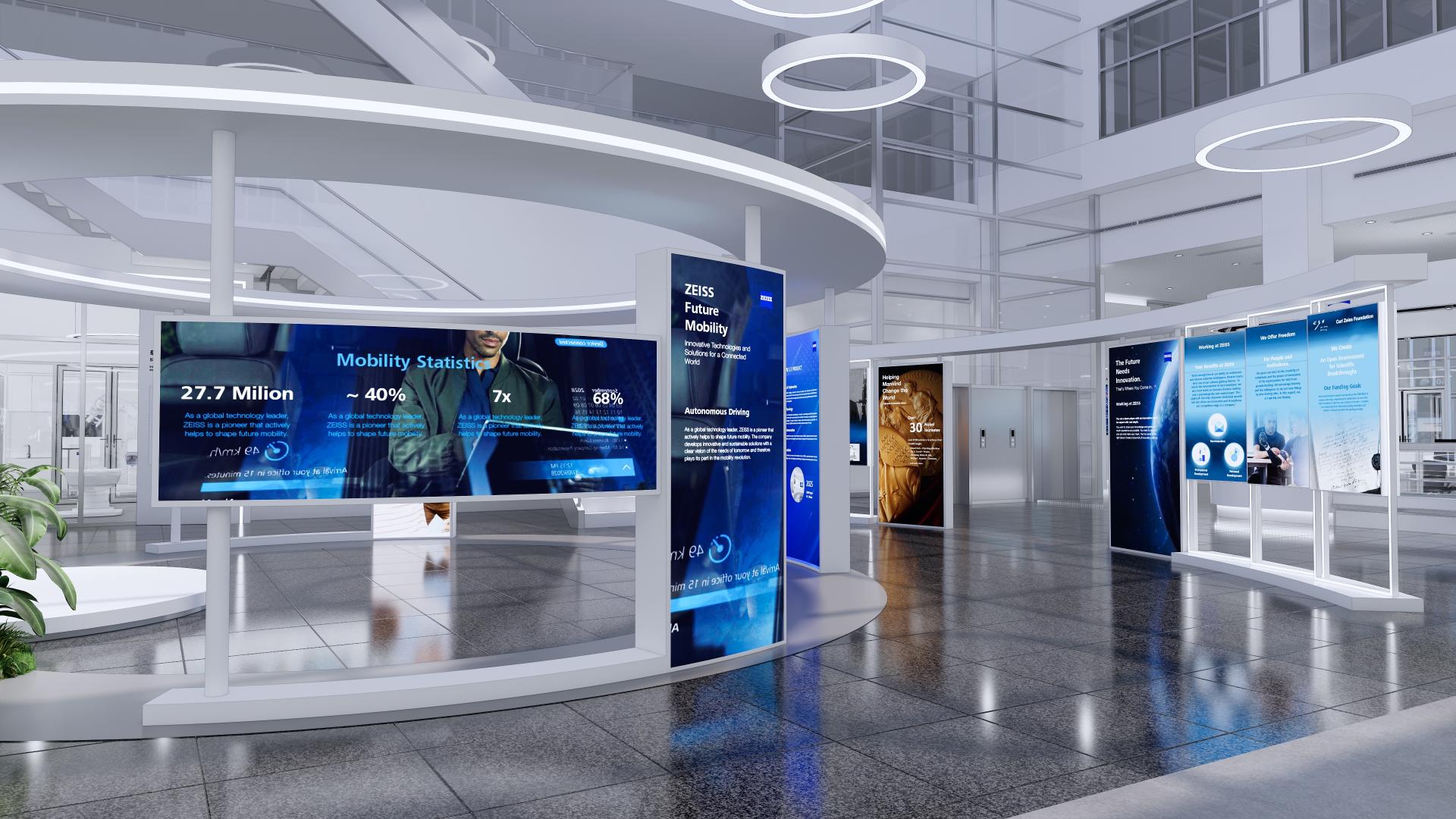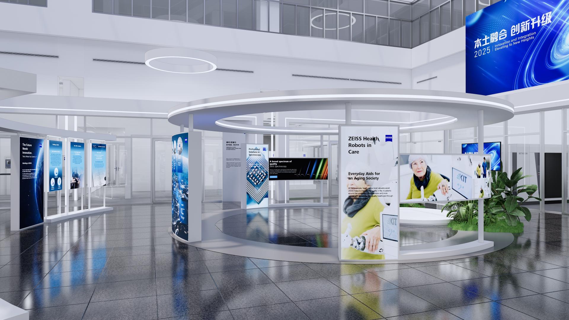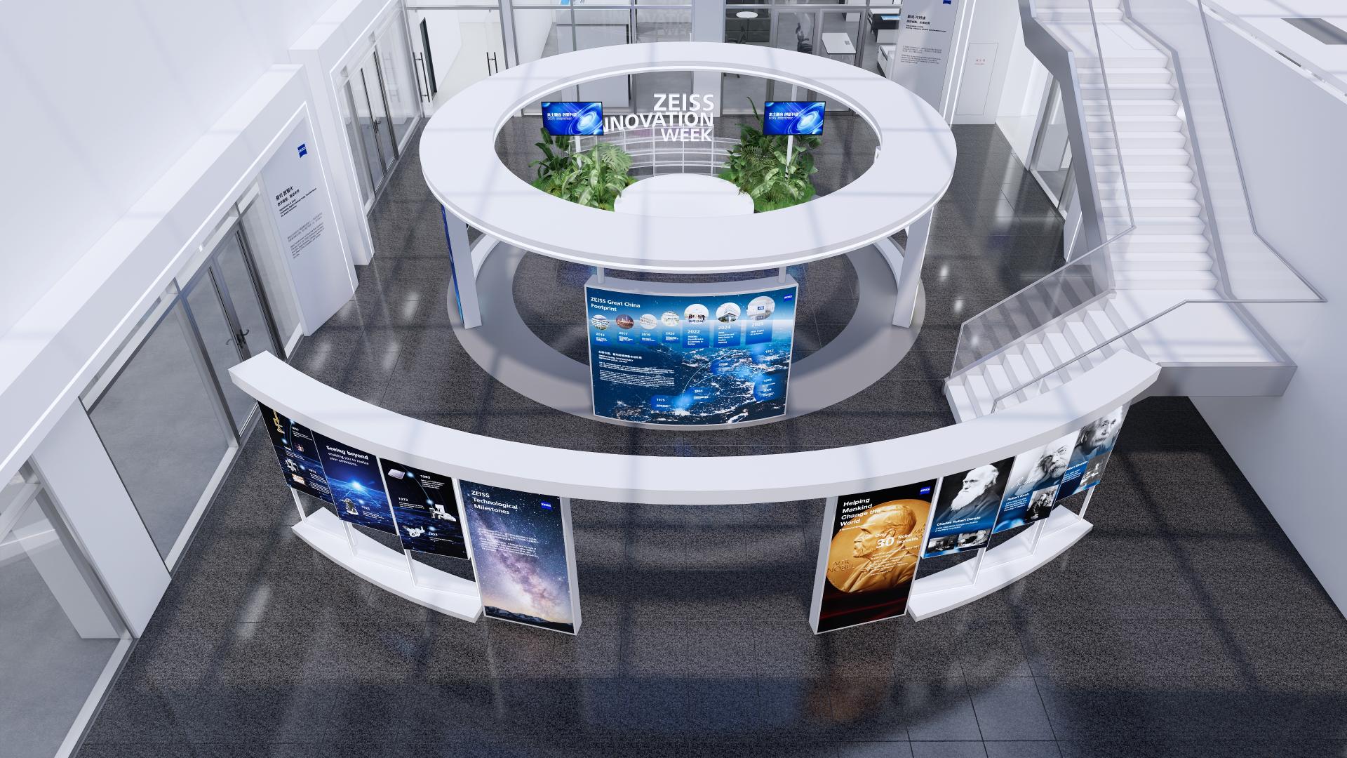 As a pioneer in optics and a driving force in innovation, ZEISS is committed to pushing the boundaries of imagination and advancing the frontiers of science and technology. The exhibition design for the ZEISS Innovation Week draws inspiration from urban city planning, transforming the event space into a dynamic, interconnected environment. At the heart of the layout stands the main stage—conceived as a central plaza—serving as the symbolic and functional nucleus of the entire week-long event. Around it, themed exhibition zones are arranged like distinct city blocks, organically surrounding the core to create a spatial flow of "surrounding – converging – radiating." This design reflects the essence of ZEISS innovation: not a linear progression, but a continuous cycle of iteration, evolution, and renewal—an ever-advancing innovation ecosystem. The radial arrangement of exhibition areas emphasizes a theme-centered visitor journey, guiding attendees along intuitive, purposeful pathways. This flexible circulation system also allows seamless navigation between concurrent sessions and satellite forums, enhancing engagement across multiple discussion tracks. Integrated with the optimized Customer Center space, the exhibition seamlessly blends brand experience with technological storytelling, creating a cohesive and immersive environment. The overall design not only showcases ZEISS’s cutting-edge innovations but also embodies its culture of openness, collaboration, and sustainable advancement.