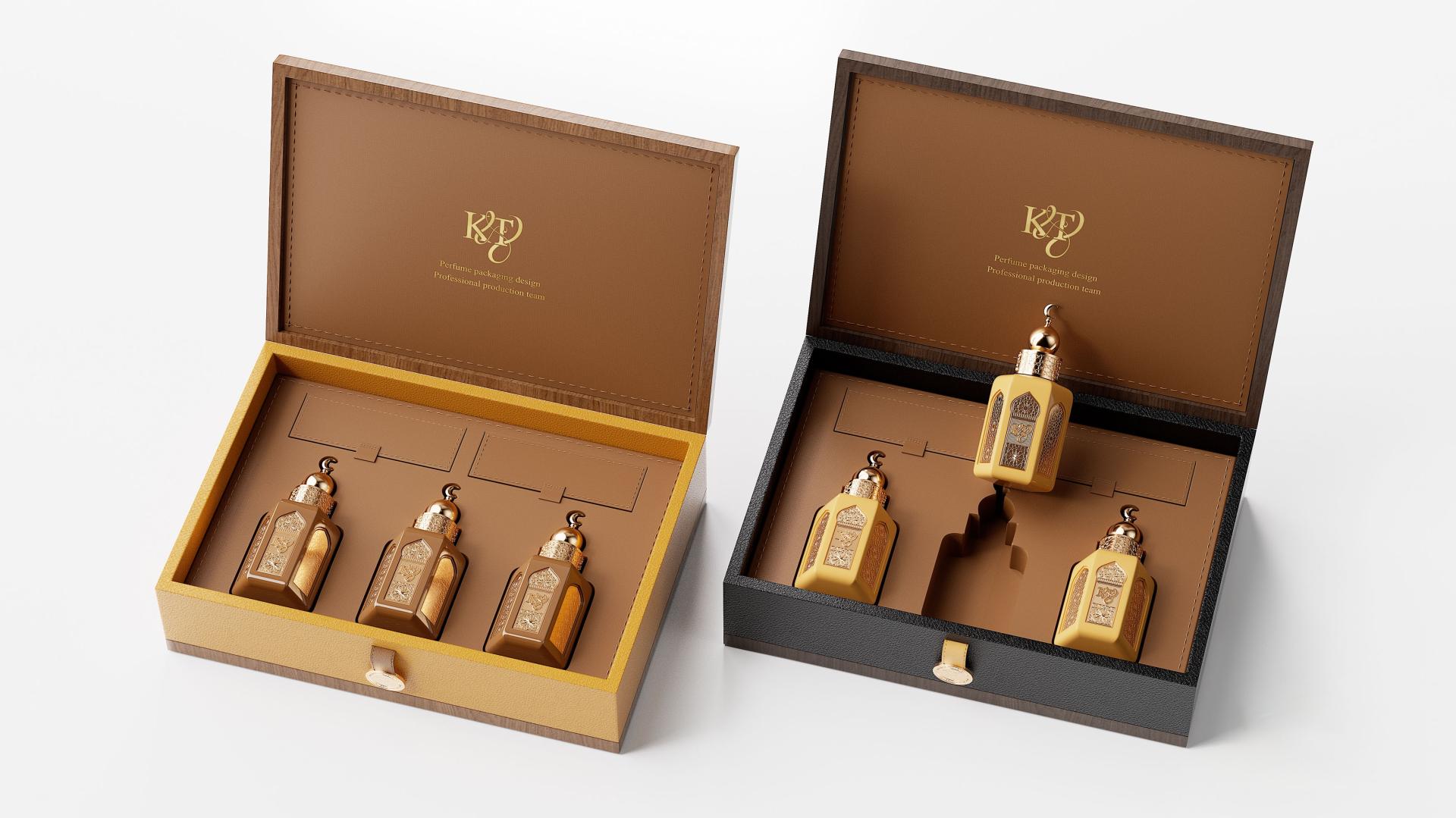 Each box and bottle is a testament to luxury. The use of high - quality materials like textured leather - like surfaces and metallic accents exudes opulence. Meanwhile, the packaging is designed for practicality: secure closures protect the precious perfume bottles, and the internal layouts ensure proper storage and an unboxing experience that delights.