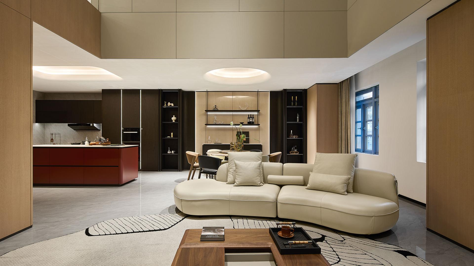 All materials are sourced from TUBAO, showcasing the brand's capabilities. A smart system enhances functionality, while soft furnishings, like the Deqing oilcloth umbrella art installation, add emotional warmth.