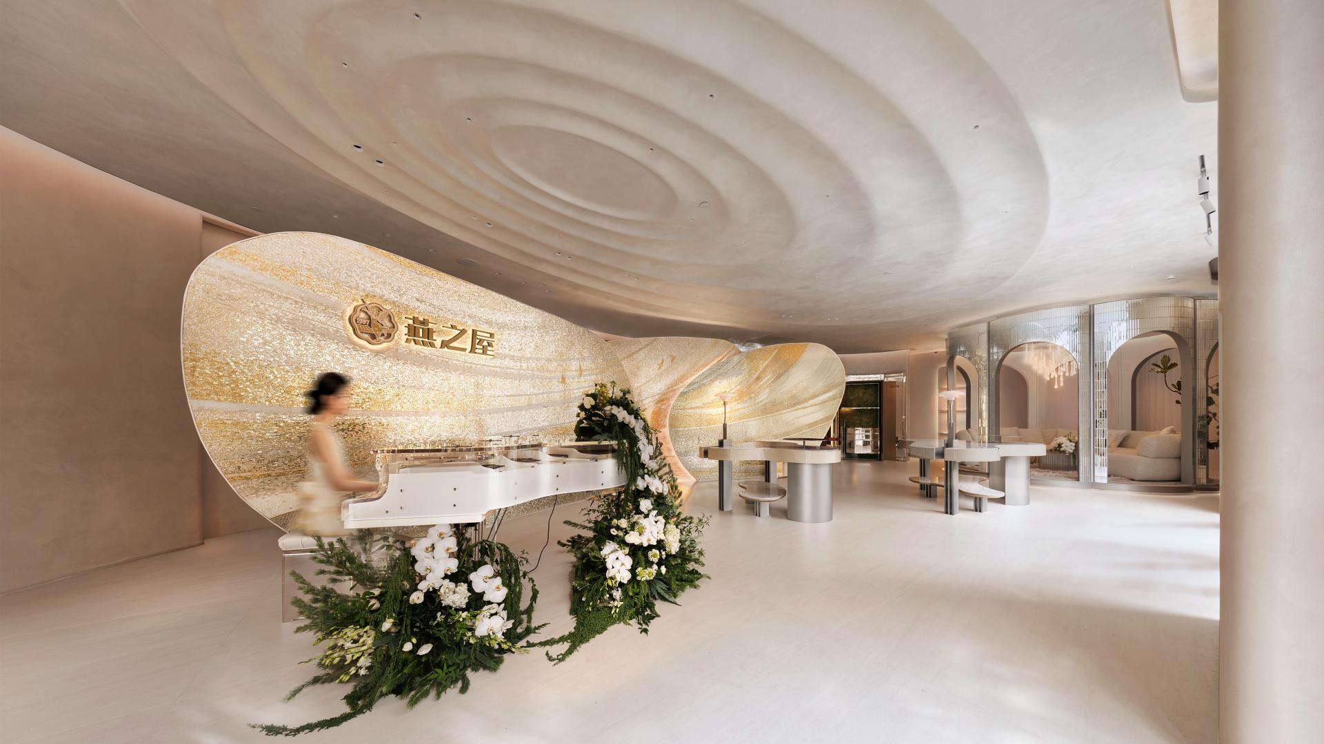 Exquisite craftsmanship is the foundation of the entire experience. The entrance is anchored by an art wall of over 120,000 handcrafted mosaic tiles, capturing the elegant trajectory of swifts with artistic precision. This commitment to quality is also reflected in the extensive use of low-carbon artistic coatings. Beyond the physical, this craftsmanship unfolds as cultural storytelling: a grand piano serves as a deliberate homage to the brand’s origin in Xiamen, China’s famed “Piano Island.” Crowning the experience is the design’s most profound gesture: framing the view of the historic Shanghai General Chamber of Commerce. It is this synthesis of craft, culture, and context that elevates the space beyond a store into a true members’ “home,” fostering a community centered on the core values of love, nourishment, beauty, and health, and ultimately forging profound brand loyalty.