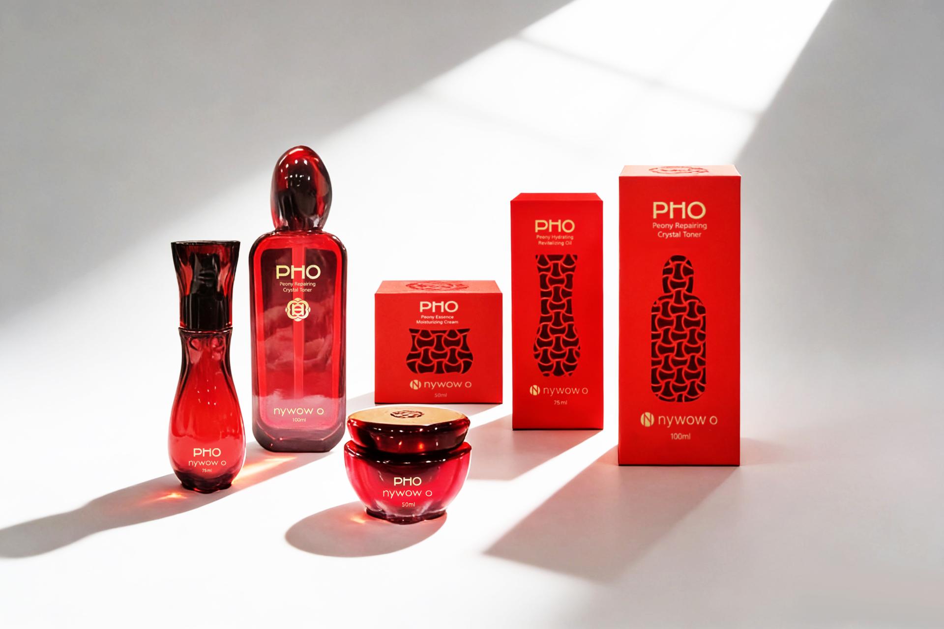 The series constructs a unified visual system through the integration of “peony motifs, Ru ware aesthetics, and contemporary illumination.” Petal-shaped bottles, rouge-red glaze tones, and silver ingot–patterned windowed packaging collectively form a cohesive design. Each item within the collection is shaped by refined petal silhouettes, giving the bottles a sculptural presence when displayed. The outer box features Giuseppe Castiglione’s peony paintings and continuous silver ingot patterns, symbolizing prosperity and longevity. Emphasizing the trilogy of “scientific research, botanical power, and Eastern artifacts,” the series elevates skincare into an elegant ritual while enhancing collectability, durability, and brand recognition.
