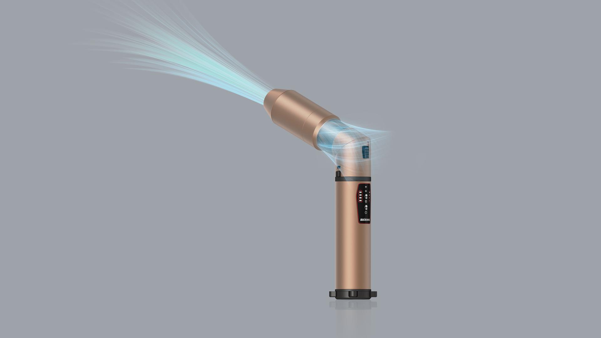 This rechargeable cordless high-speed air blower prioritizes an exceptional user experience, revolutionizing the layout of the motor and the battery. It features an innovative rotating shaft that enables free switching between straight rod mode and 30° angled mode, boosting overall usage flexibility. The straight rod mode allows easier access to narrow and other hard-to-reach areas, ensuring comprehensive cleaning coverage. The 30° angled mode makes it easier to attach accessories like straight tubes, expanding application scenarios; this mode also offers a more comfortable grip for the blower, perfectly resolving the issue with traditional models—where the motor and handle are positioned at a 90° angle, limiting users to small accessories and thus hindering convenient straight tube attachment. Additionally, this blower delivers powerful wind pressure exceeding 450g with its 300–450W motor and 6-cell battery, outperforming similar products on the market in cleaning efficiency.