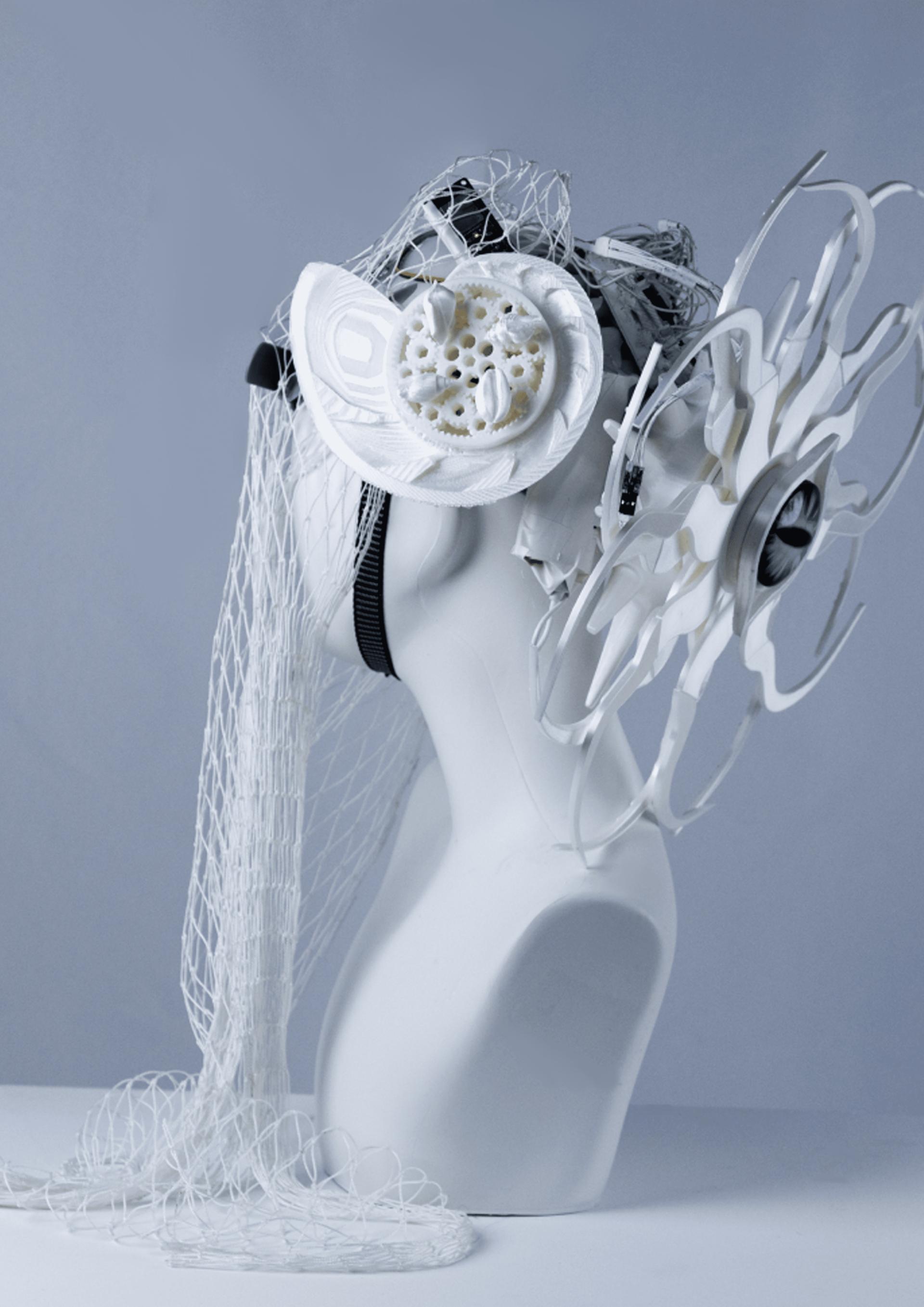 "OCEAN NET" is a wearable interactive art installation that explores the symbiotic relationship between nature and technology by extending the boundaries of the human body. The piece merges the organic forms of marine life with gear-driven mechanical systems, symbolizing technology as an extension of humanity. It reflects mankind’s desire to replicate the rhythms of nature and reawaken the deep-seated memories of the ocean. The installation prompts a questioning of the boundaries between technology and nature, sparking a reflection on how humans, in an increasingly mechanized world, can reconnect with the natural world and the essence of life.