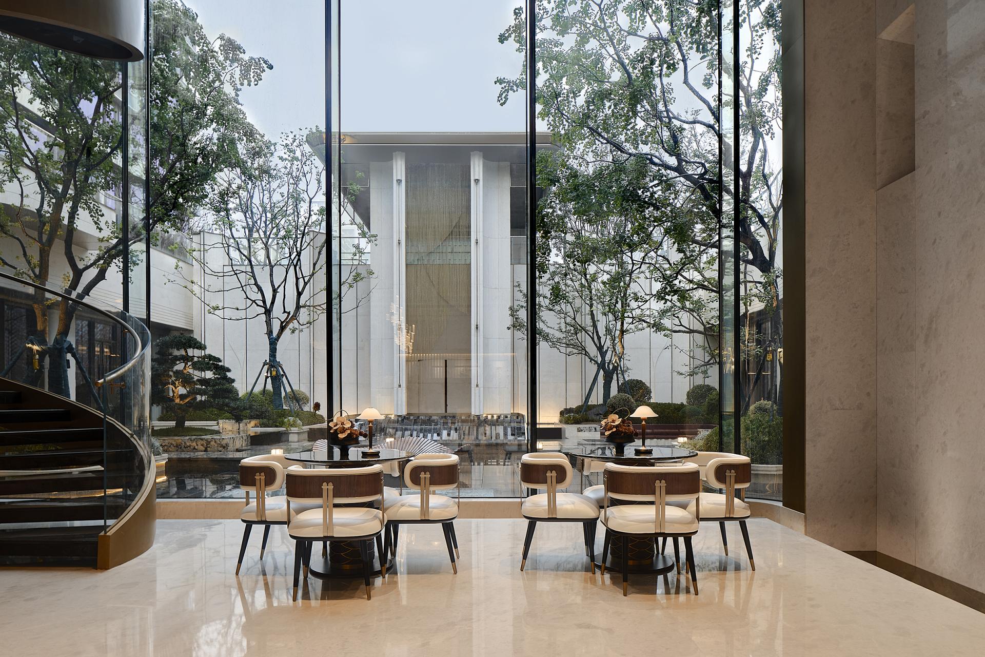 In addition, the design reinterprets Jinan’s intangible cultural heritage—such as Lu embroidery, wood carving, and shadow puppetry—through a contemporary lens. These traditional elements are integrated into the space to create a cultural experience that “begins with immersion in landscape and culminates in spiritual cultivation.” The goal is to transform the club into an urban living room that balances both functionality and deep cultural meaning.