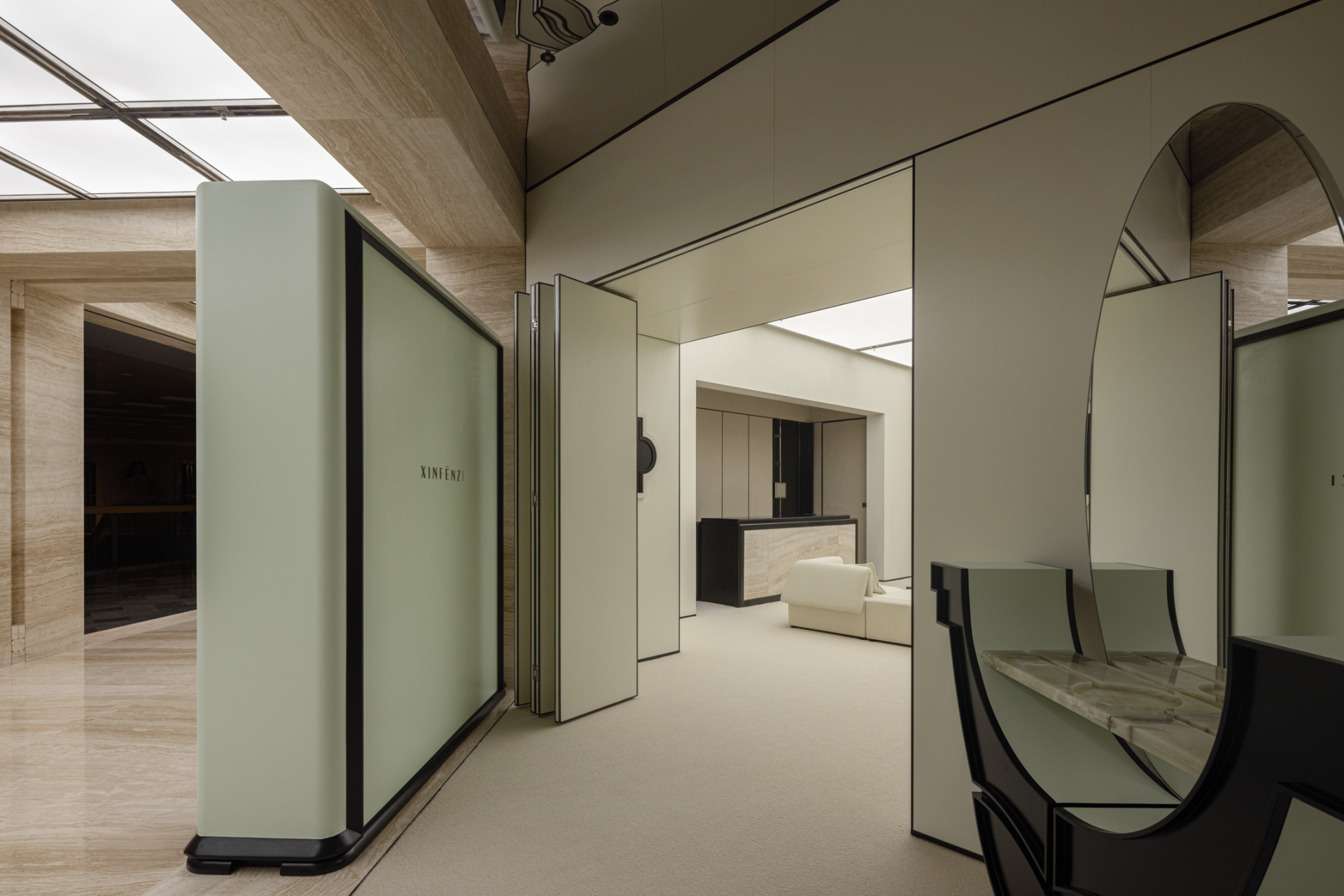 ABS Creative Studio narrates the space in the tone of Estern culture, which restarts the spirit of "The Peach Colony" in a modern space. The design captures the simplicity and long-termism inherent in the brand's character, hoping to allow customers to discover subtle changes in the unknown and uncertain through an exploratory experience, thereby gradually building a connection with the brandThe space encompasses a journey that moves from "first encounter," to "exploration," and finally to "merging together," symbolizing the process of becoming friends, from meeting to get to know each other. This is definitely a sincere invitation for customers to indulge in a tranquil and beautiful atmosphere. The ideals and spirits of the brand are reflected in both its aesthetics and development.