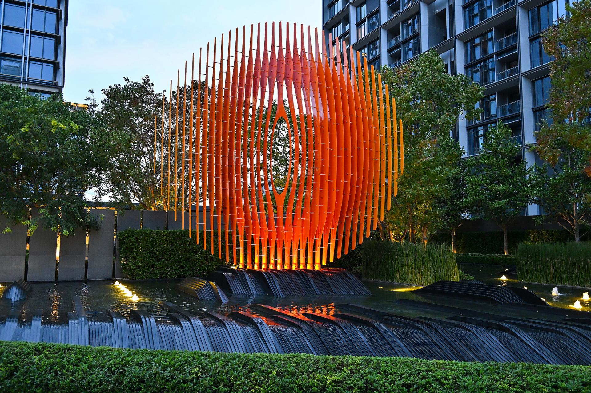 The landscape design is inspired by the waters of the Yangtze River, the waves are expressed through modern abstract forms to create a landmark residential landscape design. Through the strategic spatial layout, the concept of the project borrows the nearby industrial relics as the background to create the unique visual effects of the project's landscape and evoke the memory of the city. The secondary entrance at the north end is adjacent to Bailianjing Park, which closely combines the design elements of the project with the external environment of the site to form an open and leisure park that is connected to the overall urban green belt. At the same time, through recycling and reuse of existing stone, and retaining a large number of existing sculptures and street trees to achieve sustainability, it emphasis Shanghai's green, livable, leisure, and cultural characteristics.