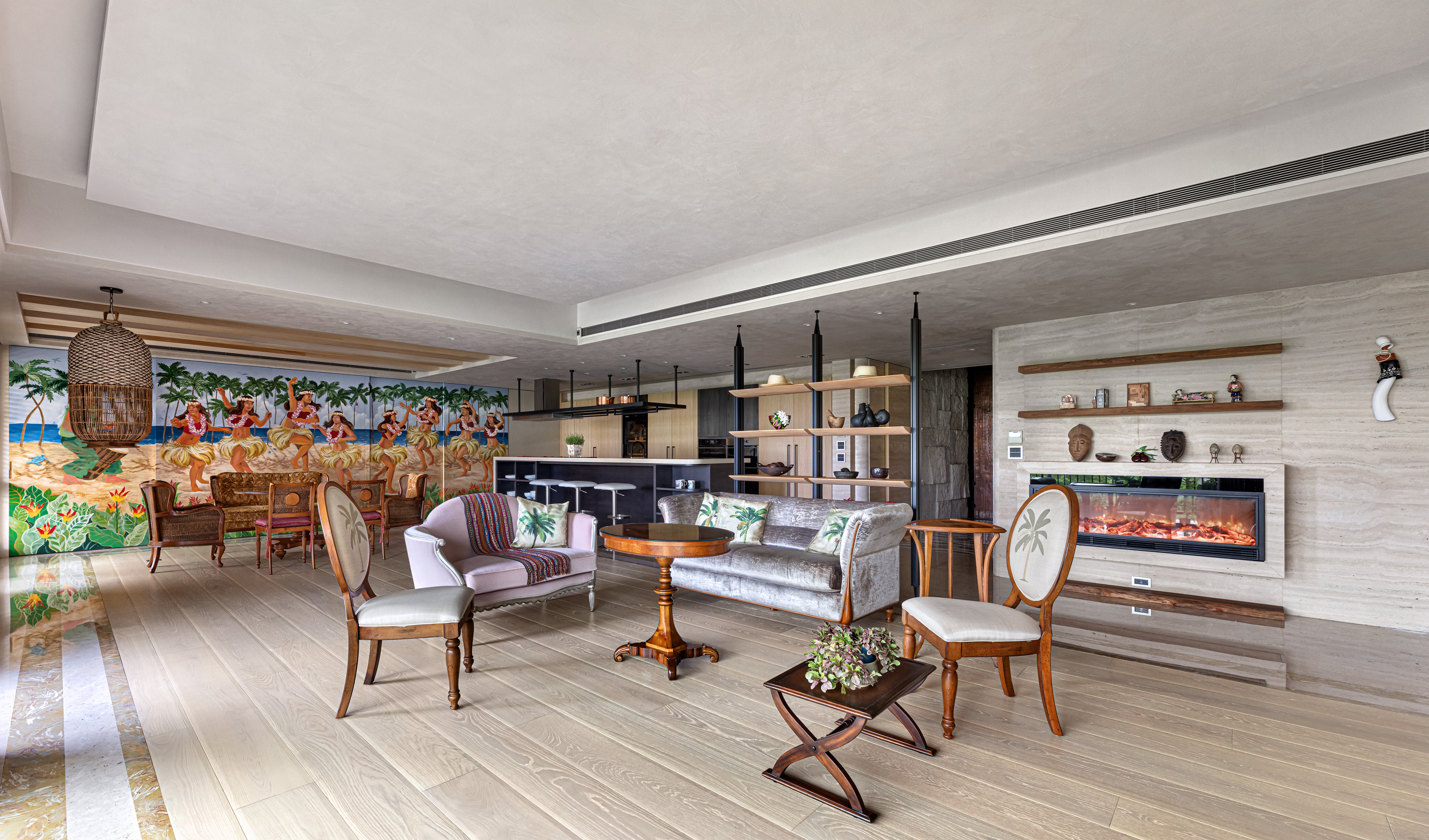 This project embodies the spirit of island living, blending tropical warmth with contemporary comfort. Having lived in Hawaii for many years, the client wished to bring the islands’ essence into daily life — a sense of calm, light, and connection to nature. The design draws from Hawaii’s natural landscape — sand, wood, stone, and its relaxed atmosphere. A neutral palette of white and beige, paired with organic materials like rattan, linen, and warm timber, creates a serene, welcoming environment. The open-plan living spaces feel fluid and airy, filled with natural light and the gentle rhythm of island life.