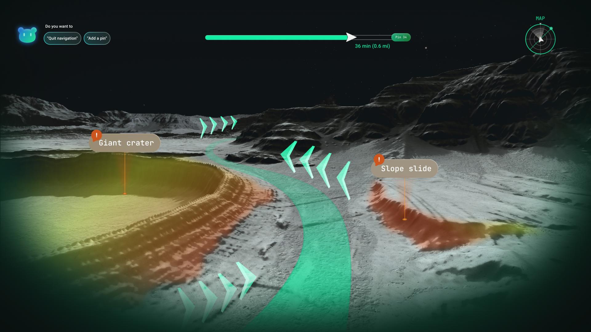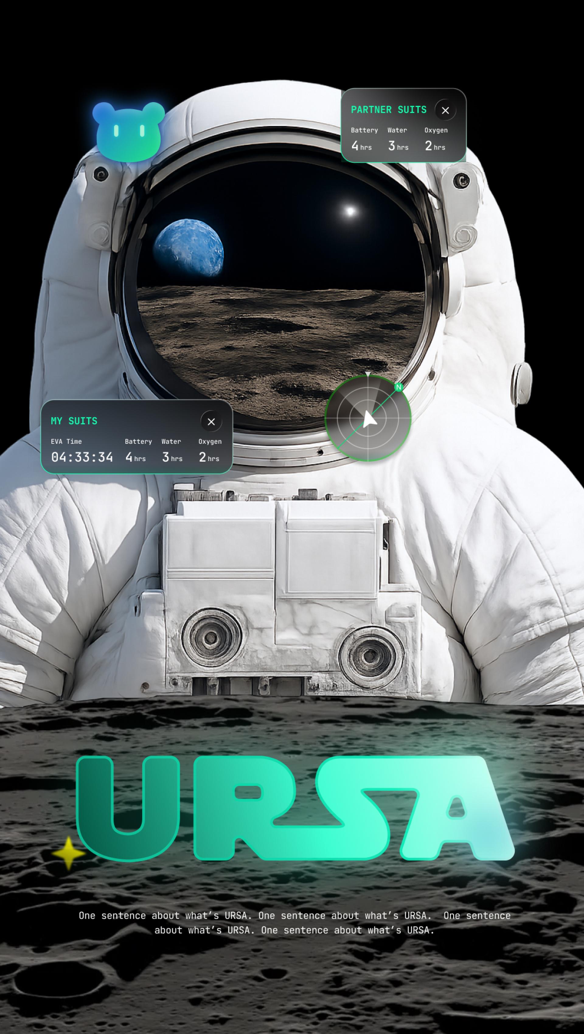 URSA is an AI-powered AR system that assists astronauts in completing lunar missions safely and efficiently. It explores how Artificial Intelligence and Augmented Reality can help astronauts overcome challenges such as cognitive overload, limited mobility, and occupied hands. By enabling pure voice interaction, astronauts can simply speak to URSA to receive the information or assistance they need. The system understands the context of each task, predicts upcoming actions, and presents information exactly where it is most relevant. With its non-intrusive design, URSA keeps astronauts focused on their primary work while remaining aware of their surroundings, reducing effort, preventing errors, and improving overall mission performance.