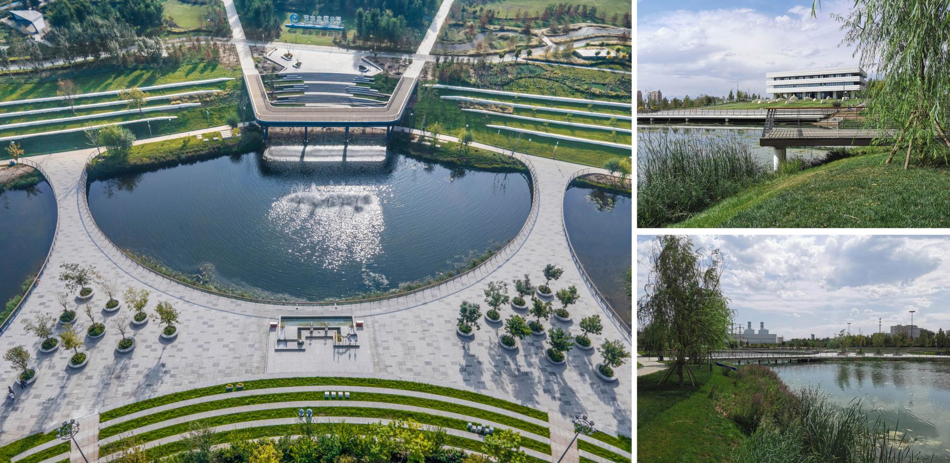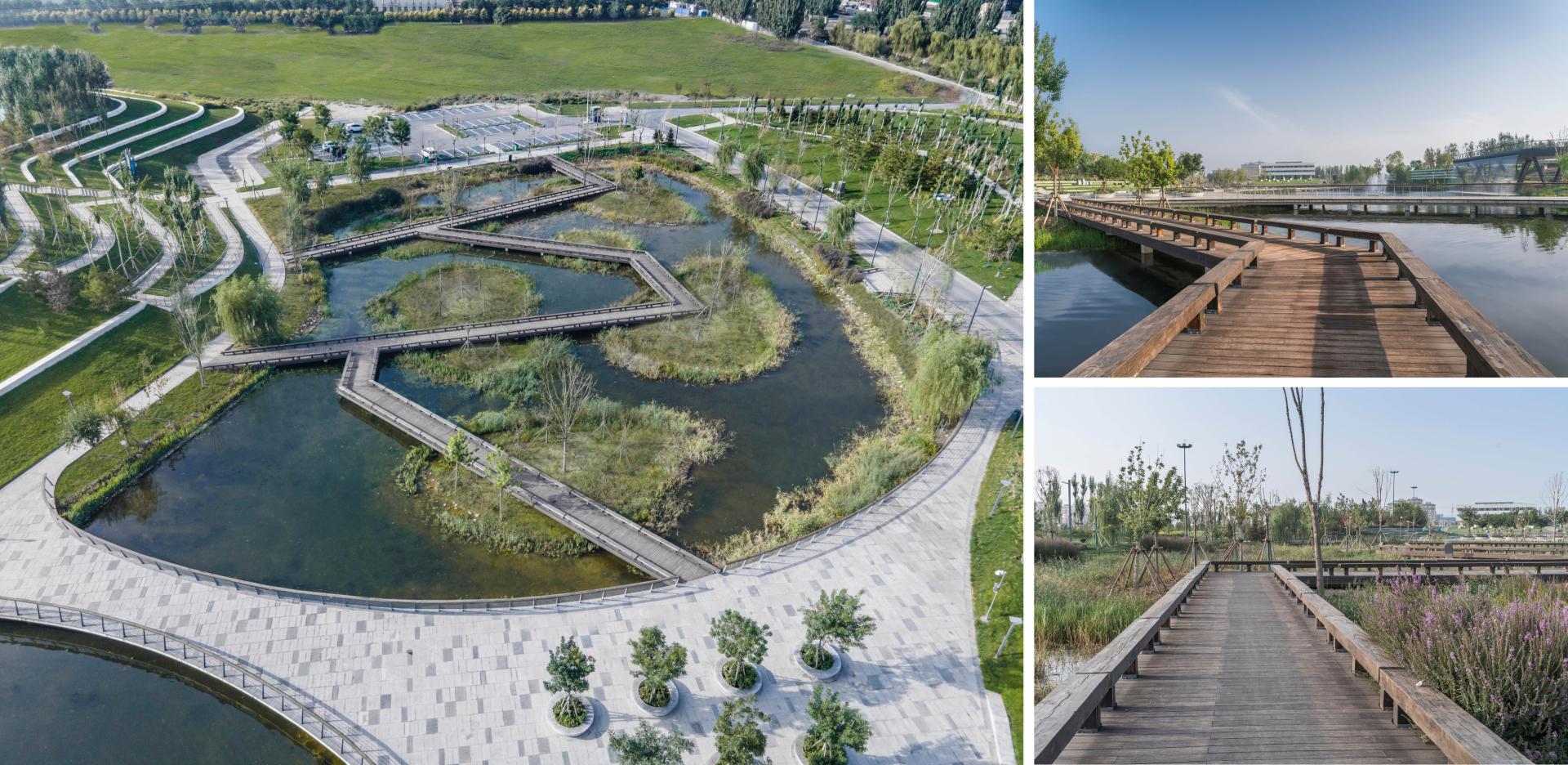 The park's water features rely on the plant’s recycled tailwater, which is diverted and purified to maintain a 100% recycling rate. The tailwater flows through a scenic waterfall that serves both as a filtration system and an aerator. Additionally, rainwater is harvested from 5,000 square meters of Low Impact Development facilities and directed into the park’s wetland and lake, mitigating flooding and reducing pollution risks.