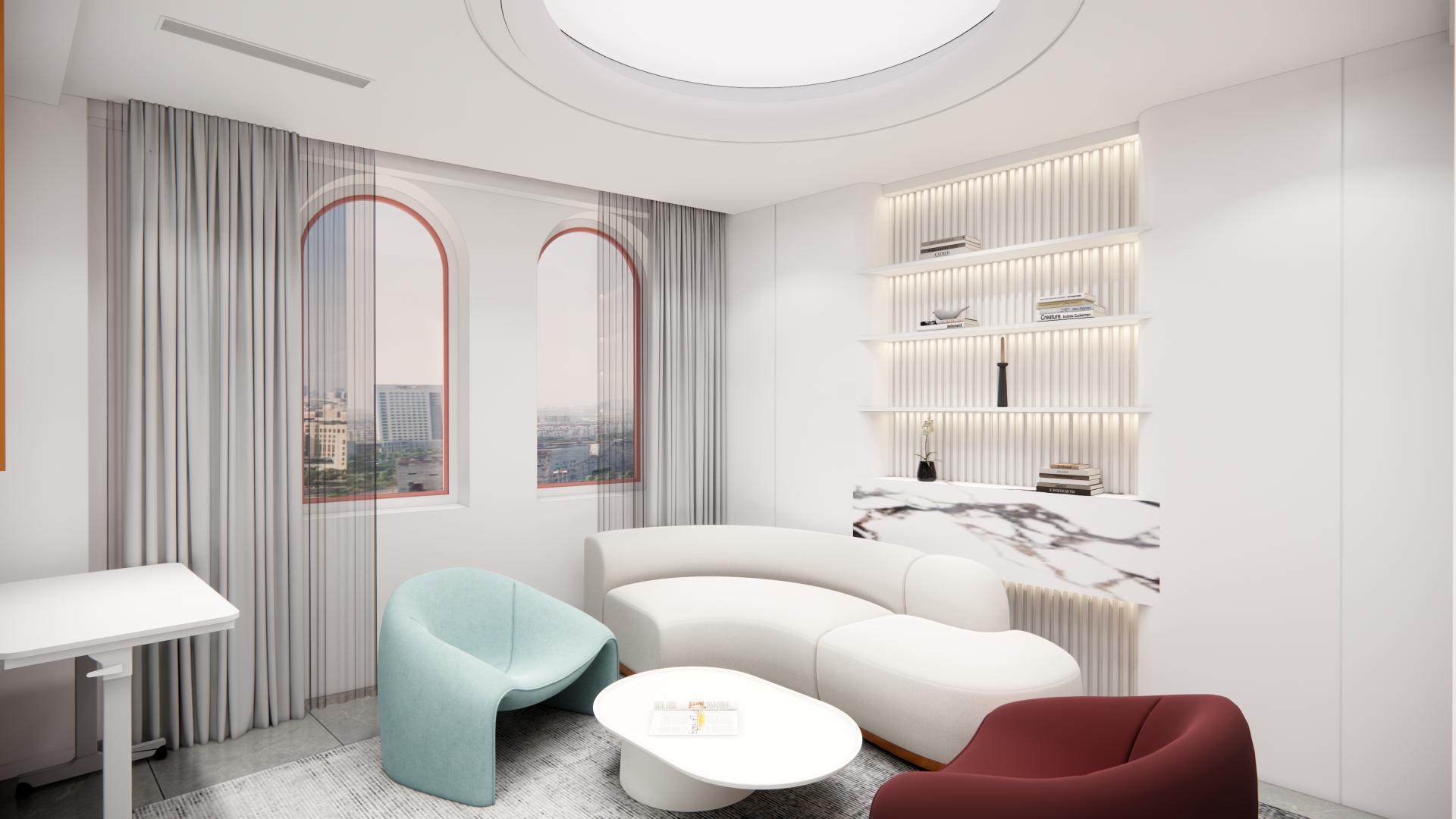 In this bustling metropolis, this design introduces a gentle and rounded form that stands as a beacon of love and warmth amidst the chaos. The combination of architectural lines, color choices, and atmospheric touches showcases the romance, beauty, and commitment of love. The space acts as a sanctuary, offering a sense of peace and reassurance in an otherwise fast-paced city. Its design stands as a symbol of hope and love, particularly in times of social anxiety, declining marriage rates, and evolving societal norms.