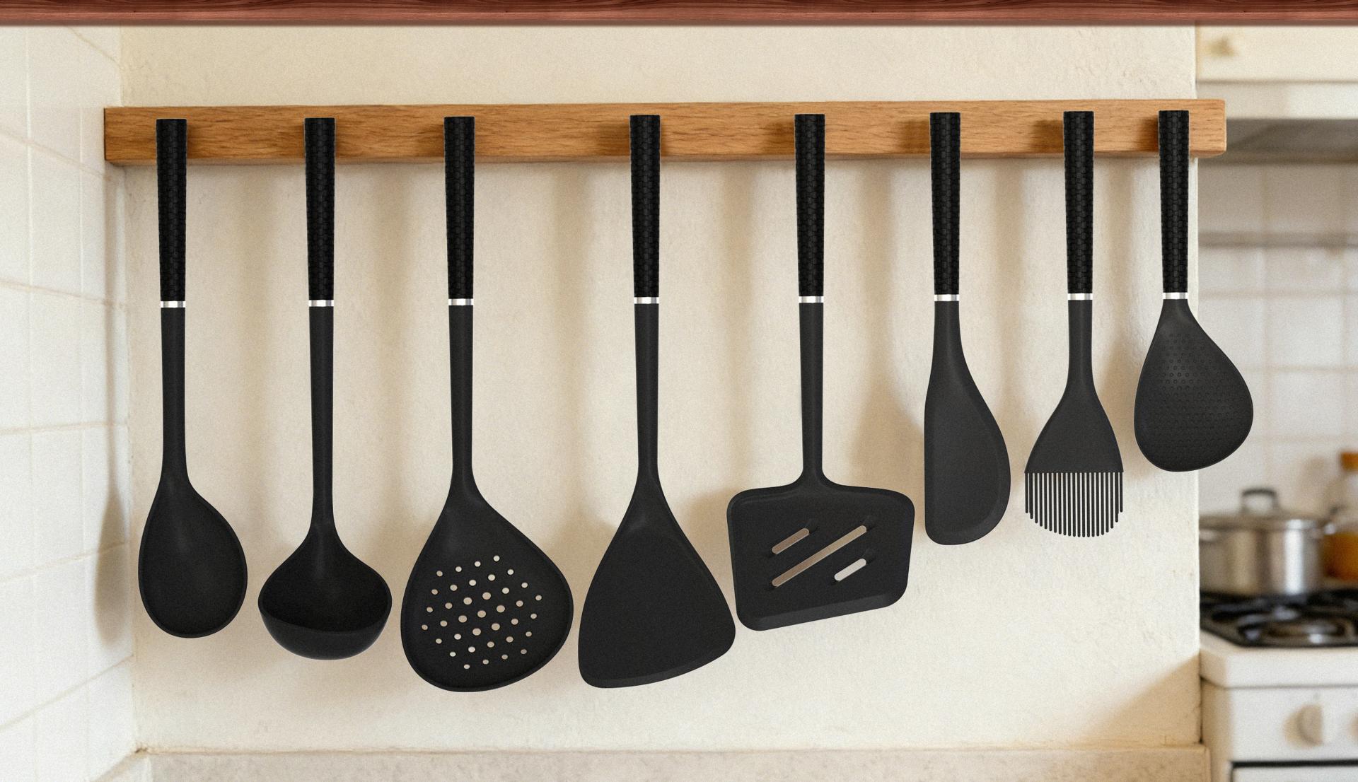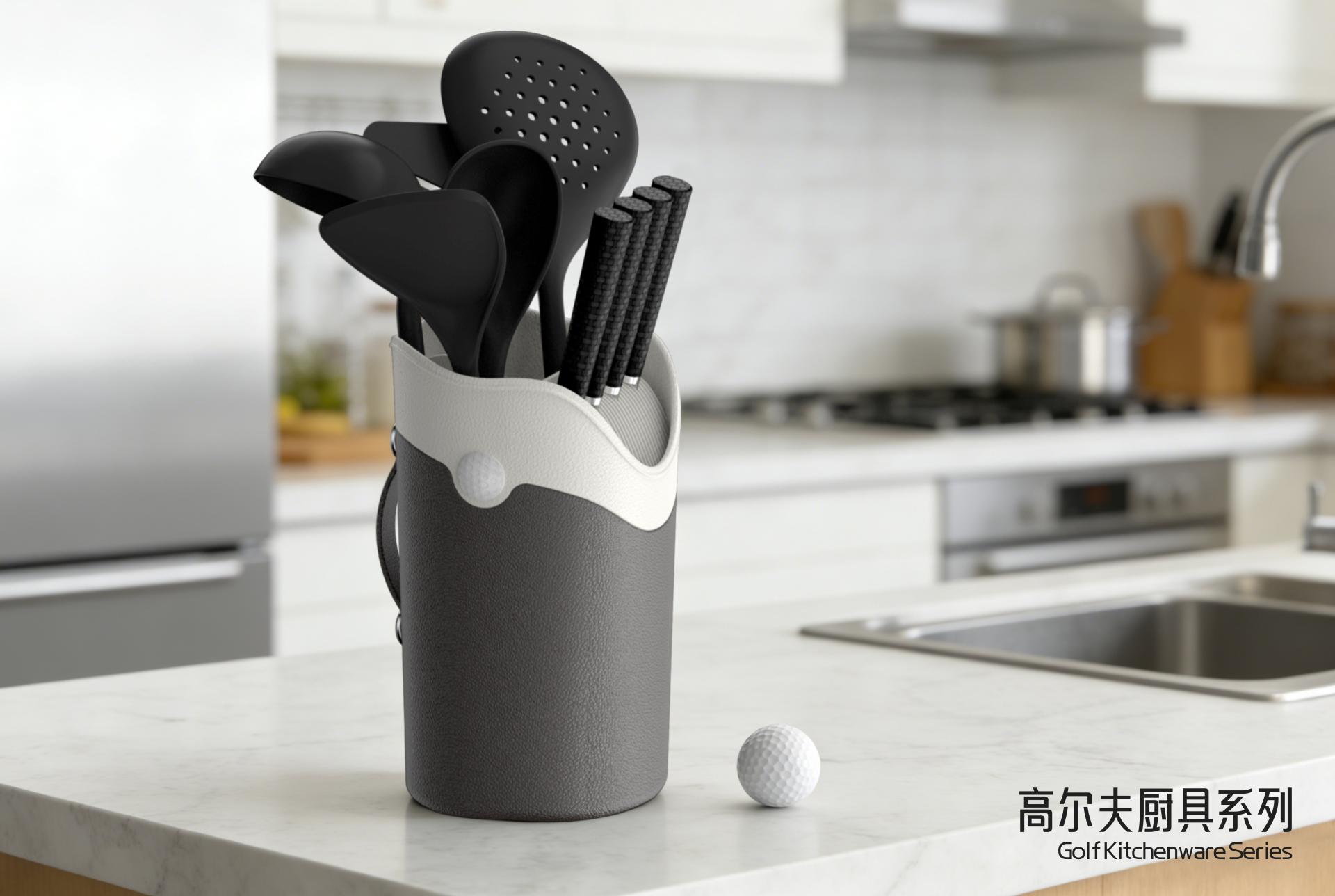 The design philosophy behind the Golf Kitchenware Series lies in shattering the monotony of traditional kitchen tools. Through an innovative cross-over fusion, we have precisely adapted the "gentleman's aesthetic" of golf to meet the functional demands of modern cooking. This is not merely a set of culinary tools, but a redefinition of the kitchen lifestyle. By imbuing everyday objects with the attributes of "sports luxury," we aim to create a cooking environment for the modern home that delivers both minimalist visual enjoyment and a superior control experience. To replicate the premium texture of golf clubs, we employed a precision etching process on the handles, perfectly rendering the delicate grain of carbon fiber. This instills a sense of technology and athletic tension visually. Complementing this is the main body made of food-grade silicone, where designers ingeniously applied a composite "matte + glossy" surface treatment. This not only constructs rich visual layers—breaking the deadlock of homogeneity in similar products—but also retains a warm, smooth tactile quality. This transformation of cross-over elements into symbols and scenarios ensures the product possesses high recognizability and a design depth of being "minimalist yet not simple." The upgrade in functional experience constitutes the core technical barrier of this series. Rather than mere technical stacking, we have deeply embedded the mechanical logic of a golf swing into the ergonomic design of the kitchenware. Focusing on the three core scenarios of "gripping, operating, and storing," we optimized the handle's gripping curve and weight distribution to achieve a "Confident, Secure Grip" akin to holding a golf club. This design ensures that users experience a smoother, more labor-saving "Effortless Cooking Flow" during large-motion culinary actions like stir-frying and mixing, effectively reducing wrist fatigue. Safety and sustainability concepts pervade the entire product lifecycle. The entire series rigorously selects food-grade silicone that complies with GB 4806.11-2016 and FDA standards. Free from Bisphenol A (BPA) and heavy metals, the material effortlessly withstands extreme cooking environments ranging from -40°C to 230°C, releasing no odors or toxic gases at high temperatures.