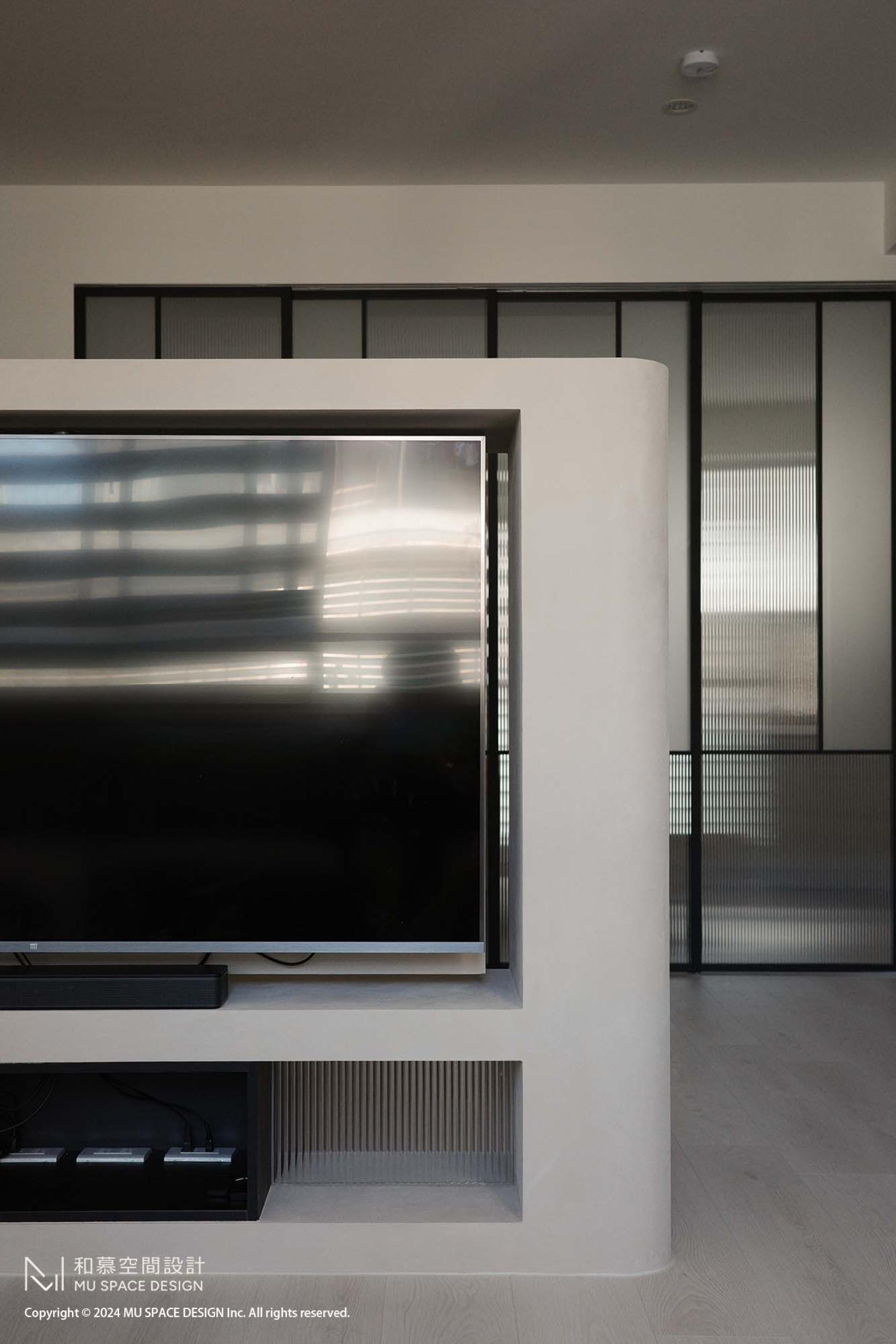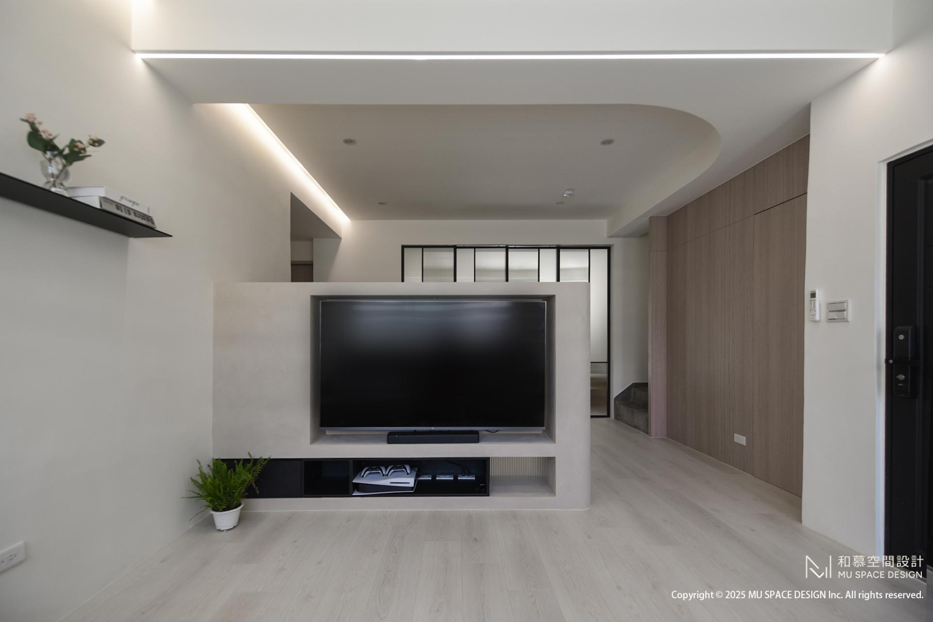 The main design challenge is the low beam above the TV wall. If enclosed in a conventional manner, it would introduce a strong sense of visual weight and spatial compression. Instead, gentle curves transform the beam into a light and dynamic element, softening its structural edges, while strip lights redefine its visual proportions. A warm amber-toned light on one side further introduces a gentle glow. Light not only illuminates physical objects. It shapes volumes, reveals textures, and transforms the ordinary into extraordinary.