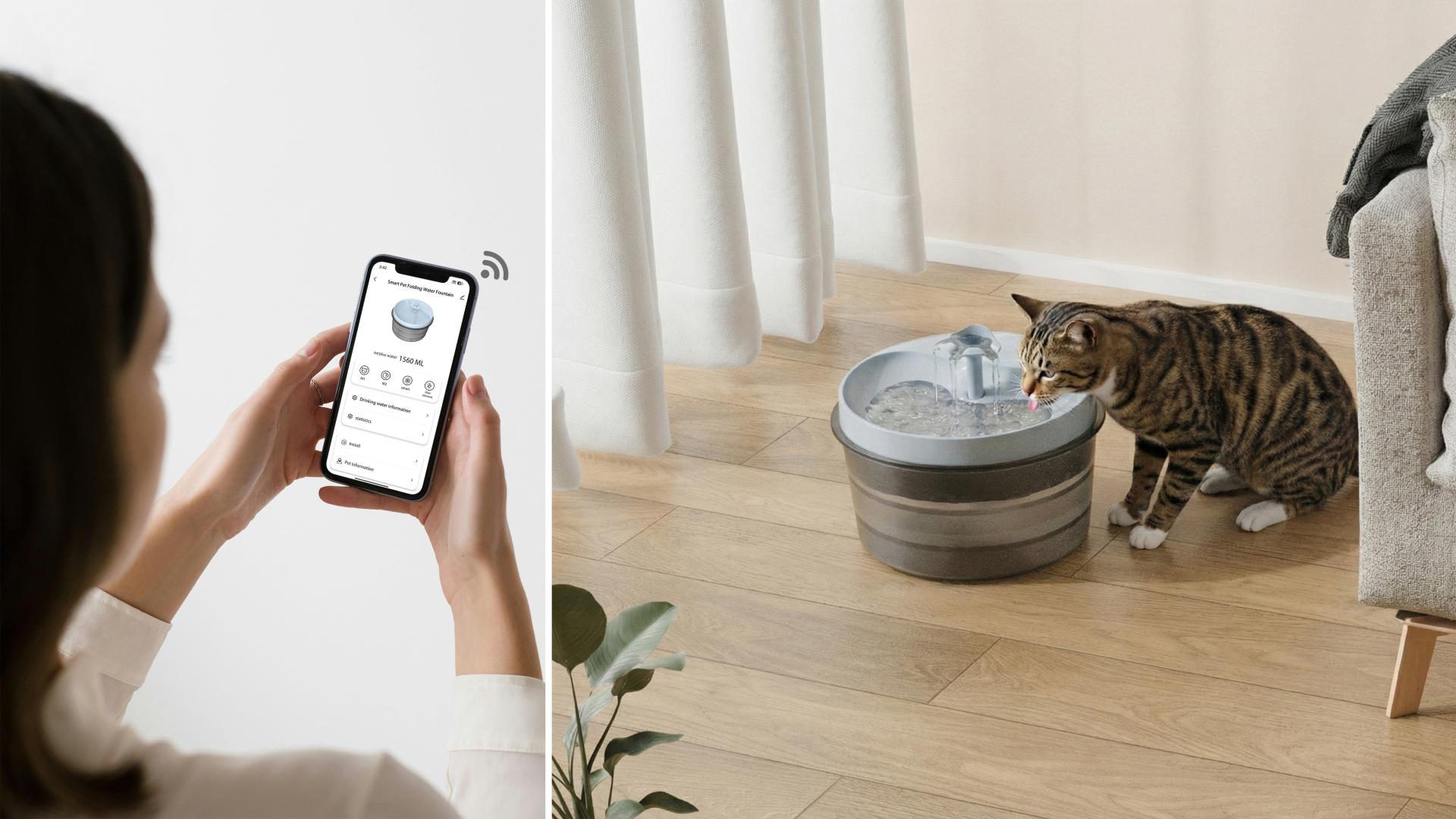 Every detail is engineered for the reality of shared living between humans and pets. The device features a seamless cylindrical unibody that operates at a whisper-quiet level (<30dB). Water quality is guaranteed to human drinking standards via UV sterilization and triple-layer filtration, while a soft ambient light intuitively indicates water levels. It is also compatible with power banks, ensuring operation during power outages. Versatility is key: the collapsible tank reduces the unit’s volume by two-thirds, making it perfect for travel, cleaning, and daily use. The ergonomics mimic nature, featuring a 3° tilted surface and an optimal 12cm height to replicate a mountain stream; this reduces spinal pressure and stimulates the urge to drink. Technologically, it employs a microwave radar for 360° blind-spot-free sensing. Coupled with three distinct modes (Single Cat, Multi-Cat, and Smart), it proactively adapts to different feline personalities. An AI health system tracks hydration data in real-time, automatically pushing alerts for abnormalities to help owners scientifically safeguard their pets' health. Unlike "pseudo-smart" products that prioritize feature bloat over experience, or "superficial minimalism" that sacrifices utility for appearance, this fountain achieves a unity of design, technology, and emotion. By dissolving the utilitarian feel through pure form, replacing limited infrared sensors with omnidirectional radar, and substituting mechanical responses with AI algorithms, it elevates the water fountain from a mere appliance to an essential lifestyle companion.