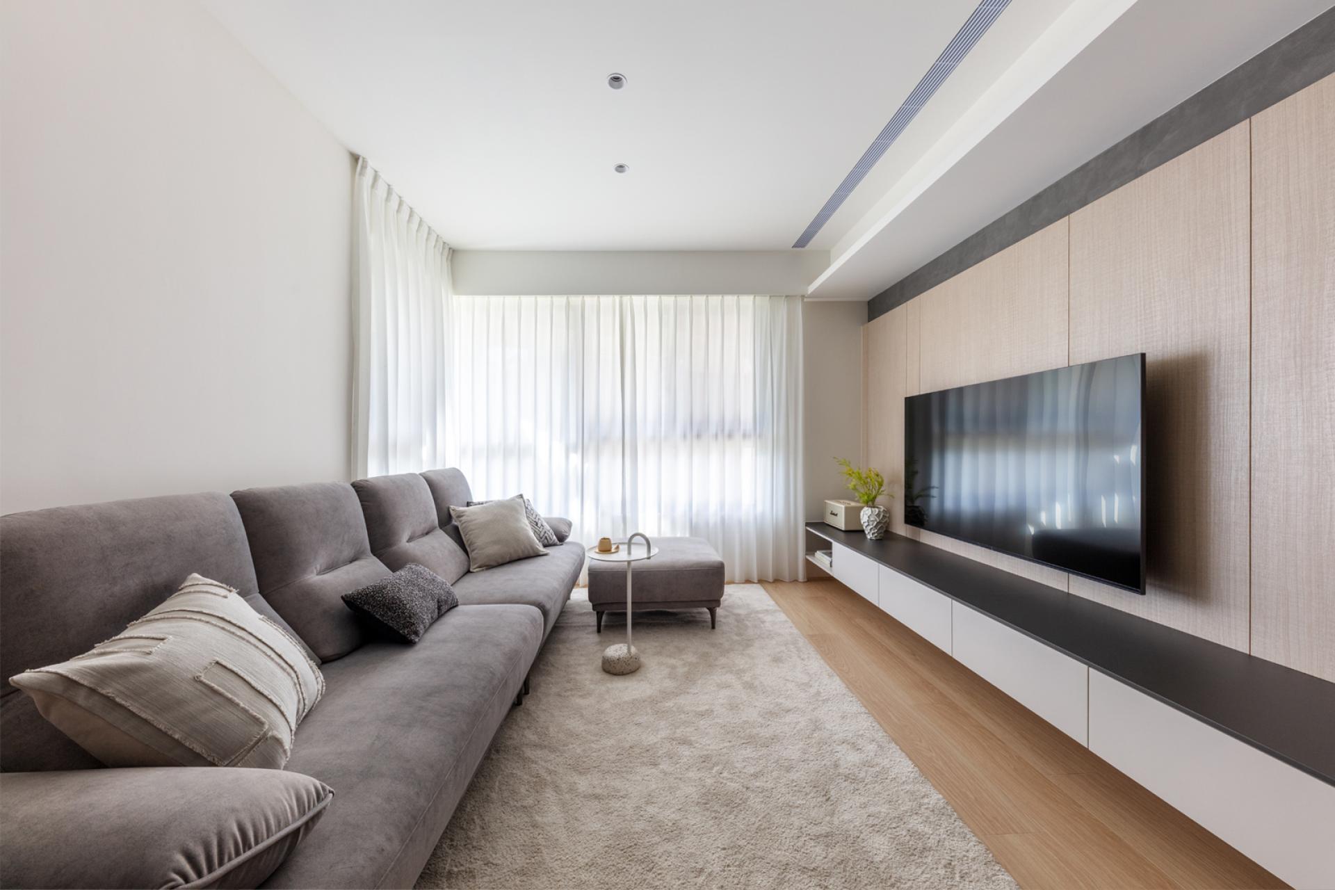 整體空間以純粹的色彩與材質,建構出具備高度機能性與視覺層次。不追求花哨的裝飾,而是透過比例、光影與材質的交疊,打造一個讓人感到平靜且放鬆的家。