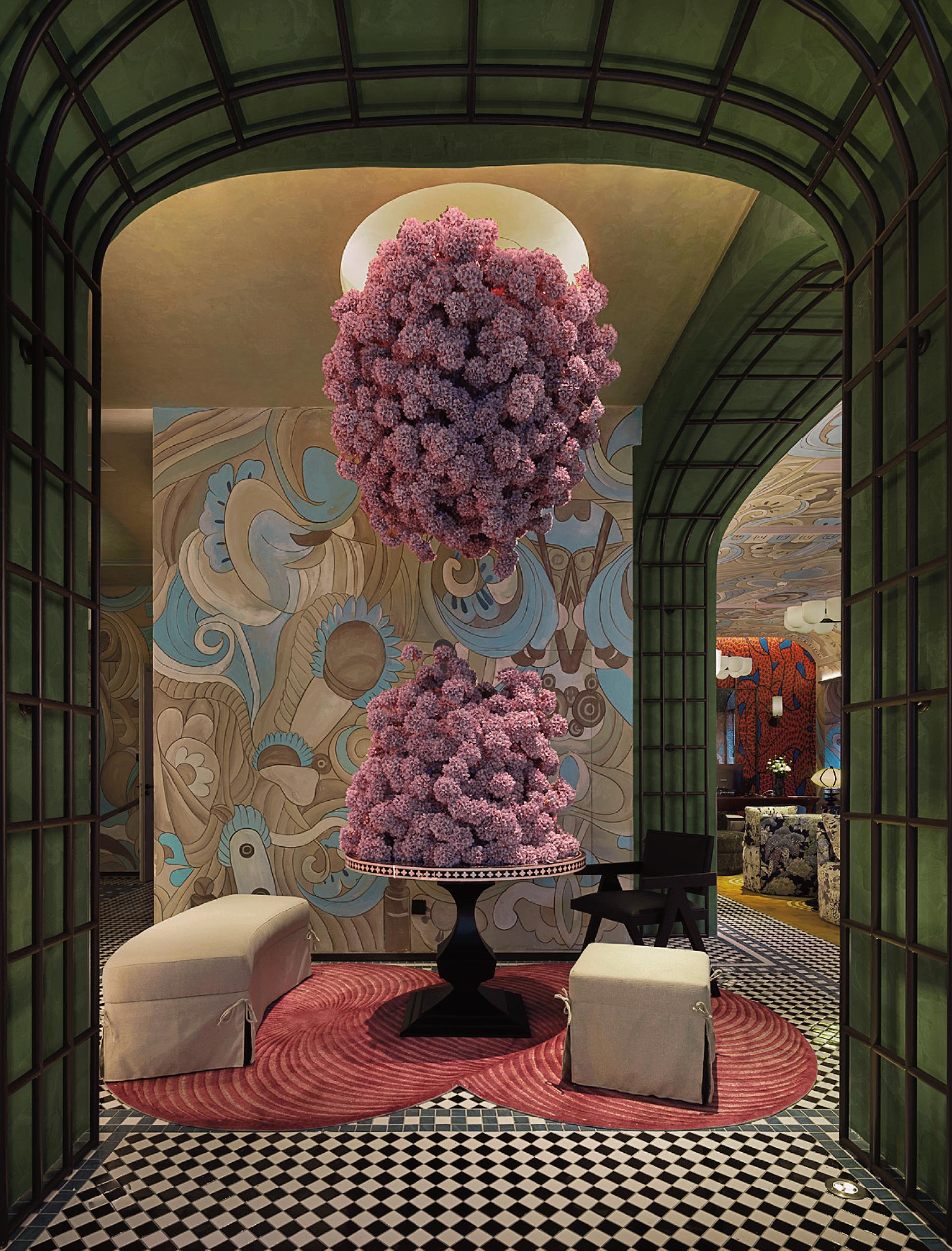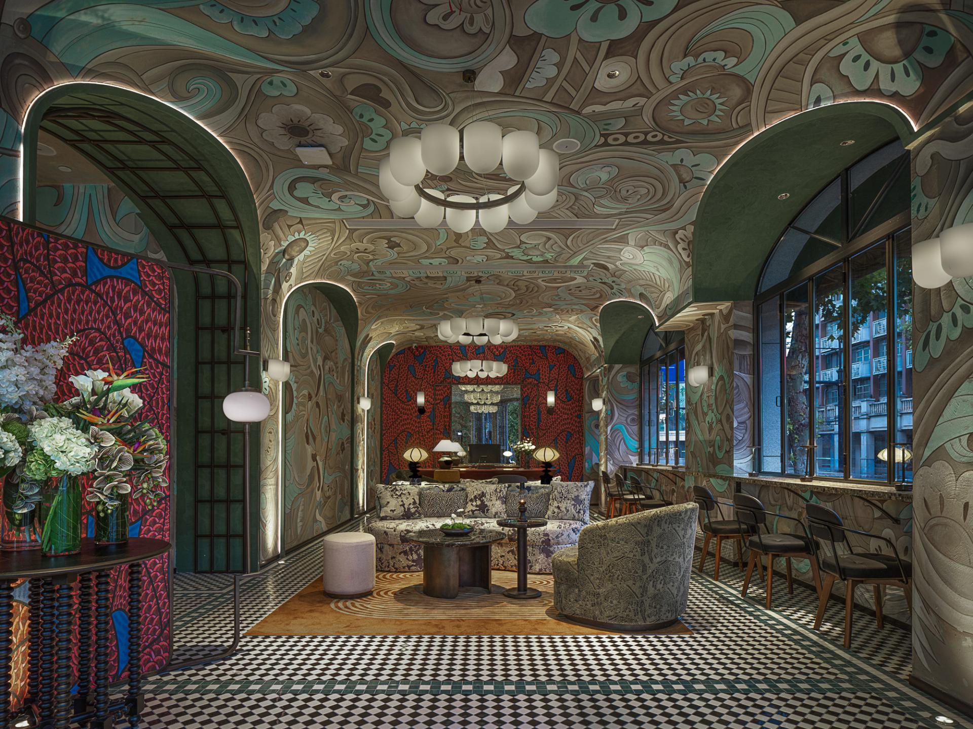 The overall hotel design fuses multicultural elements and contemporary aesthetics, skillfully combining color, materials, and spatial storytelling to create a travel experience rich in both retro sentiment and modern comfort. The design is based on the theme of "elegance," using soft neutral tones such as off-white, light gray, and pale wood to lay a serene and comfortable foundation. This is complemented by minimalist furniture and flowing lines, with low-saturation greens and ochre incorporated into soft furnishings to enhance visual layering without breaking the overall gentleness.The hotel's public area circulation is not a simple pathway, but a carefully arranged "storyline." Starting at the entrance, the logic of the flow clearly guides guests to the front desk, where artistic installations or material changes suggest spatial transitions, avoiding long and boring straight corridors.