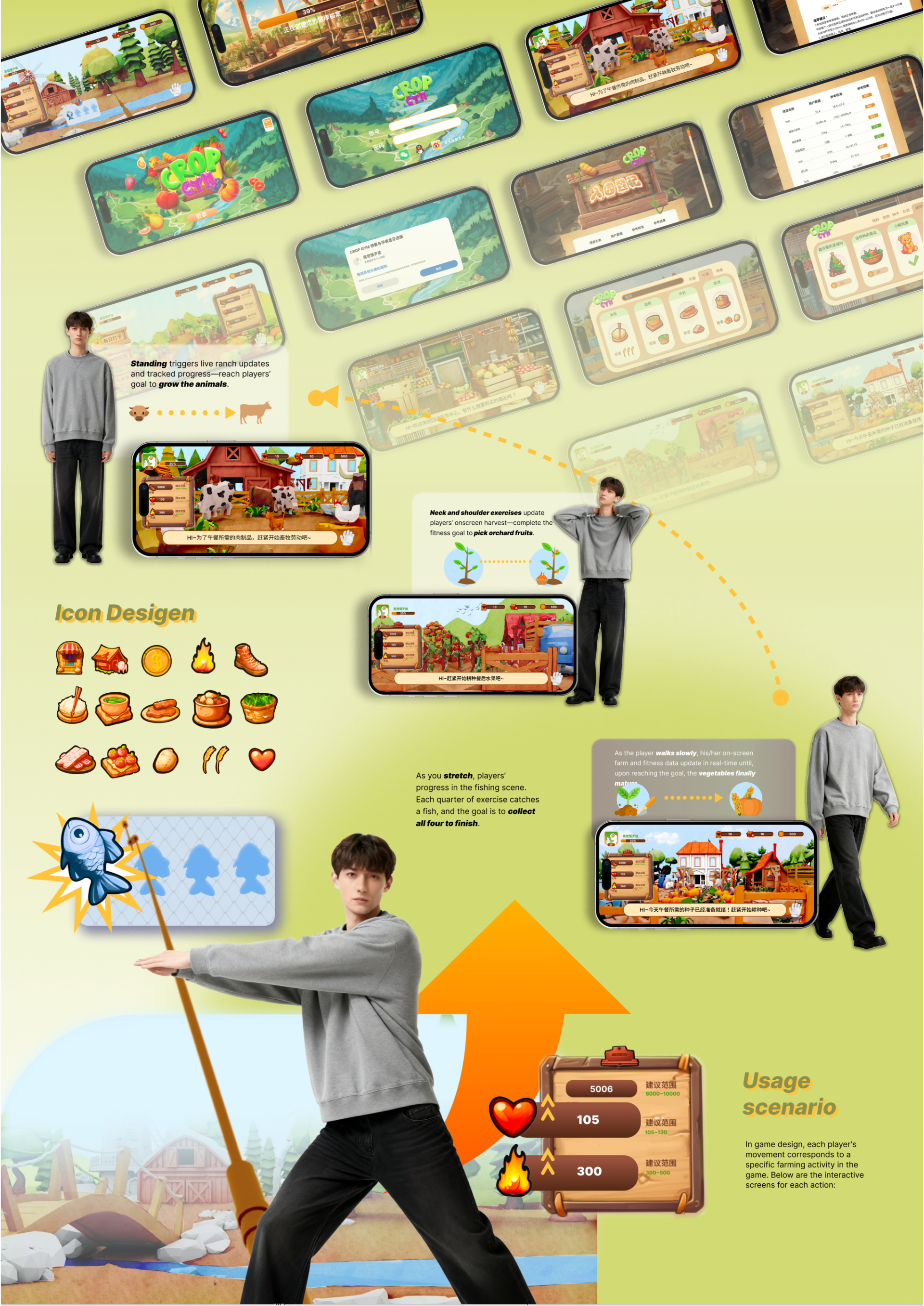 CROP GYM is a healing-style game designed to integrate daily exercise into the routines of subhealth white-collar professionals.