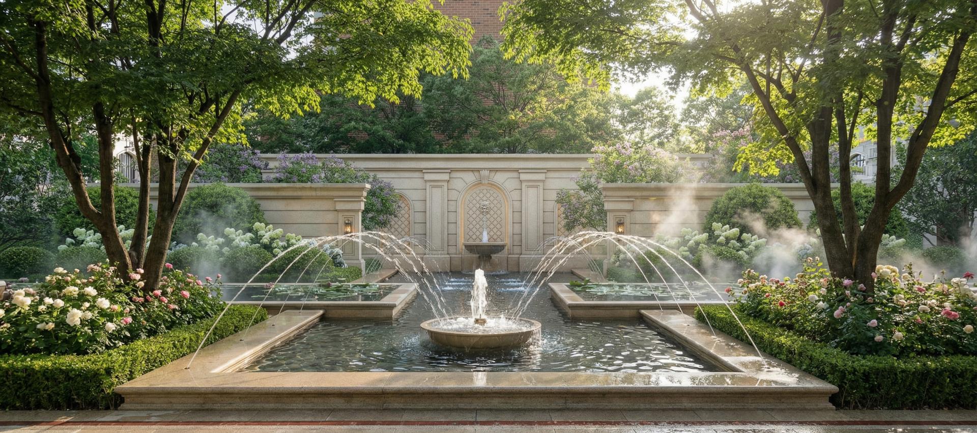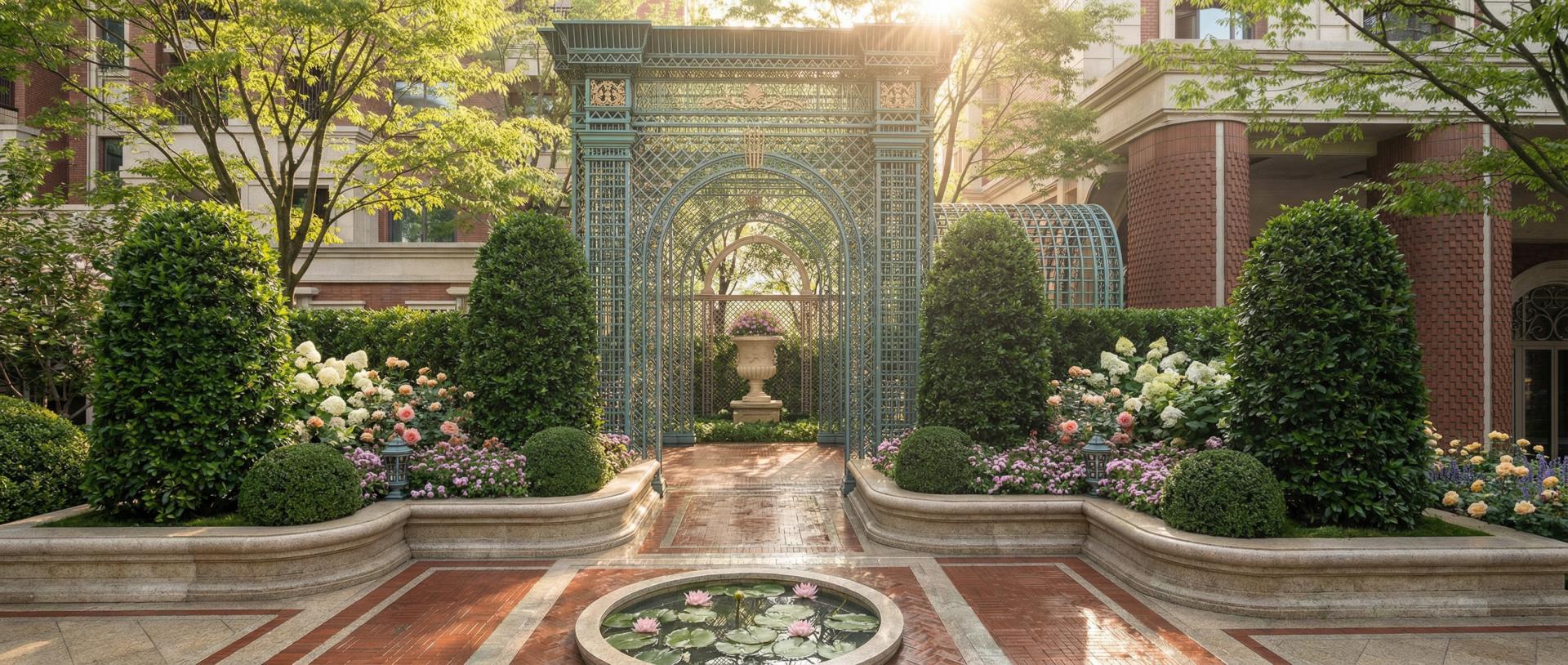 The landscape design is themed 'Watery Paths and Forest Trails, Man-sion Gardens,' fully considering the daily living needs of local residents. It organically integrates garden landscapes with architectural land-scapes, drawing on the layouts and elements of multiple classic Euro-pean gardens, and incorporates diverse activity scenes to create a high-end ideal residence that embodies nobility, elegance, tranquility, and ecology.