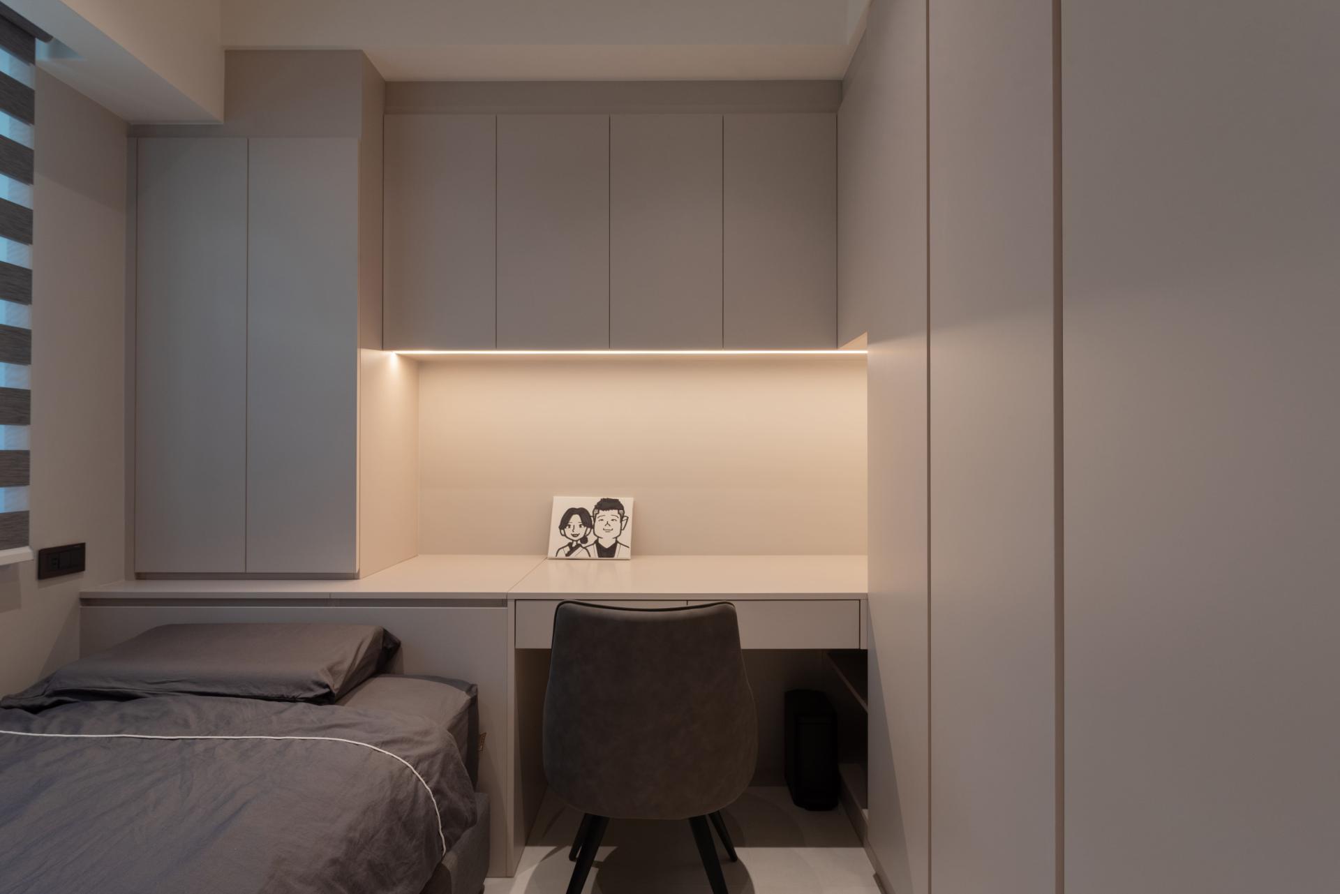 Monochromatic Aesthetic: The entire space adopts a low-saturation "Warm Beige" palette. By extending a unified color scheme, the boundaries between walls and ceilings are blurred, creating a visual expansion of the space. The combination of warm wood veneers and textured paints cultivates a tranquil atmosphere reminiscent of a luxury hotel.
