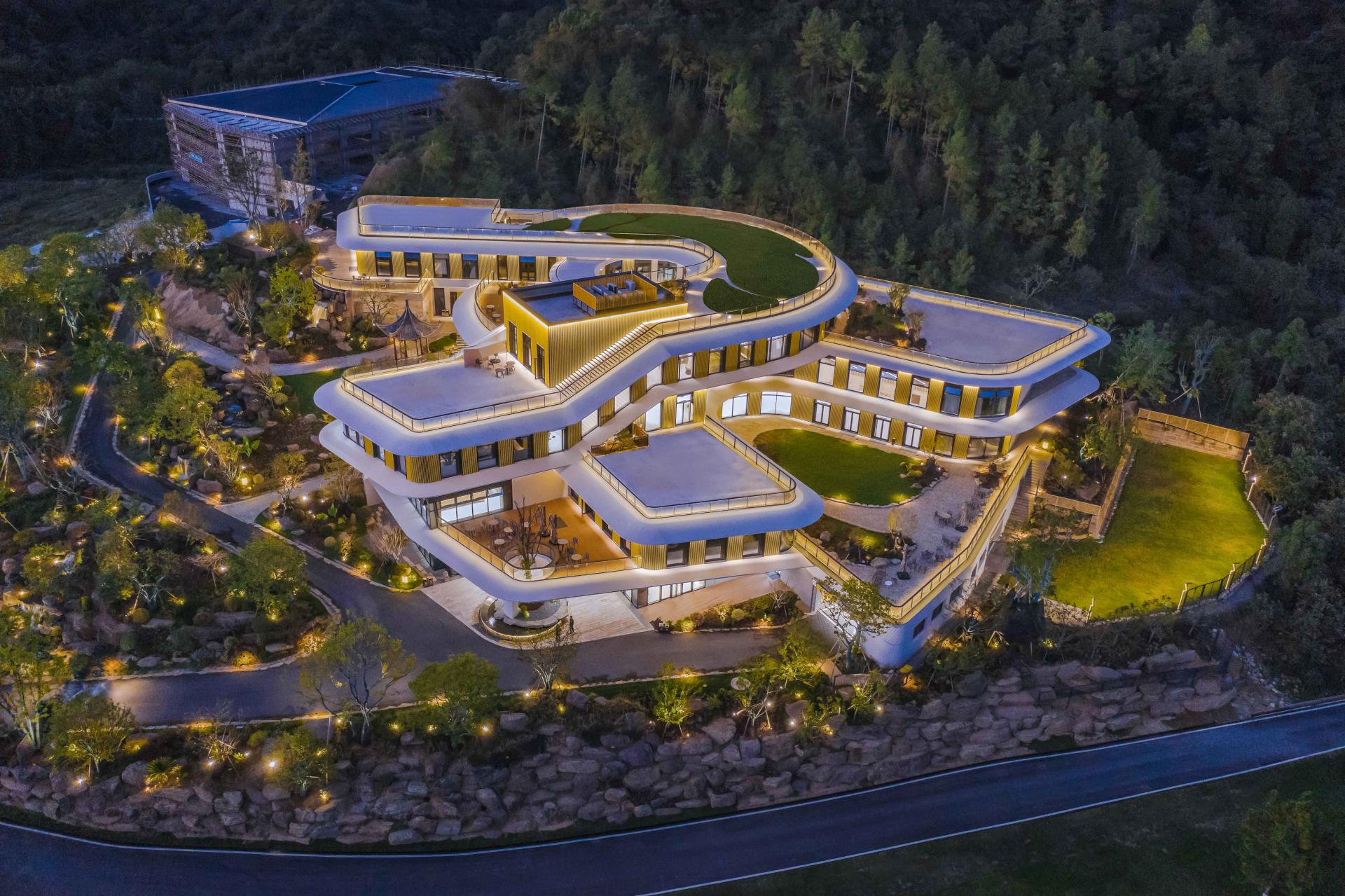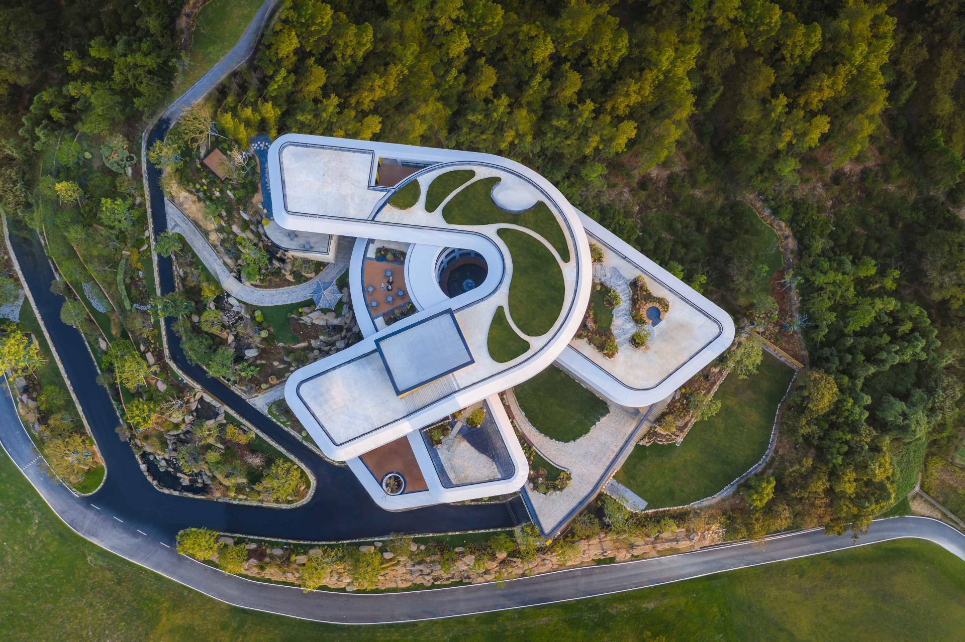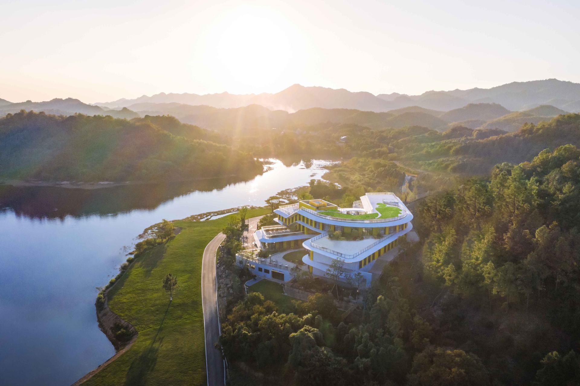 Respecting the site’s distinct topography, the project adopts an ecology-first strategy of building along the grain. The structure steps up the hillside to minimize earthworks and ecological disturbance. By integrating multi-level terraced roof gardens, the architecture merges seamlessly with the surrounding landscape, reconstructing green corridors and achieving a symbiotic relationship between the built environment and nature.