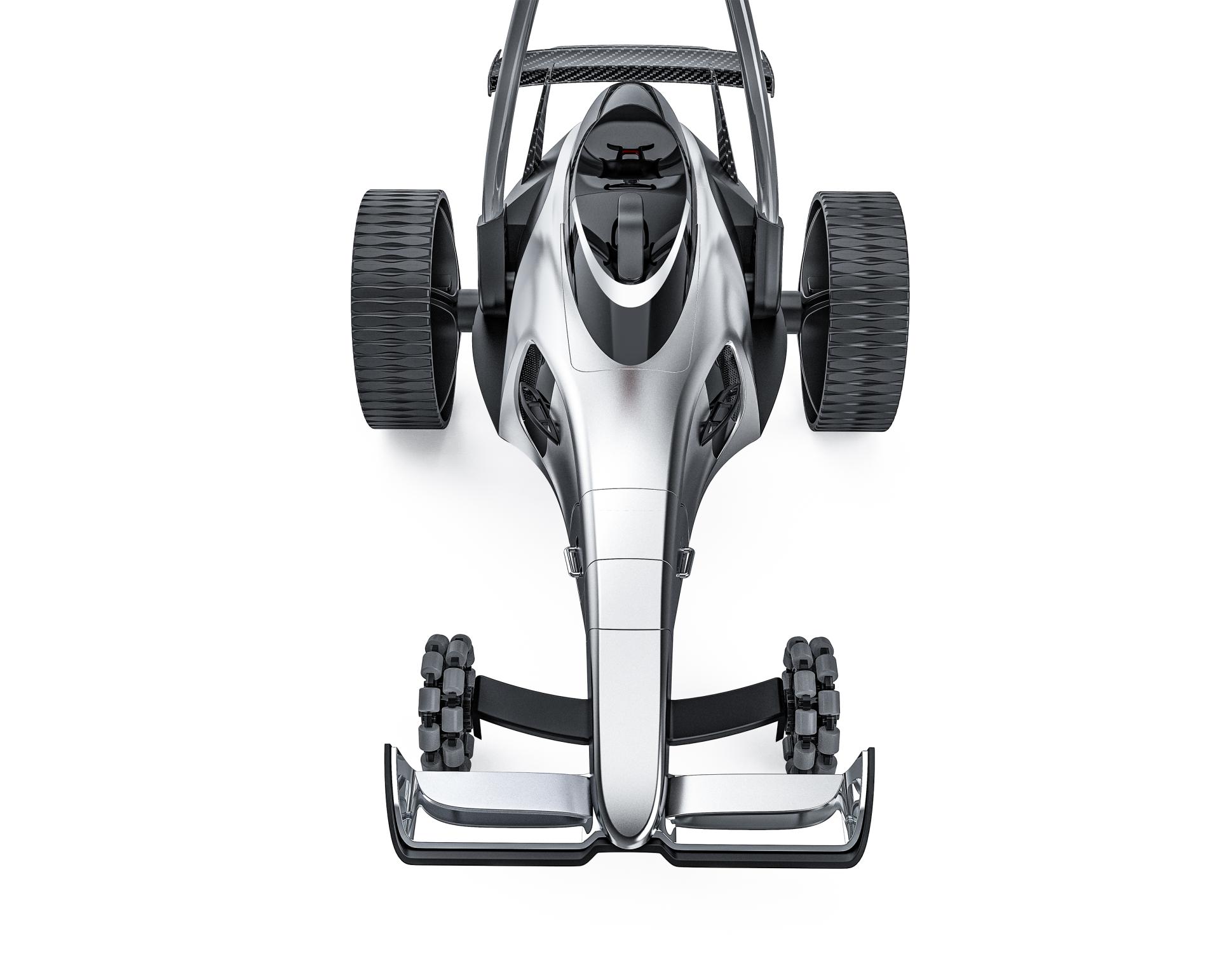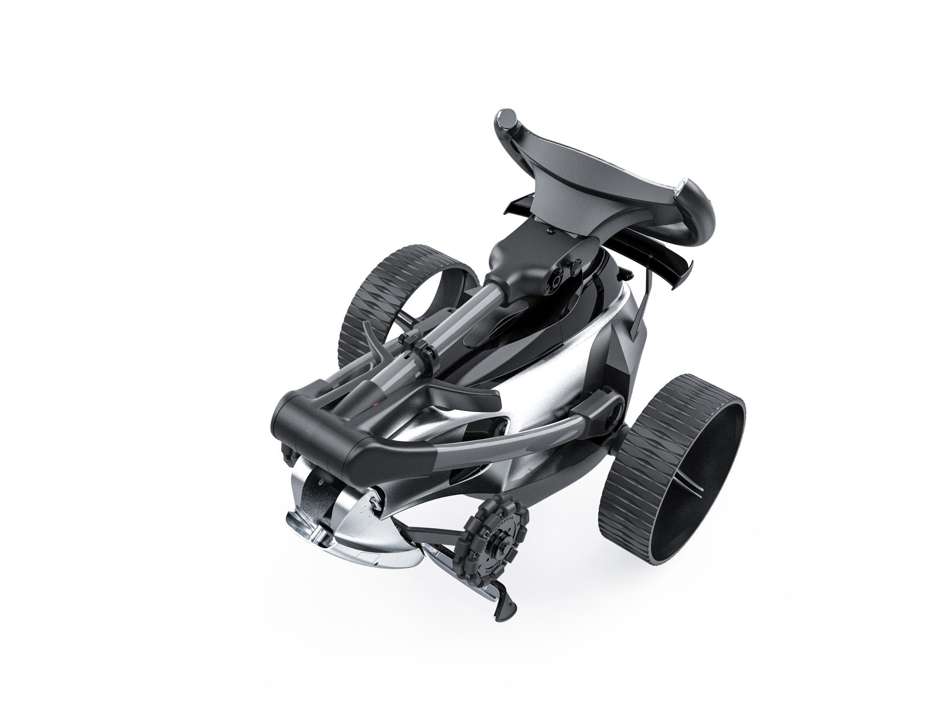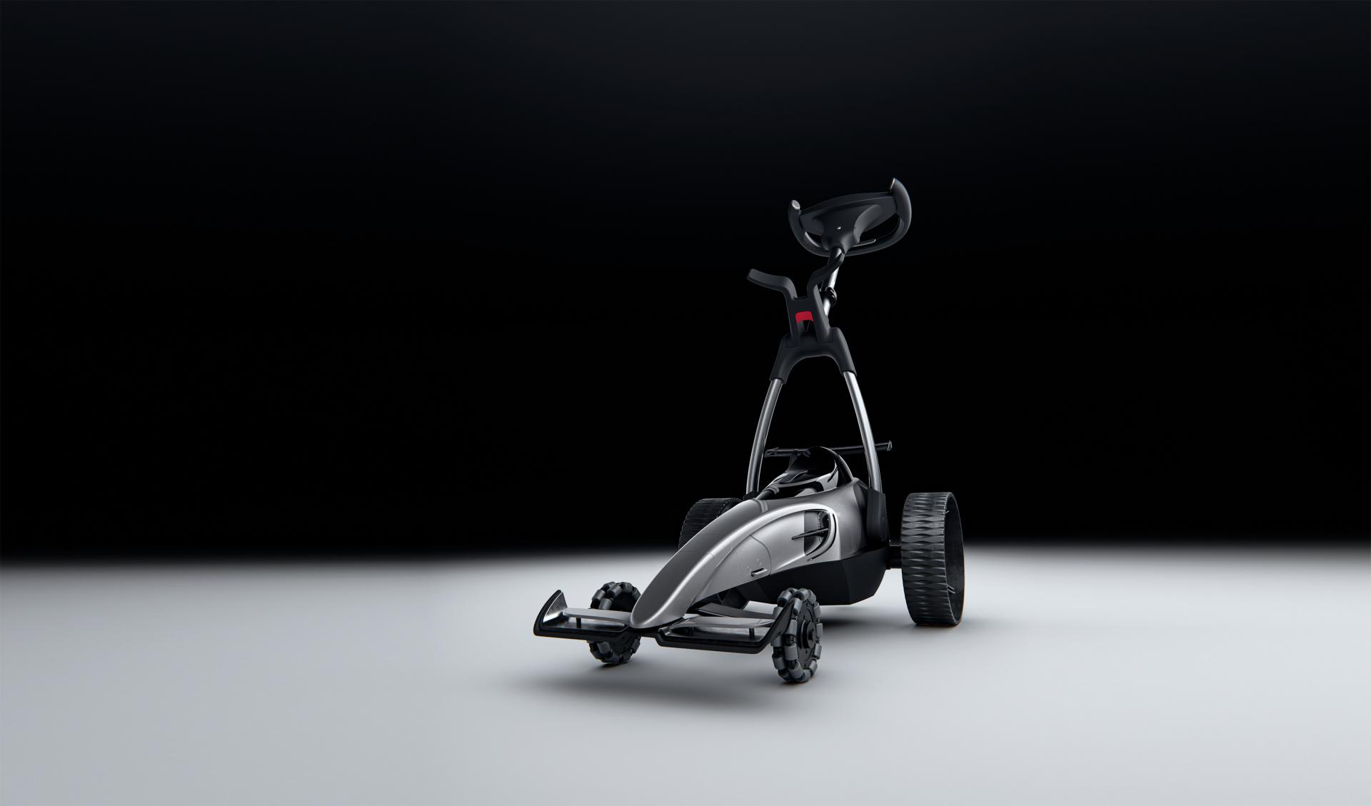 Eagle F1 is a smart golf cart inspired by Formula 1 cars. It boasts a forward-leaning, streamlined body that exudes a dynamic, ready-to-move stance, with a steering-wheel-inspired handle for intuitive operation. Its matte silver finish, accented with glossy details, creates a striking visual contrast that makes the cart full of speed and technology even at rest.