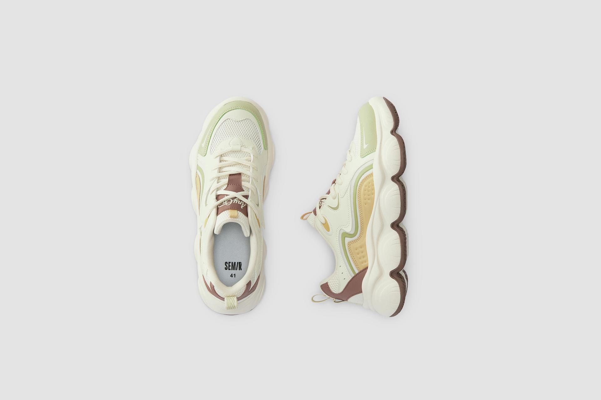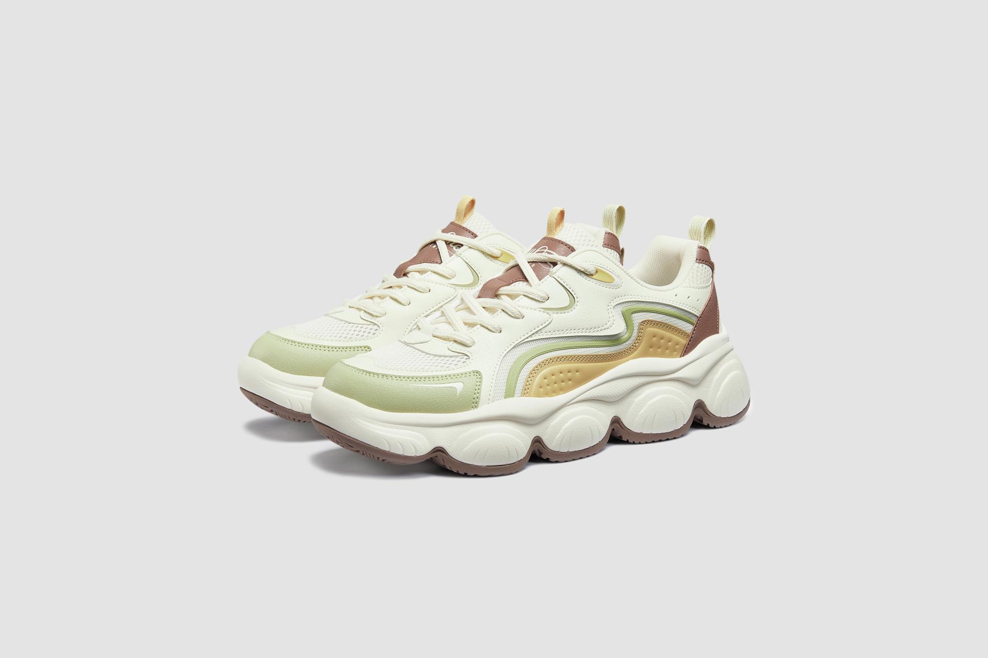 The upper incorporates the natural, flowing curves of melting butter, enhanced by a high-frequency embossed structure that captures the dynamics of flowing butter and adds visual depth. The chunky, cushioned sole is crafted to resemble a plump rice cake, offering a soft visual appeal while delivering a meaningful promise: in Chinese, "rice cake" sounds like "high", conveying the wish to "walk steadily and rise step by step". Designed in a casual yet stylish clunky sneaker silhouette, the shoes adapt to various life scenarios from daily commutes and weekend leisure to urban strolls, allowing for relaxed and effortless steps. Additionally, the vamp is made of breathable mesh fabric, ensuring lasting comfort and dryness even in hot summers.