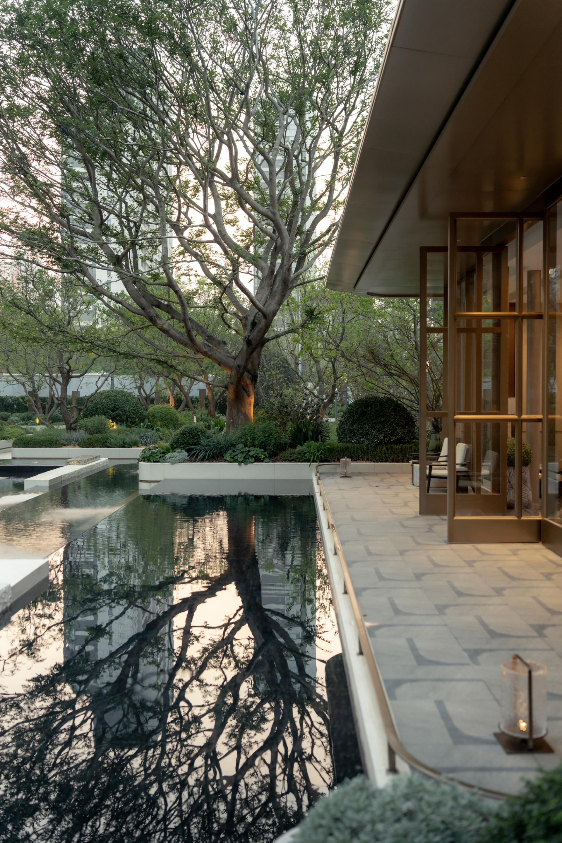 Rooted in Zhengzhou’s profound cultural heritage and underpinned by the essence of classical academies and traditional manorial residences, the project is presented through contemporary design approaches. It incorporates signature design elements including the General’s Cypress Book Cliff, Dragon-scale Scrolls, miniaturized topography, a 3,000 ㎡ green carpet, and the progressive spatial layout of traditional academies. Complemented by landmark spaces such as multi-garden atriums in the style of manors and mansions, as well as the Four Waters Converging to the Hall motif, the project crafts an ambiance of "Above the City Center, A Secluded Retreat".