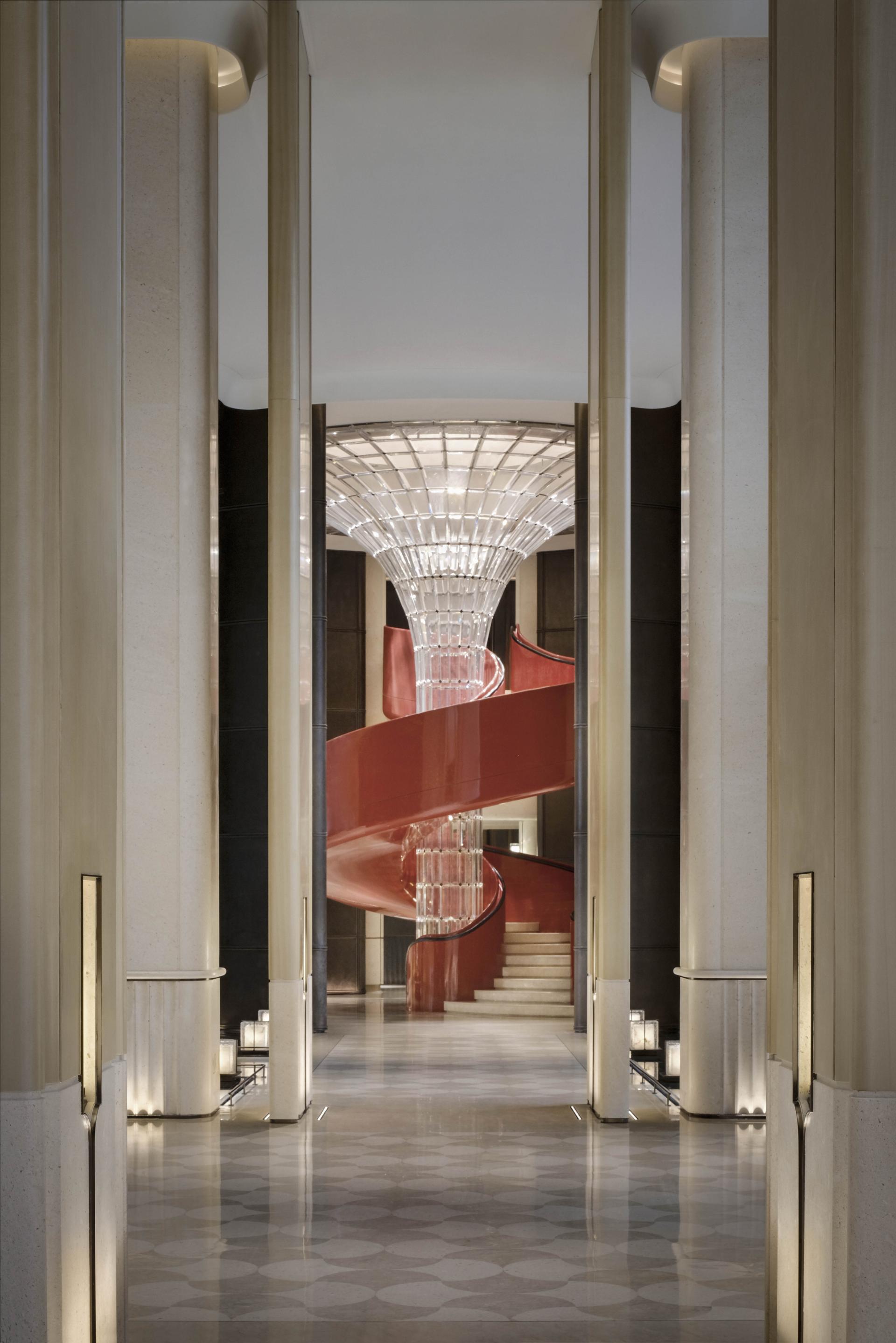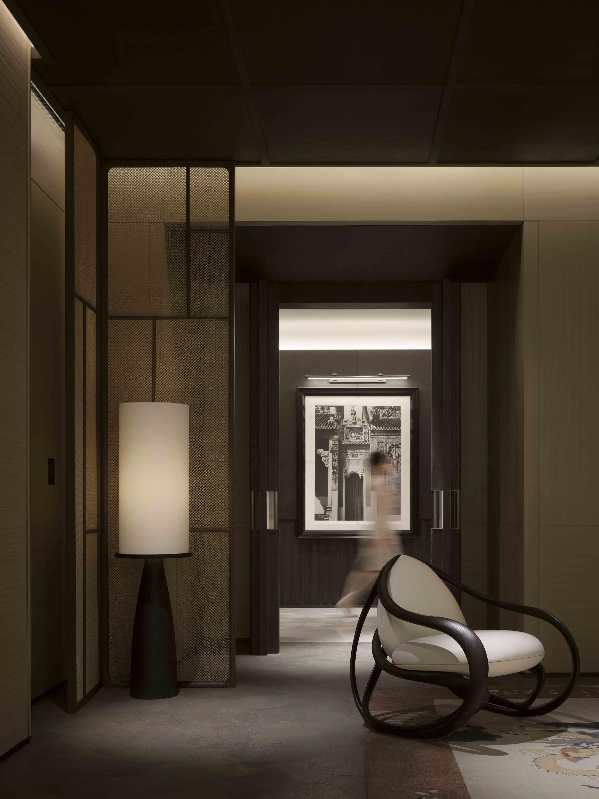 Inside, the lobby interprets the philosophy of balance—strength and softness, movement and stillness—through soaring volumes, fluid curves, and cross-axis structures reminiscent of traditional martial arts wisdom. Materials, patterns, and lighting reference Lingnan architectural archetypes, while contemporary artworks echo the dynamism of Cantonese opera and the enduring vitality of the Pearl River.