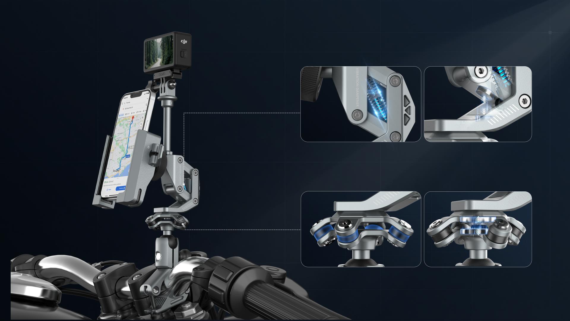 Functionality is engineered for extreme versatility. From the agile "grab-and-go" use for urban commuting to sustained stability for long-distance touring and extreme impact resistance for off-road adventures—across gravel, steep slopes, and puddles—it adapts seamlessly. The modular expansion features a standard 1/4-inch interface, supporting extension rods and action cameras for coaxial mounting with shared damping. Furthermore, adaptive ergonomics, including a 360-degree universal ball head and dual-joint arm, ensure an unobstructed viewing angle while avoiding dashboard interference. For security, a patented "idle-spin" anti-theft knob prevents unauthorized removal during outdoor parking.
