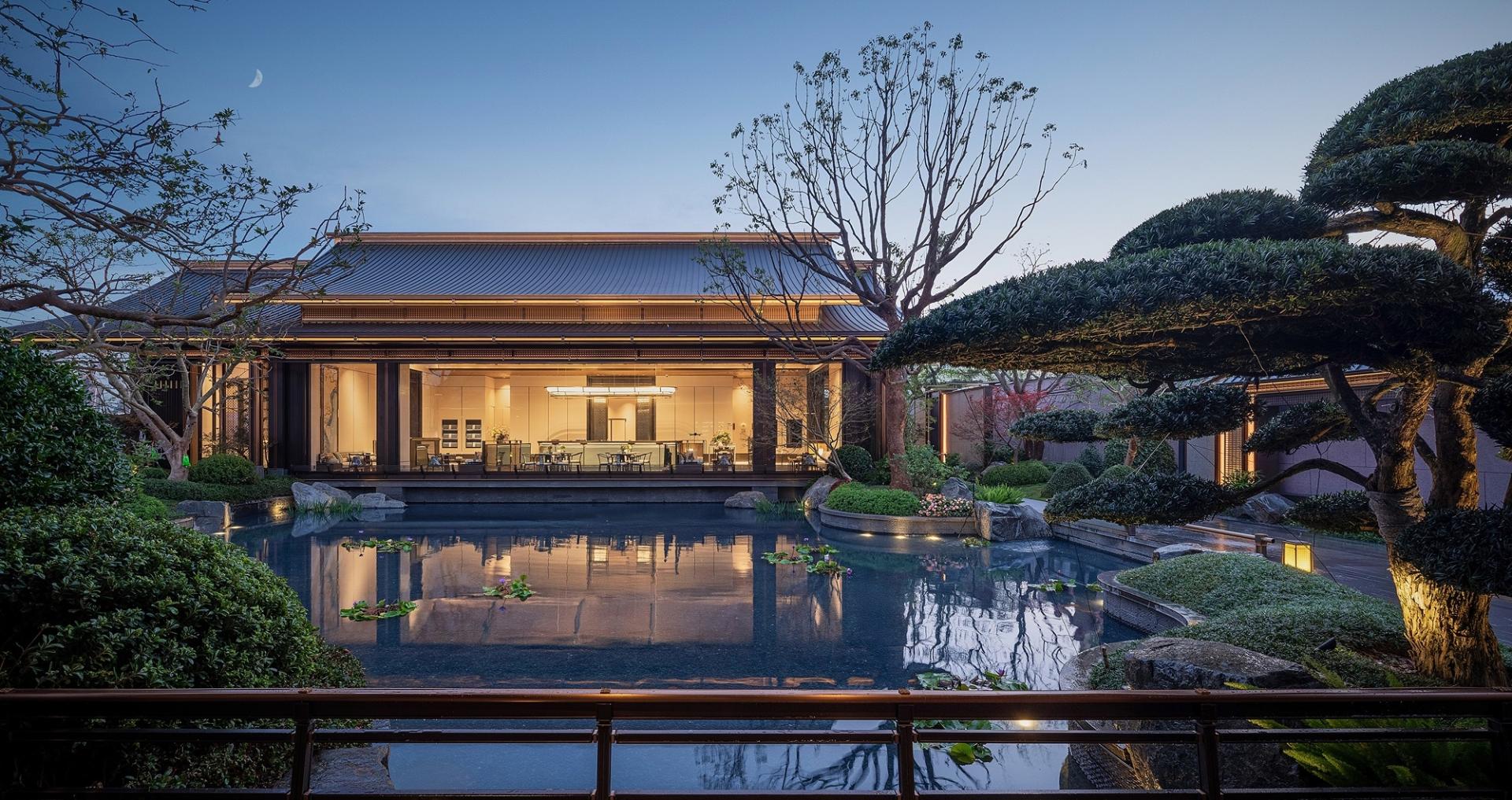 Ancient charm meets modern innovation. A sunken courtyard enriches spatial layers, while a swimming pool nestles among woods and streams. With the pool, cascading waterfalls, and red foliage, an unbounded Jiangnan painting comes to life—a place to dwell and wander.