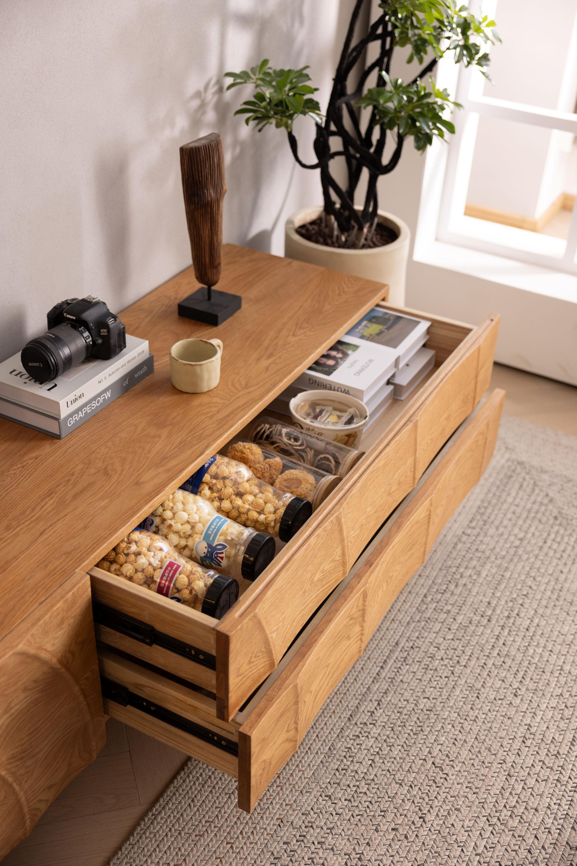 At the core of the Ripple TV Cabinet is a commitment to premium natural materials. The cabinet is crafted entirely from imported solid wood, ensuring authenticity and long-term durability. The primary material is North American white oak, a high-grade hardwood recognized for its strength, stability, and beautiful grain.