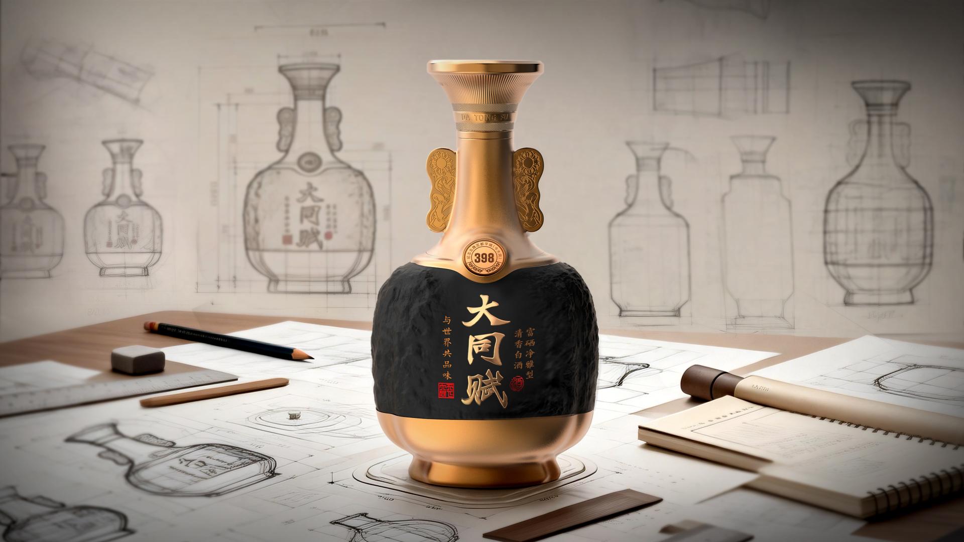 品牌资产的积累离不开视觉符号的强力支撑。我们深知,正在塑造的不仅仅是一个酒标,更是大同古都文化的视觉象征。因此,“大同赋”在器型与平面设计上进行了深度的文化挖掘与符号转译。在产品造型上,我们汲取了中国5000年历史文化中的古典“双耳瓶”元素。在古代,这种器型往往是非富即贵阶层用于招待贵宾或珍藏的礼器。我们将这个极具尊贵感和仪式感的器型引入白酒包装,辅以瓶口和双耳毫米级的反复打样调整,使其成为大同古都文化代表性的品牌价值符号。为了构建品牌的绝对差异化,我们从大同云冈石窟中提炼出“北魏飞天”(兔年飞天)作为品牌的核心超级符号。当人们提到飞天时,往往首先想到唐代的敦煌飞天与茅台的结合。而大同云岡石窟的飛天屬於北魏時期,歷史斷代比唐朝更早,且蘊含著本土獨特的「祈福納祥」寓意。我们将将这个符号运用到酒盒包装、瓶盖顶部原创花纹甚至未来的陶坛雕刻与文创周边中,让其成为“大同赋”专属的文化资产。第二层符号系统:大同六大古建的现代插画表达