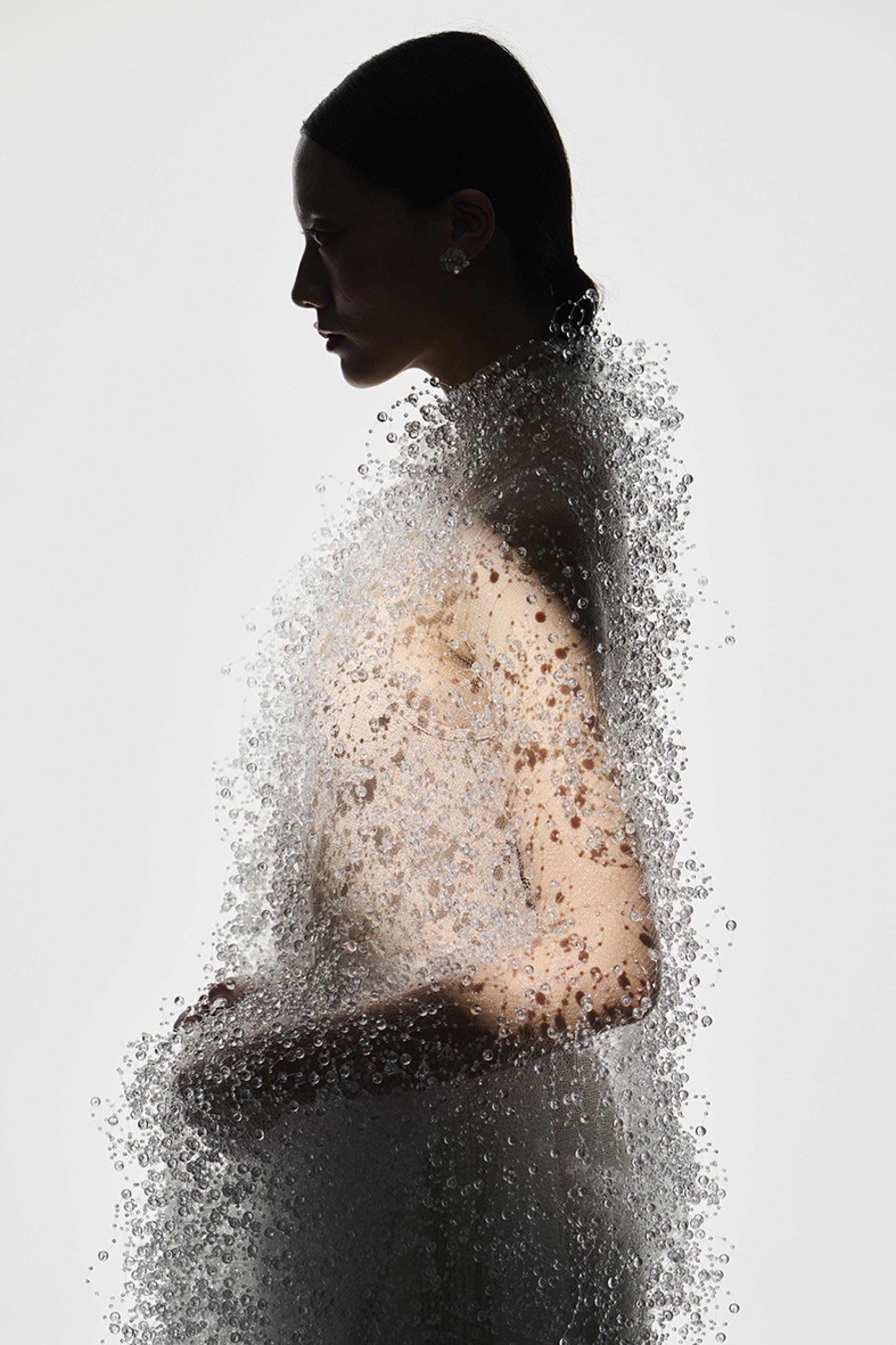 By transforming marine waste and recycled resources into wearable forms, the project highlights the environmental challenges faced by coastal communities. The layered transparency of the materials evokes rainfall and ocean currents, creating garments that visually express the relationship between water, city, and sustainability.
