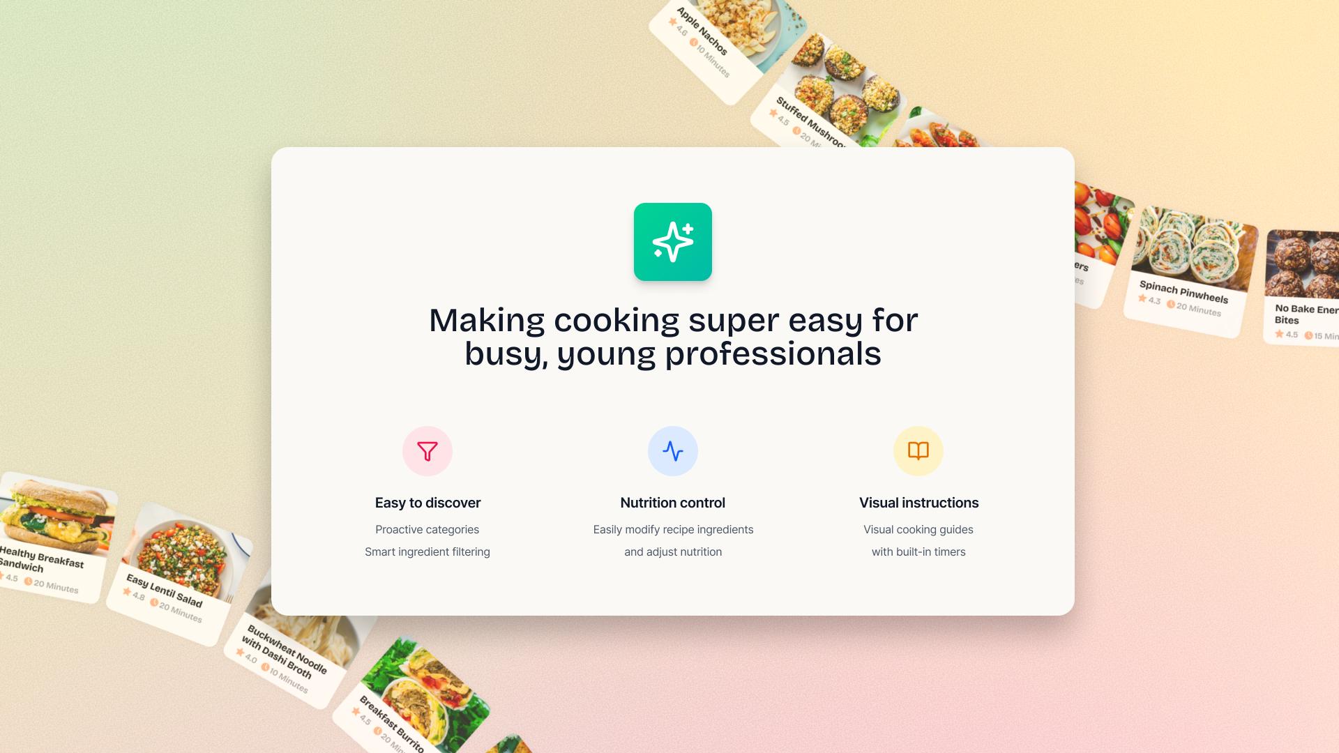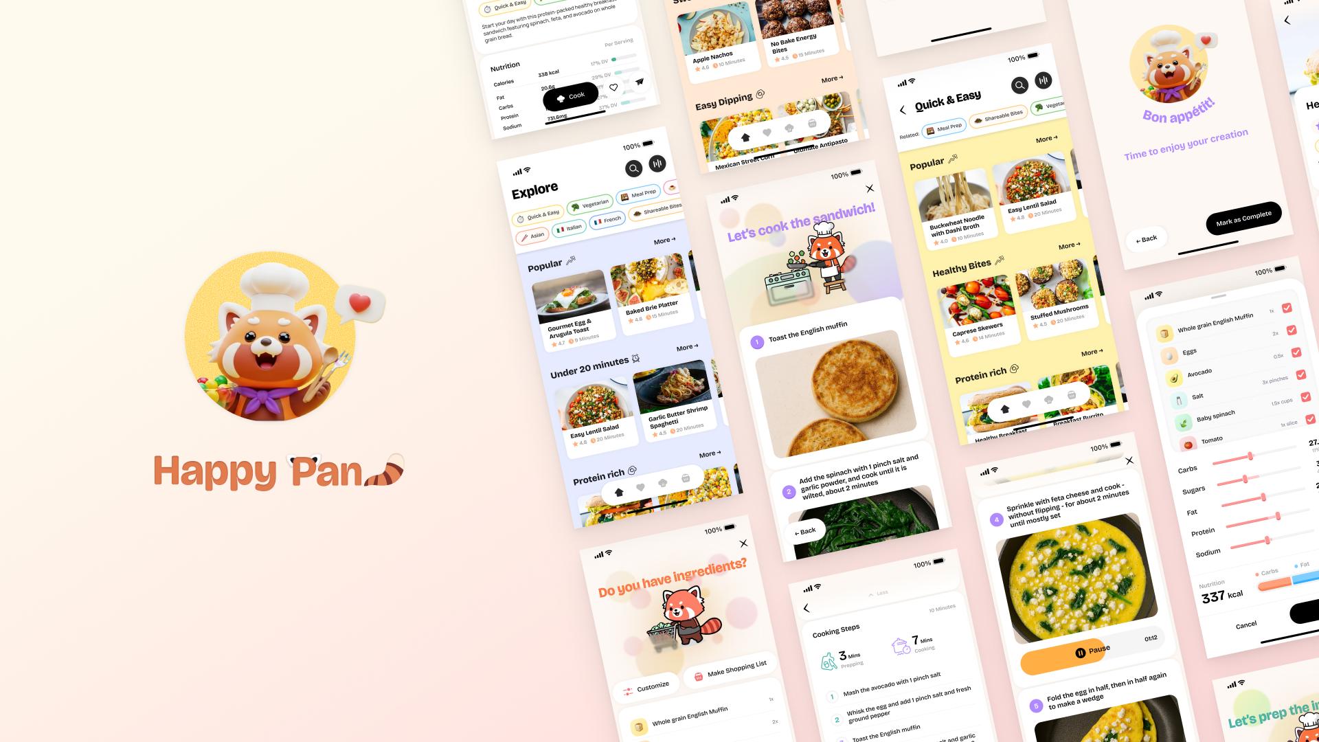 HappyPan is a mobile application designed to make healthy home cooking accessible to busy young professionals who want nutritious meals but often lack the time, experience, or confidence to cook. Traditional recipe platforms rely heavily on long paragraphs of text instructions and rigid ingredient lists, which can be overwhelming for beginners and inefficient for users who prefer quick, visual guidance. HappyPan reimagines the cooking experience through a visual-first, customizable, and intelligent recipe interface tailored to modern browsing habits.